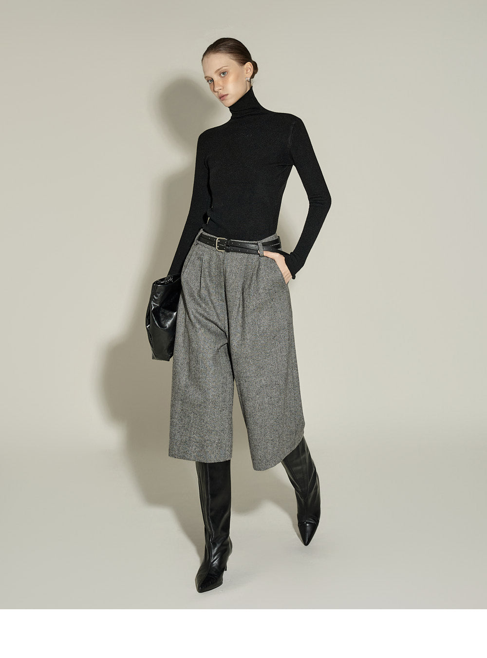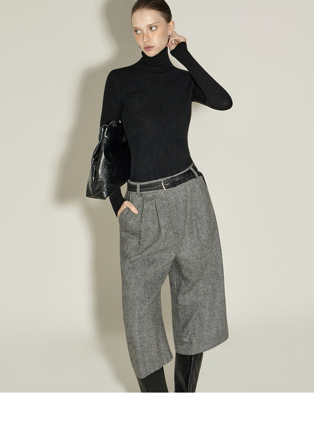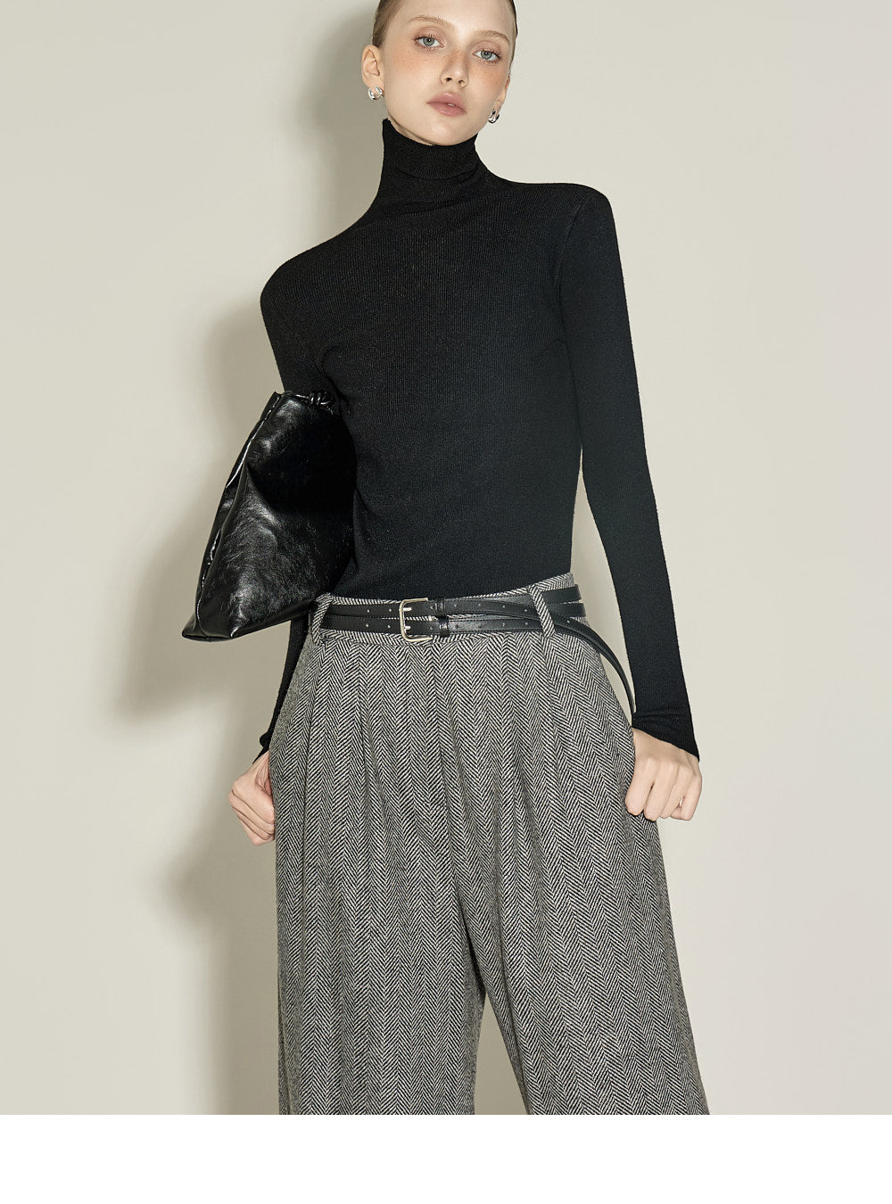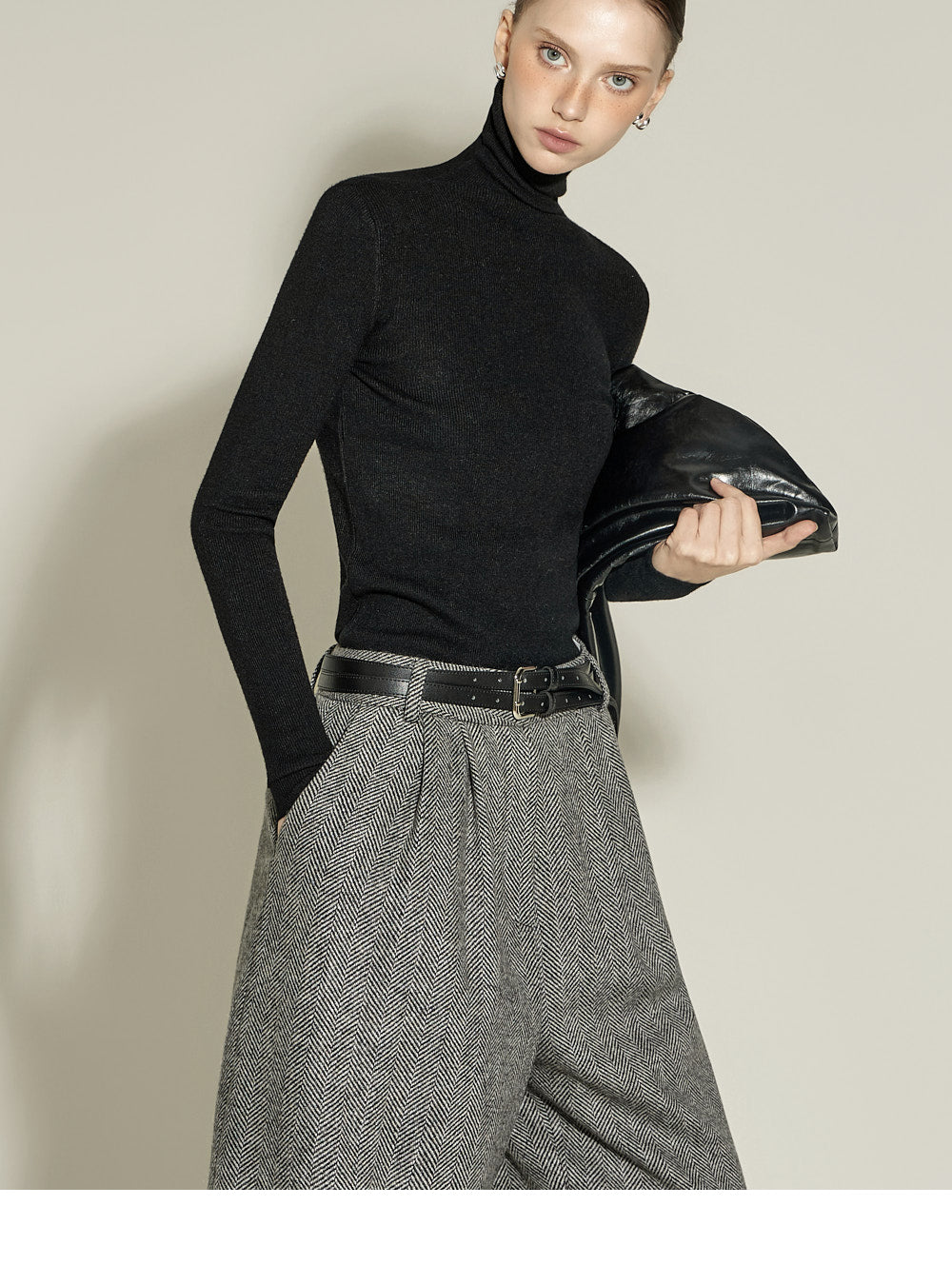 and the turtleneck design creates a neat yet cozy look.