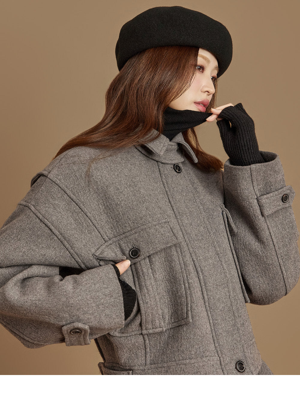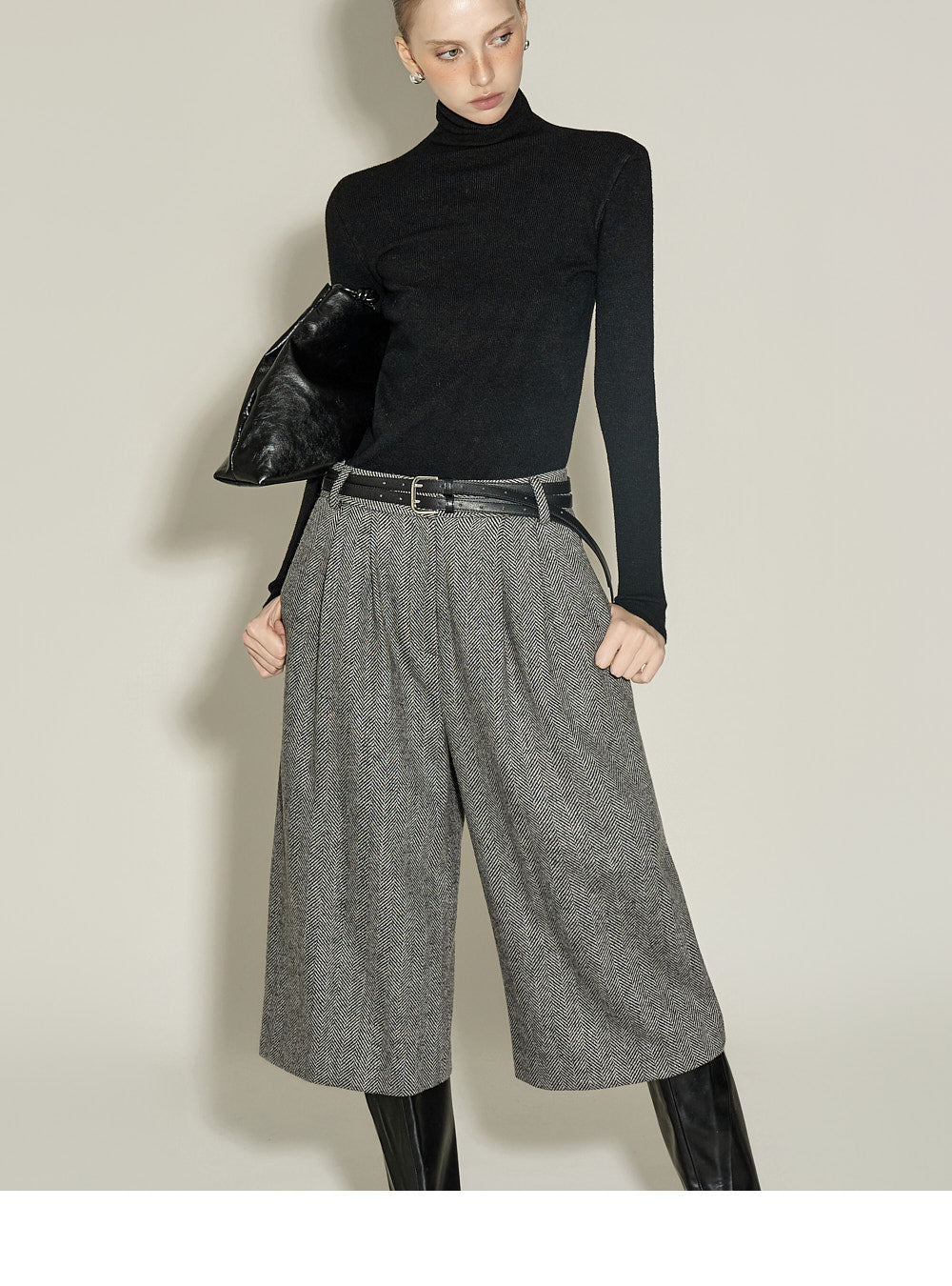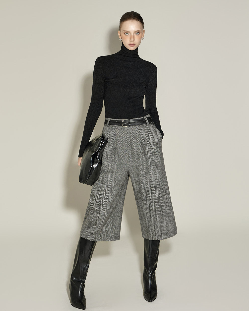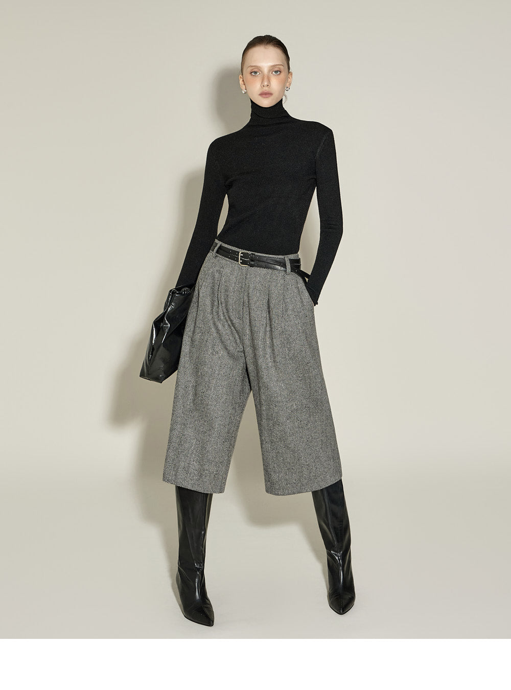 and the turtleneck design creates a neat yet cozy look.