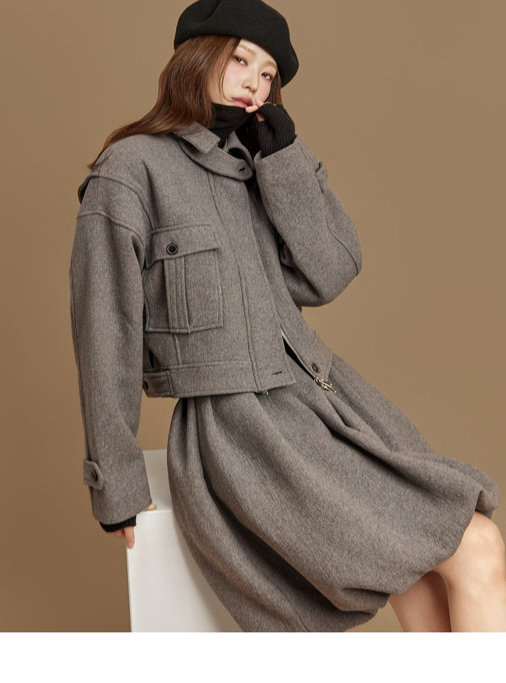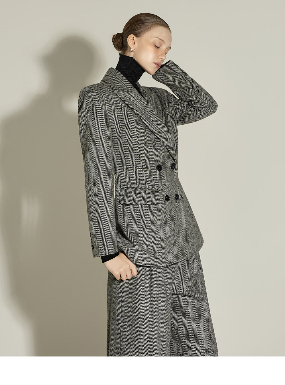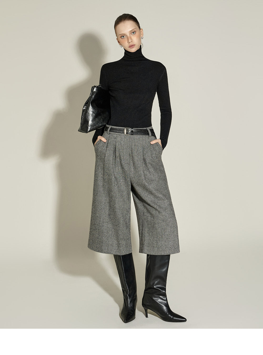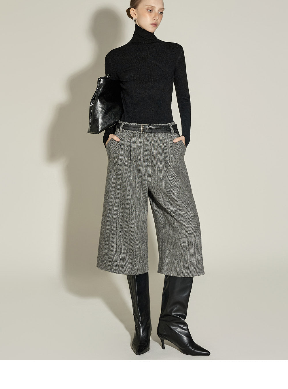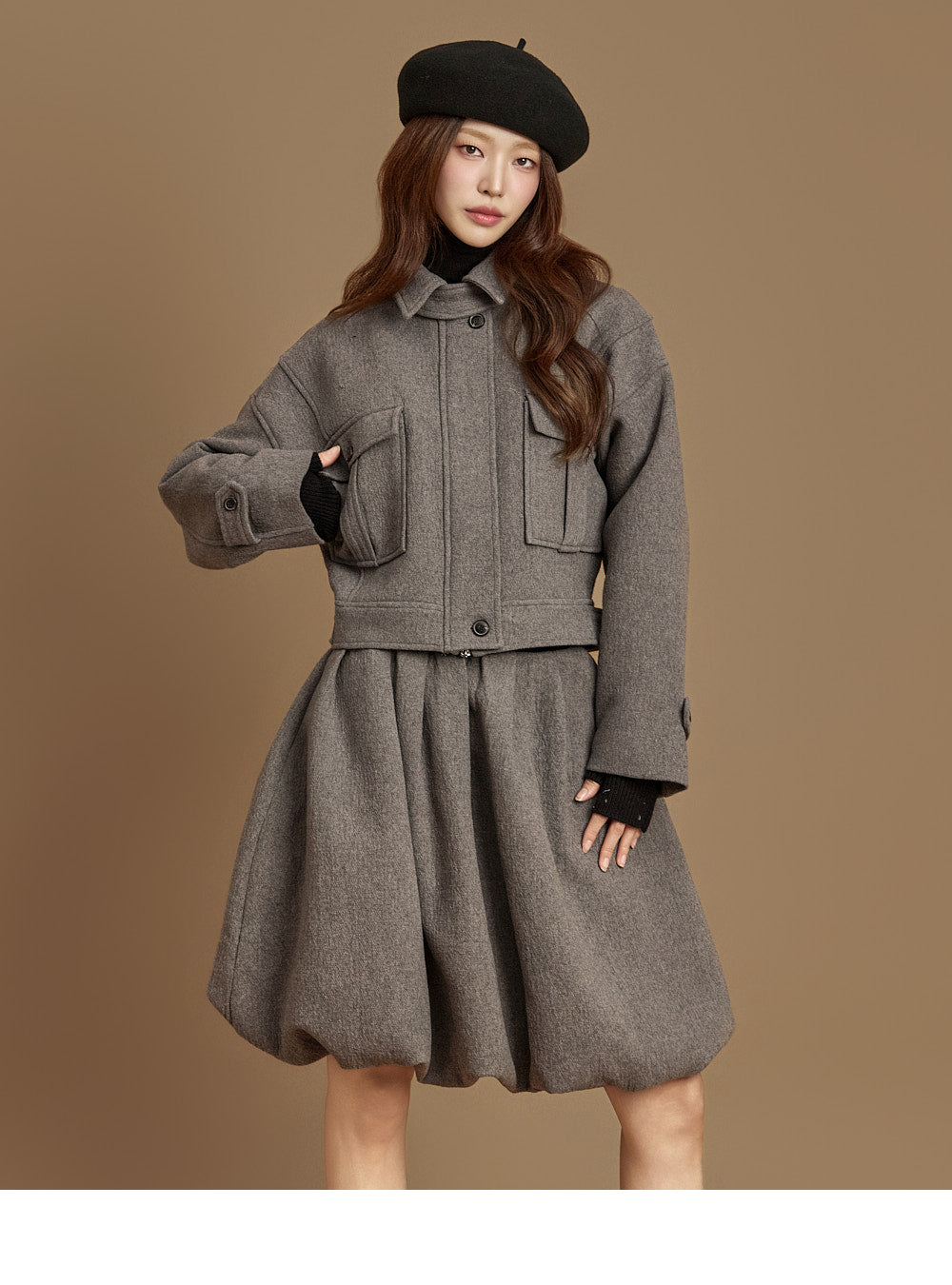 and the turtleneck design creates a neat yet cozy look.