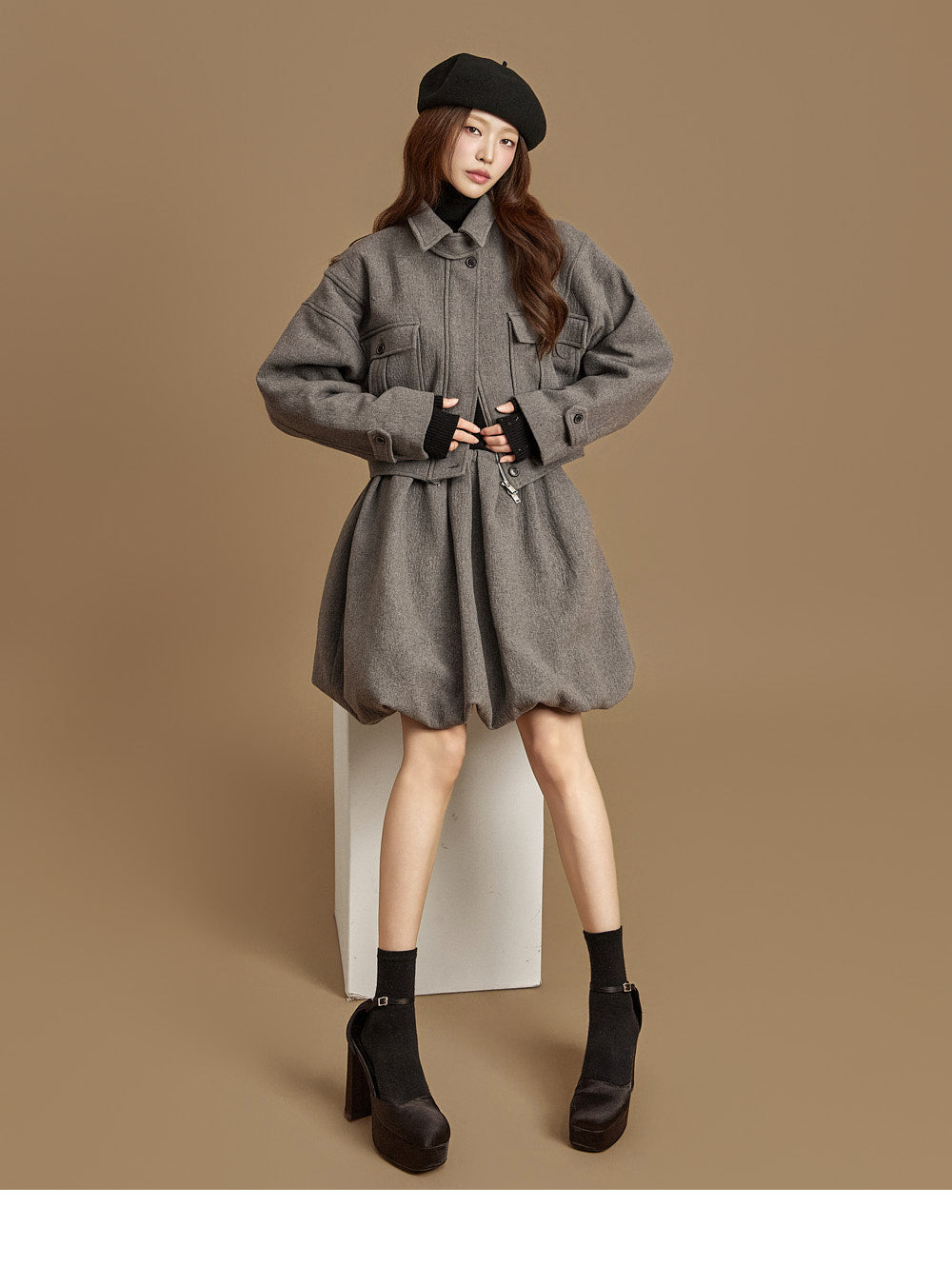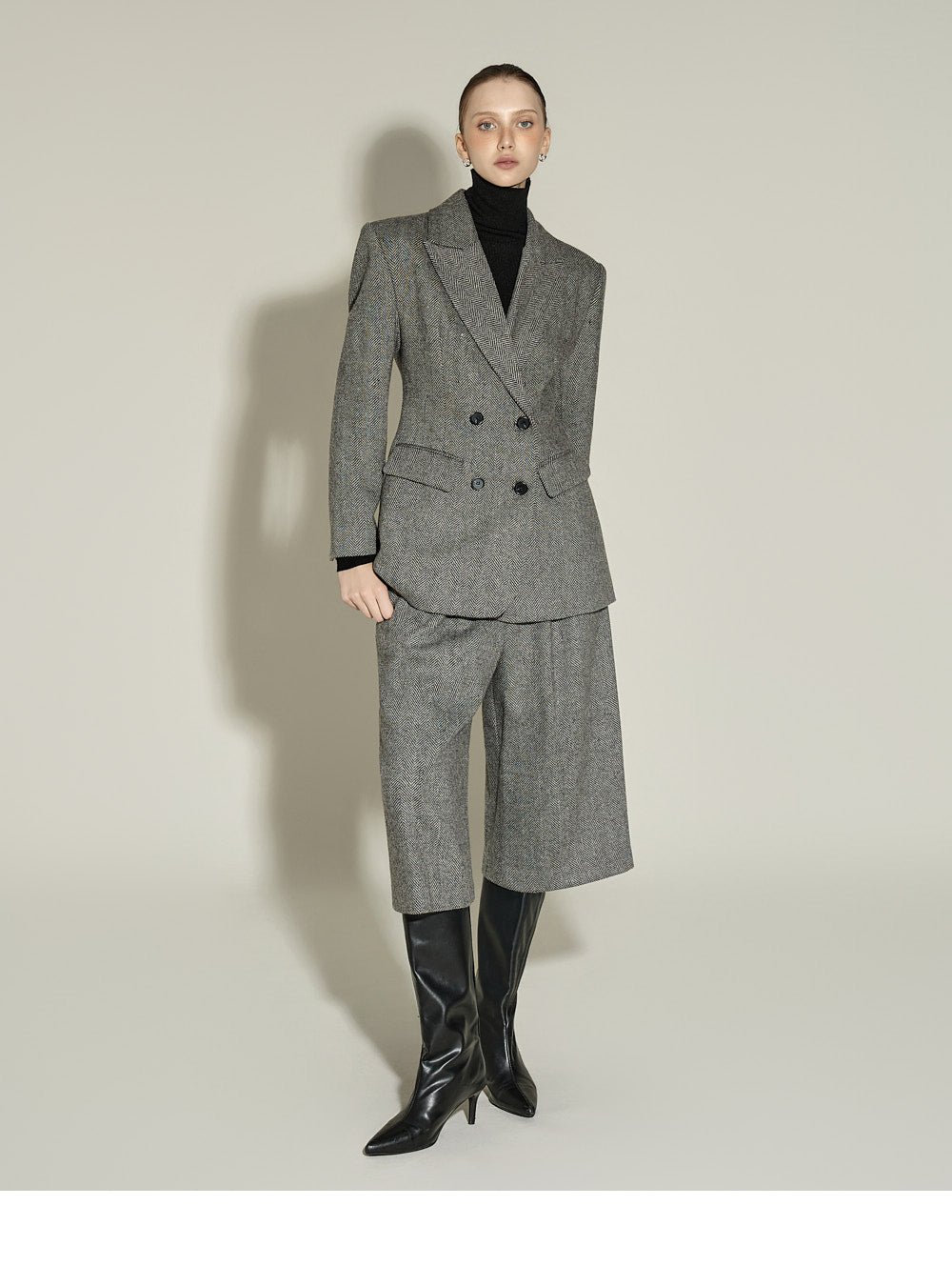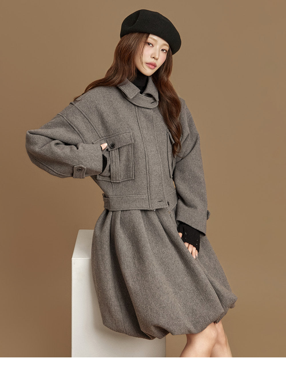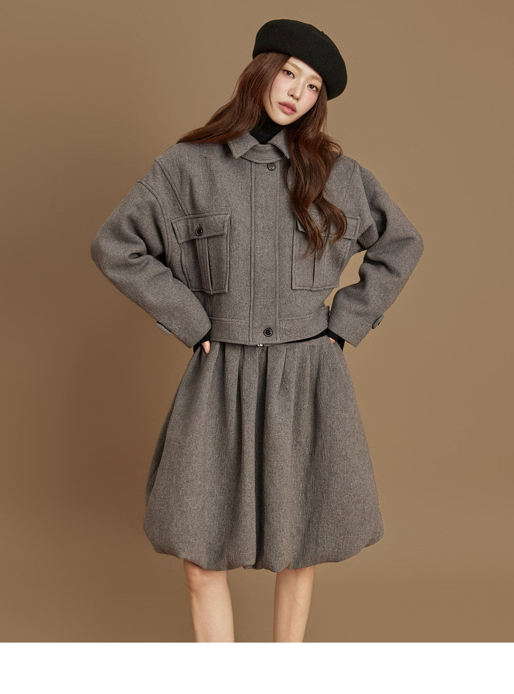 and the turtleneck design creates a neat yet cozy look.