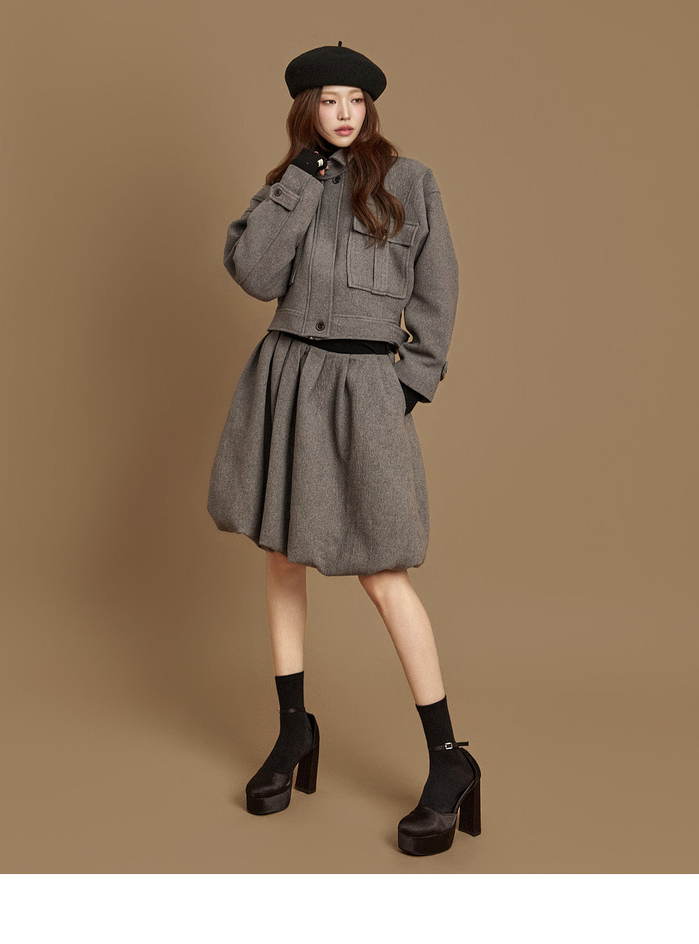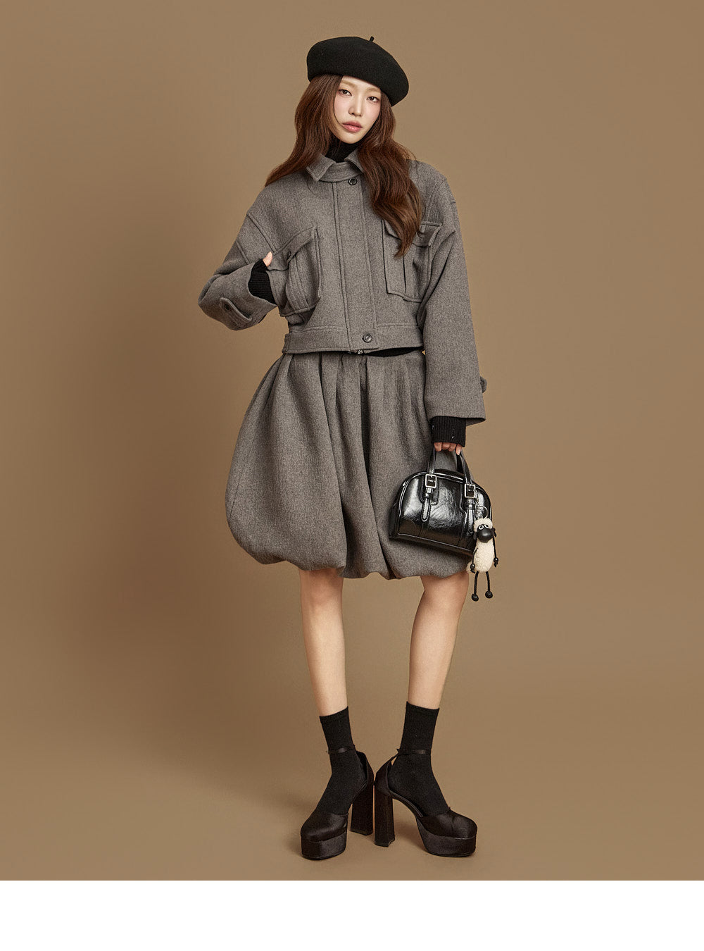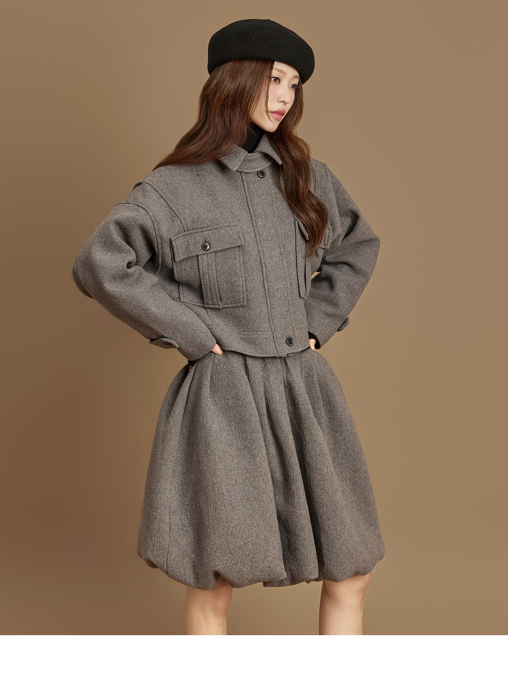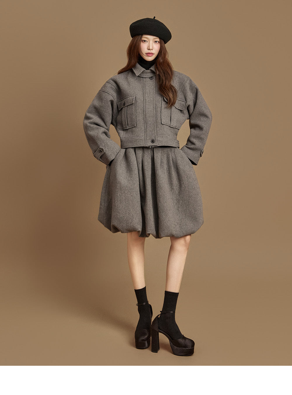 and the turtleneck design creates a neat yet cozy look.