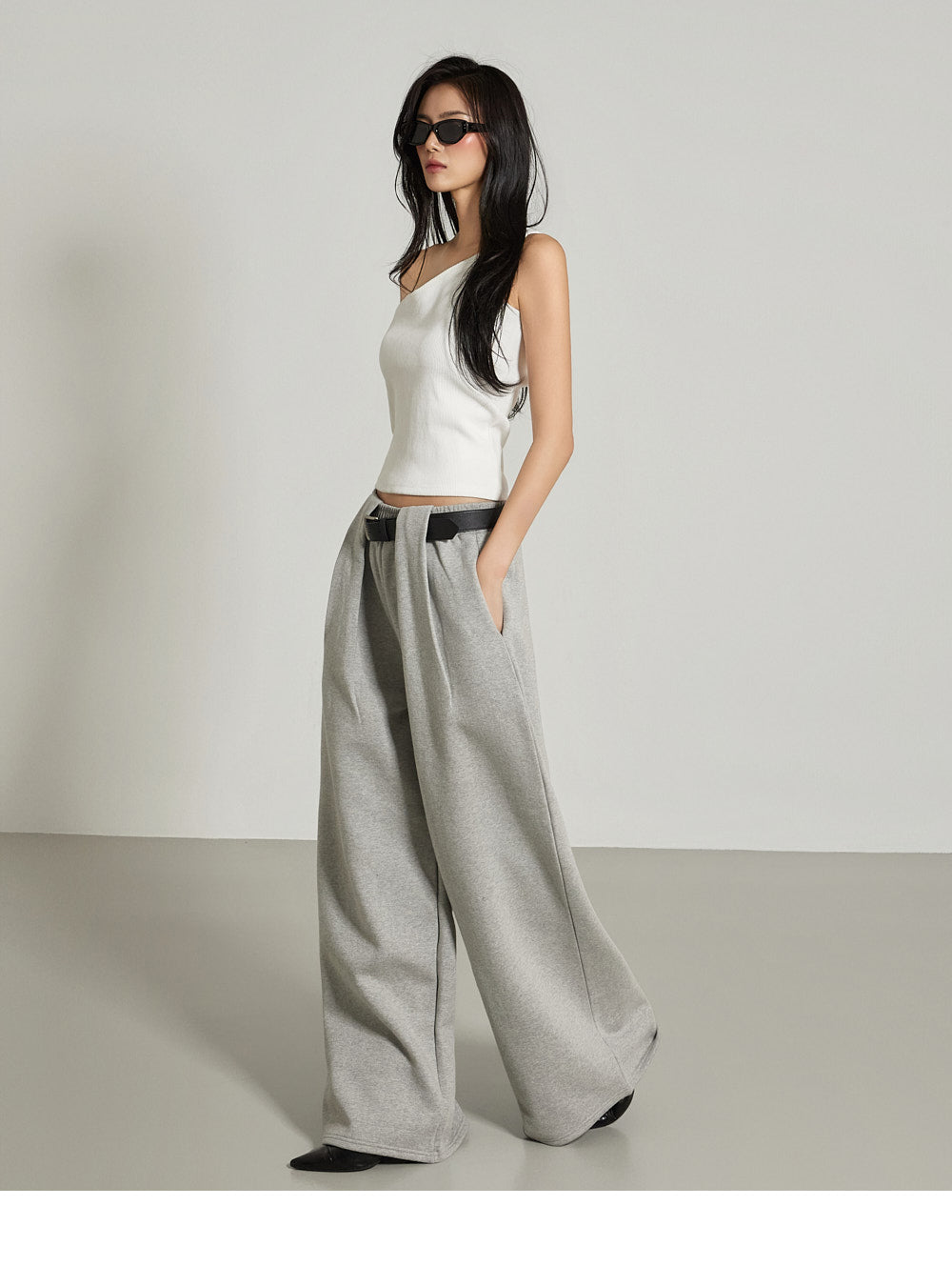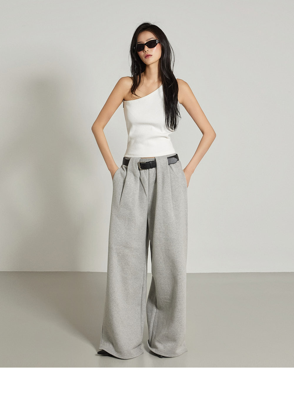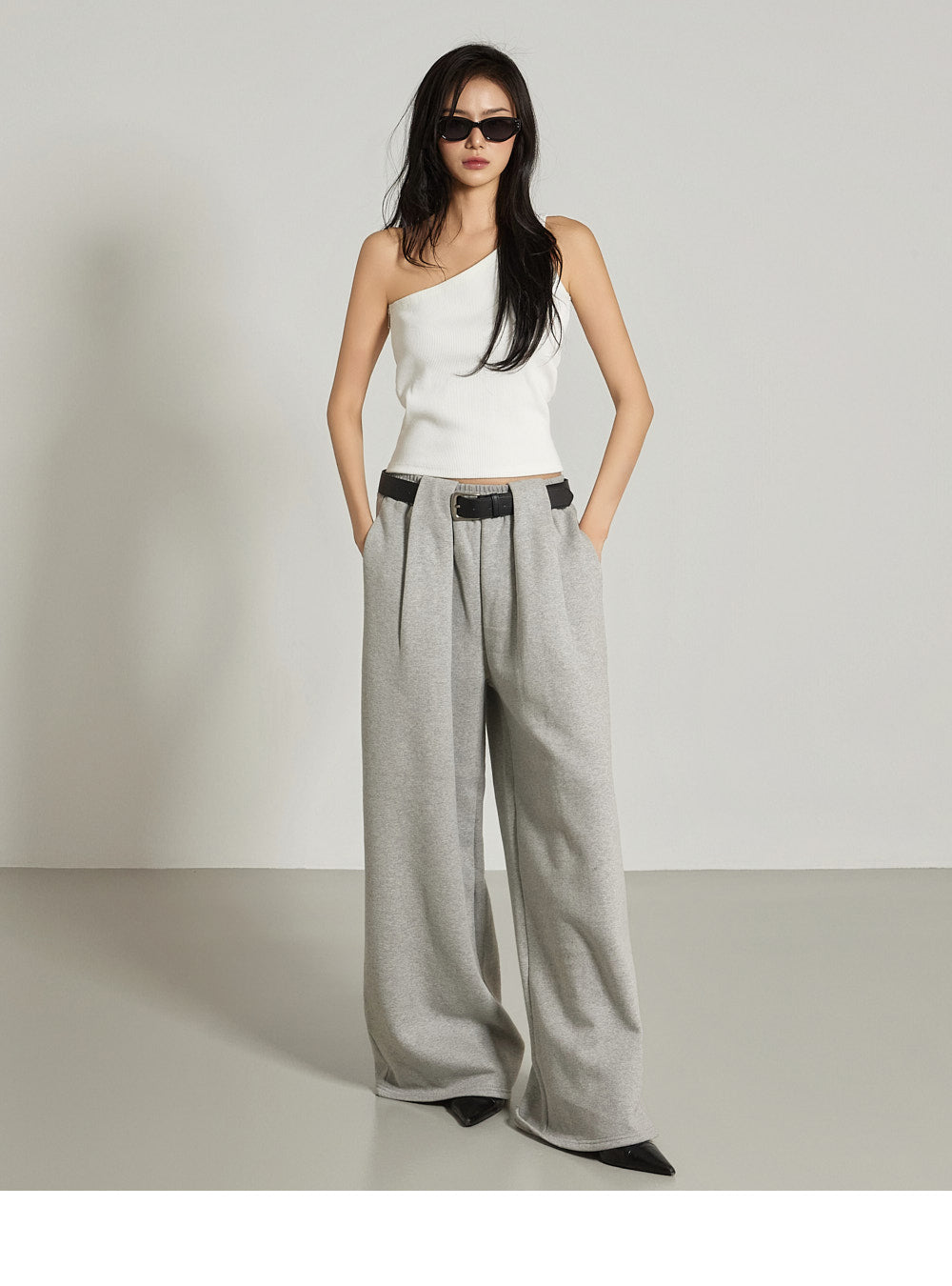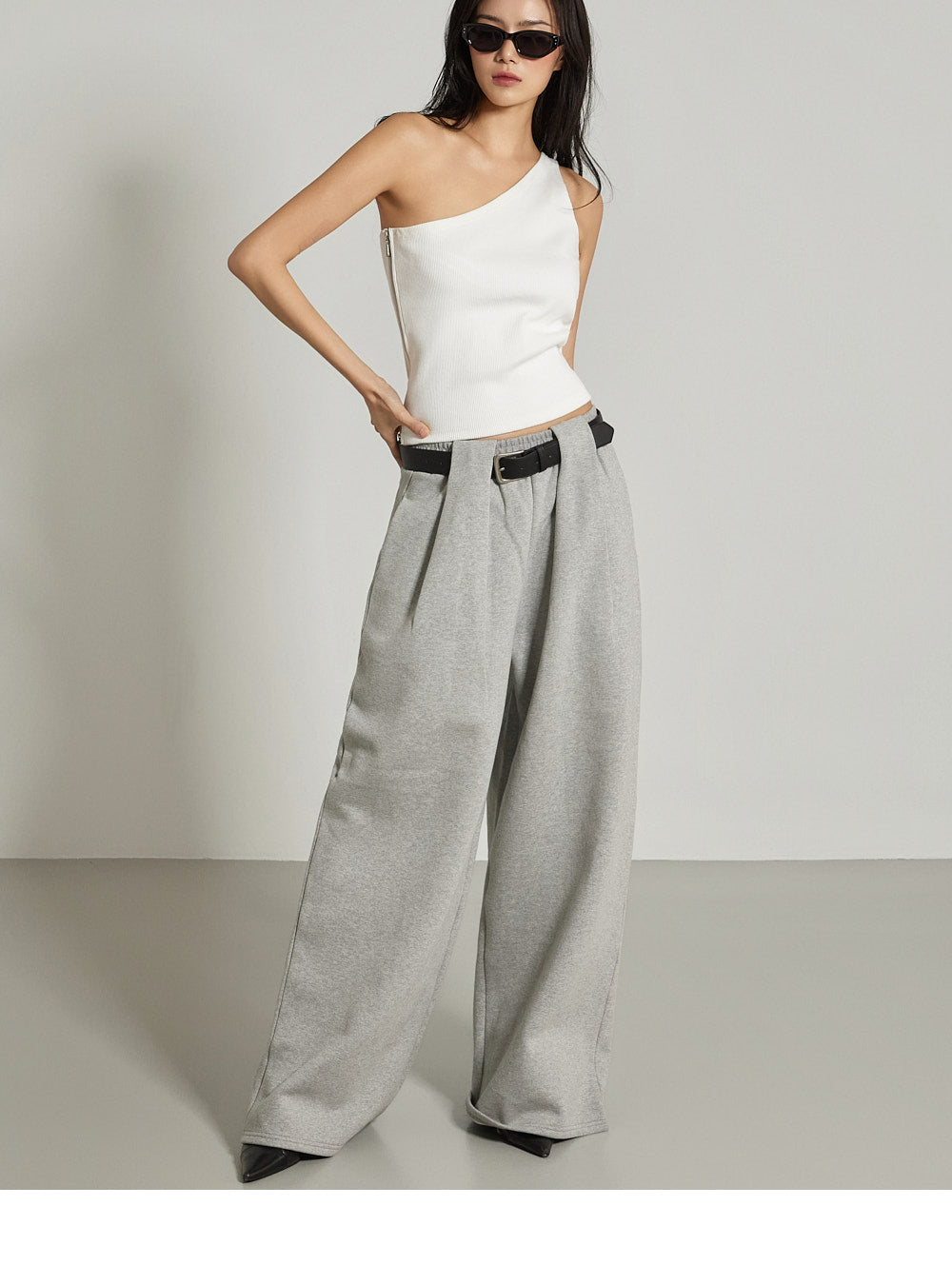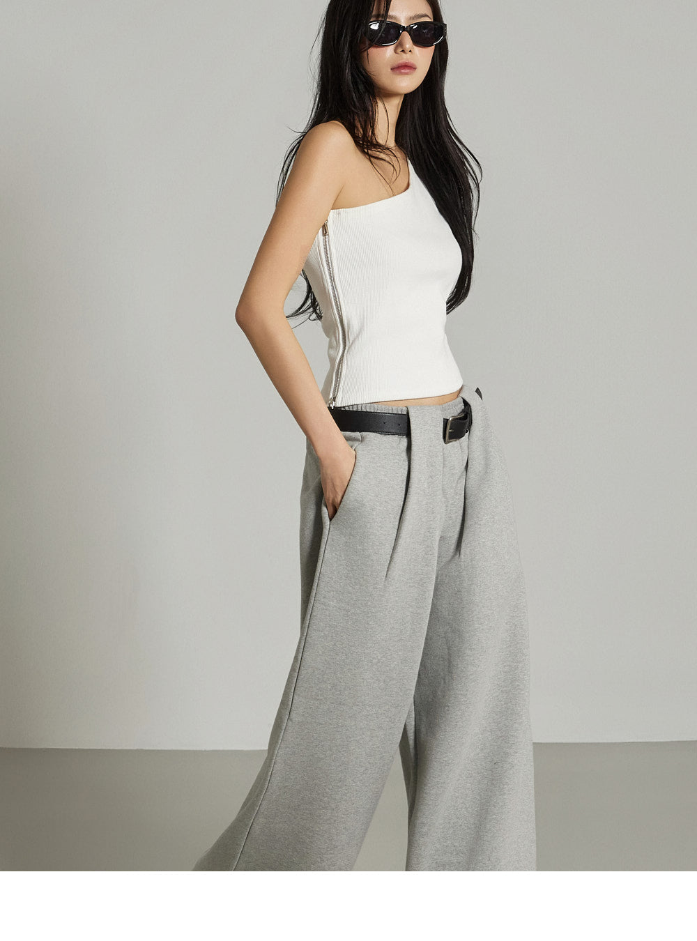 The one-shoulder design and ribbed texture add a simple yet unique touch,