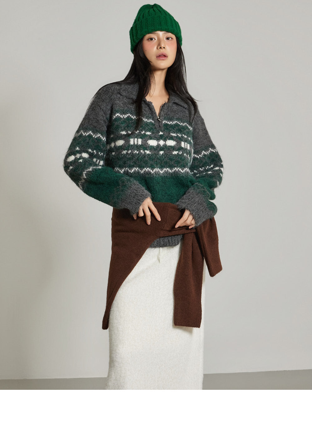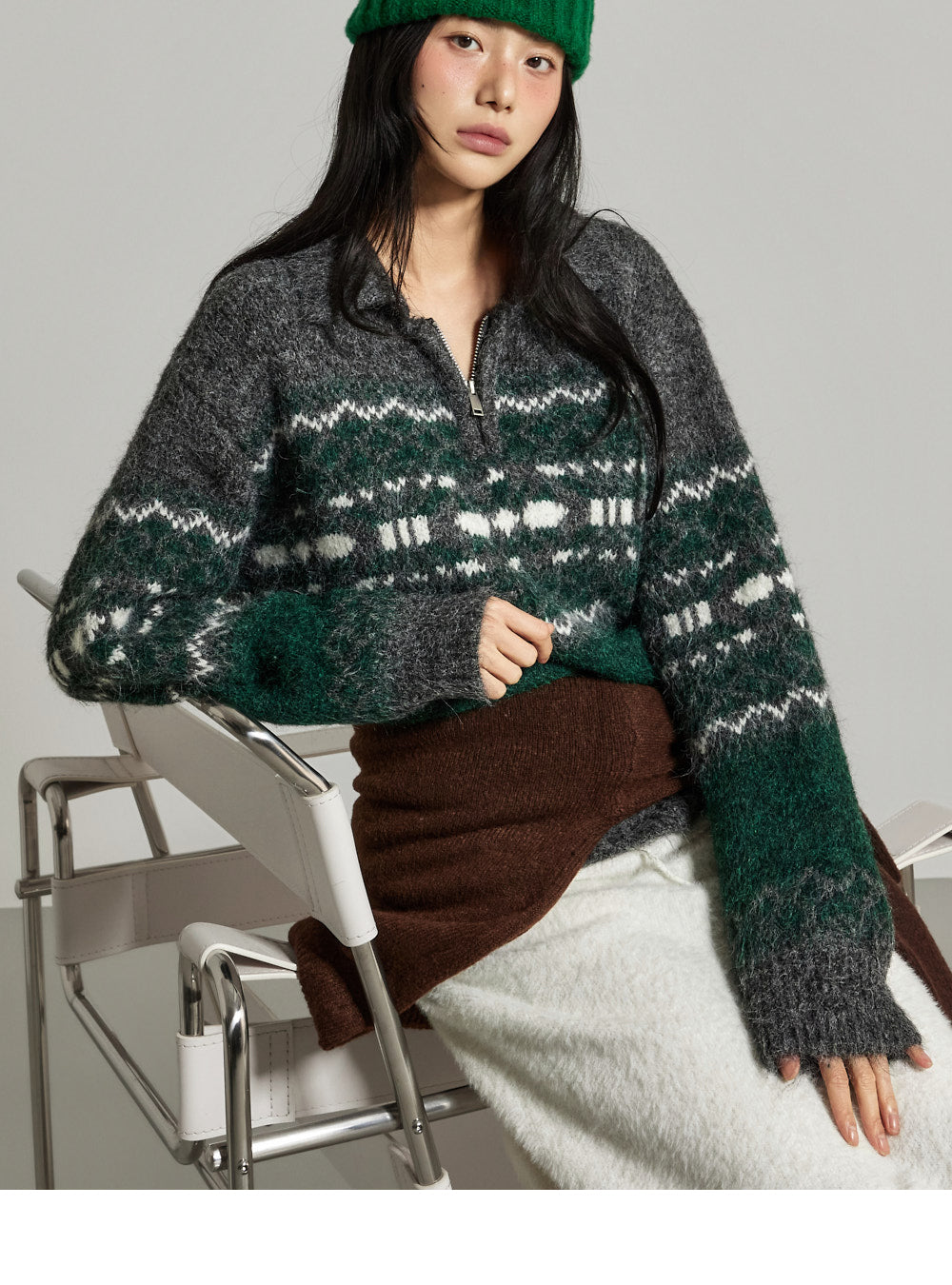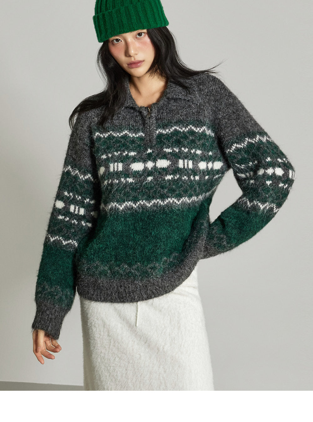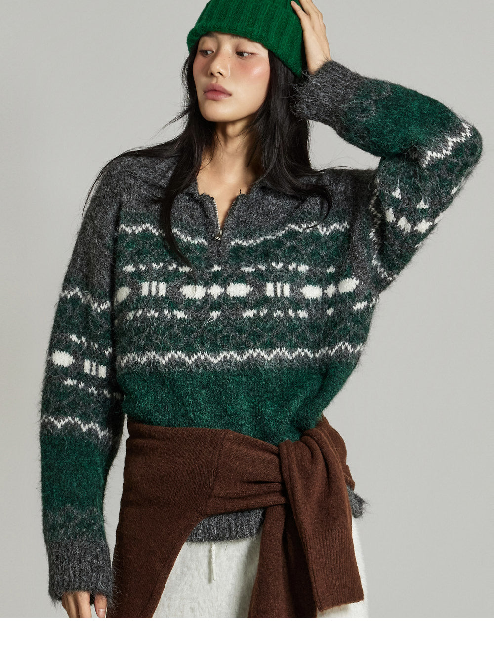 This casual Fair Isle zip-up wool knit has a chic vibe.
