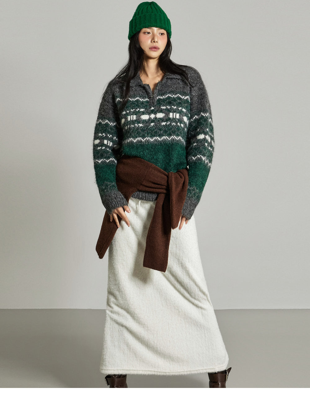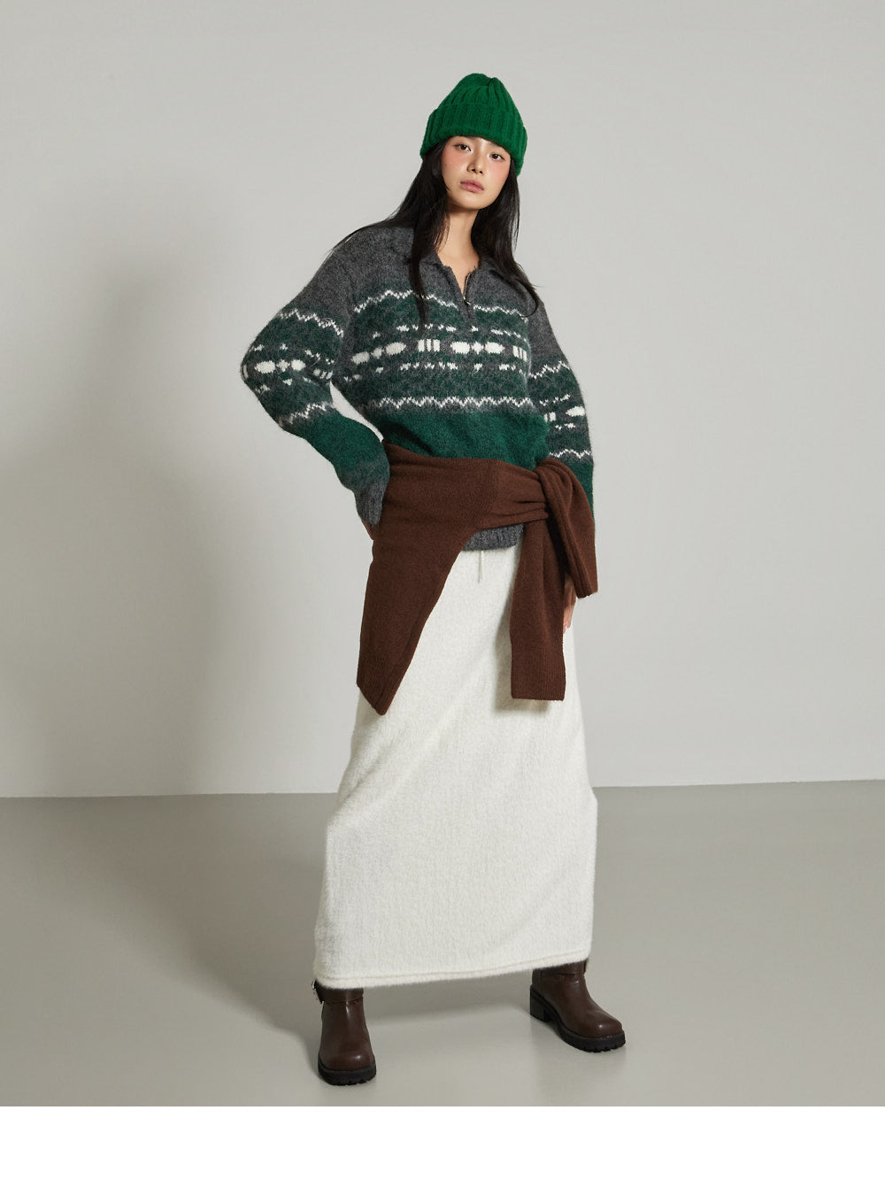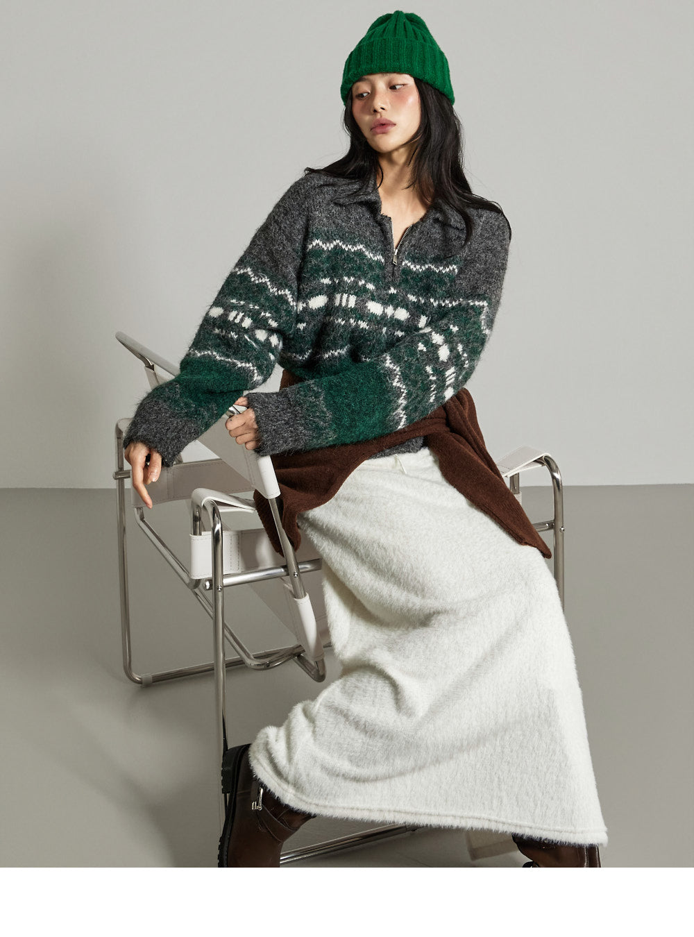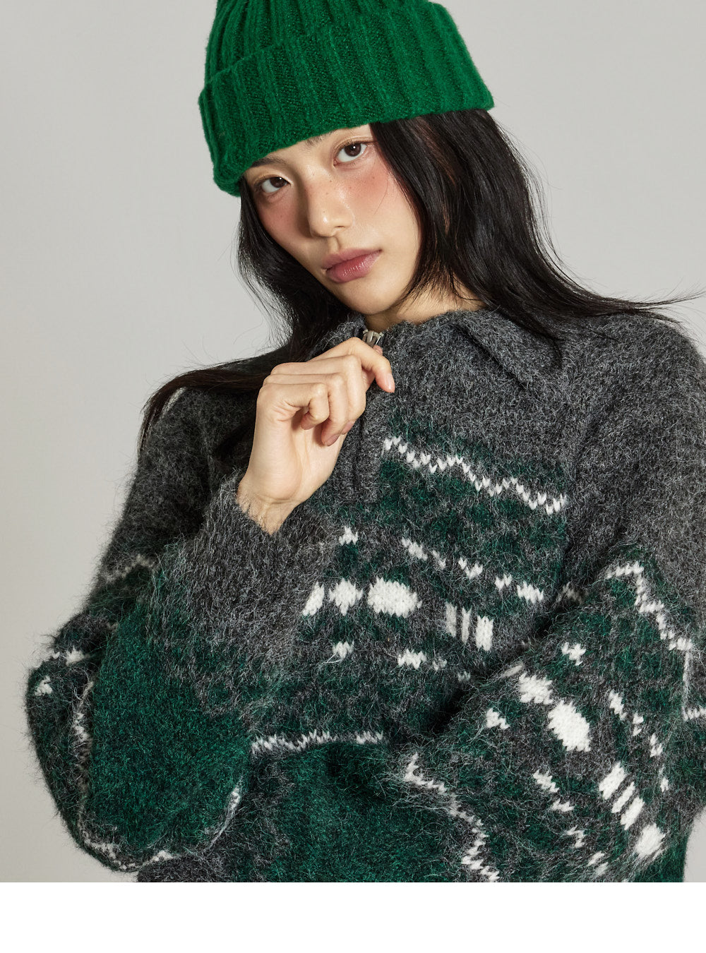 This casual Fair Isle zip-up wool knit has a chic vibe.
