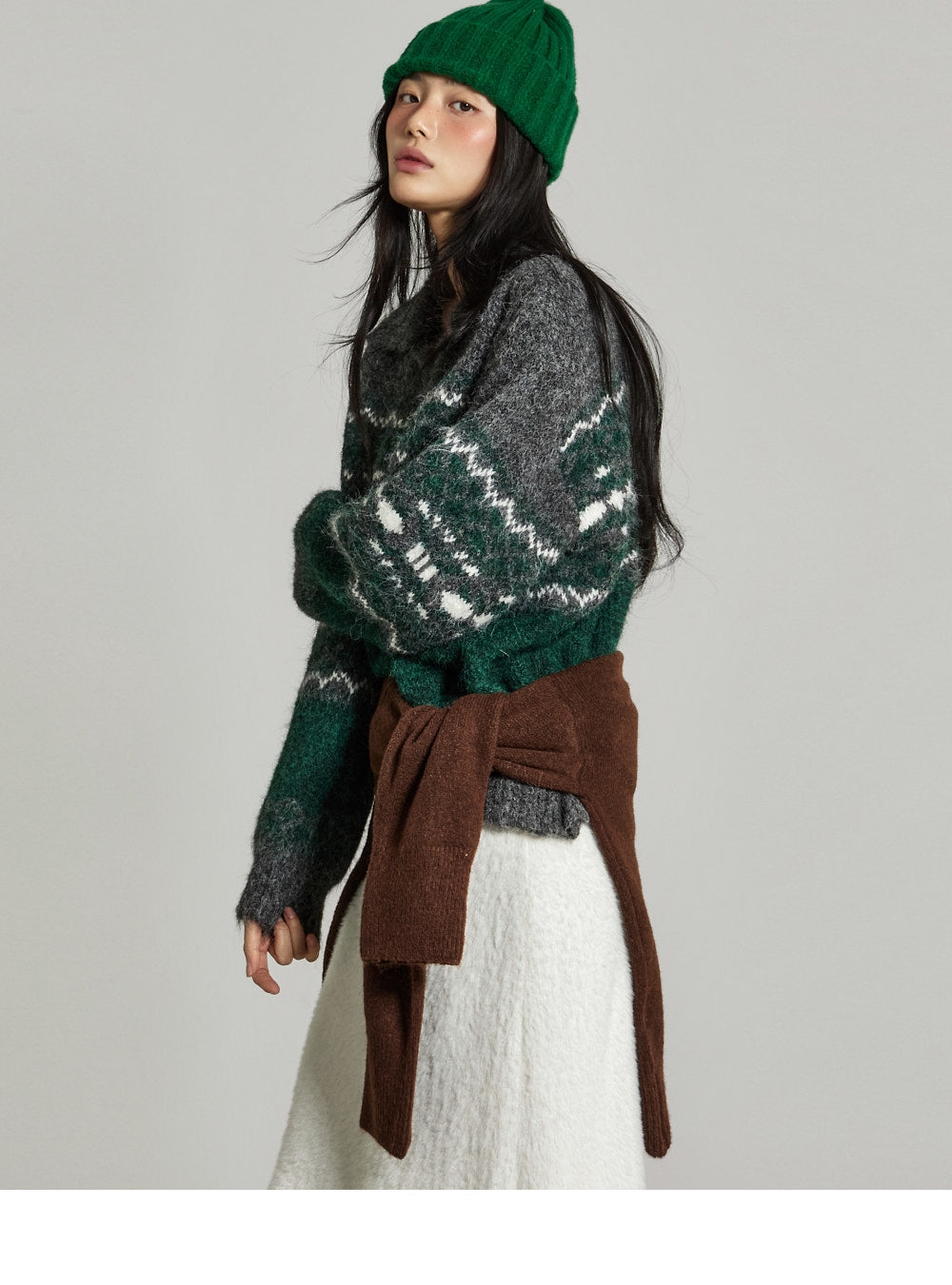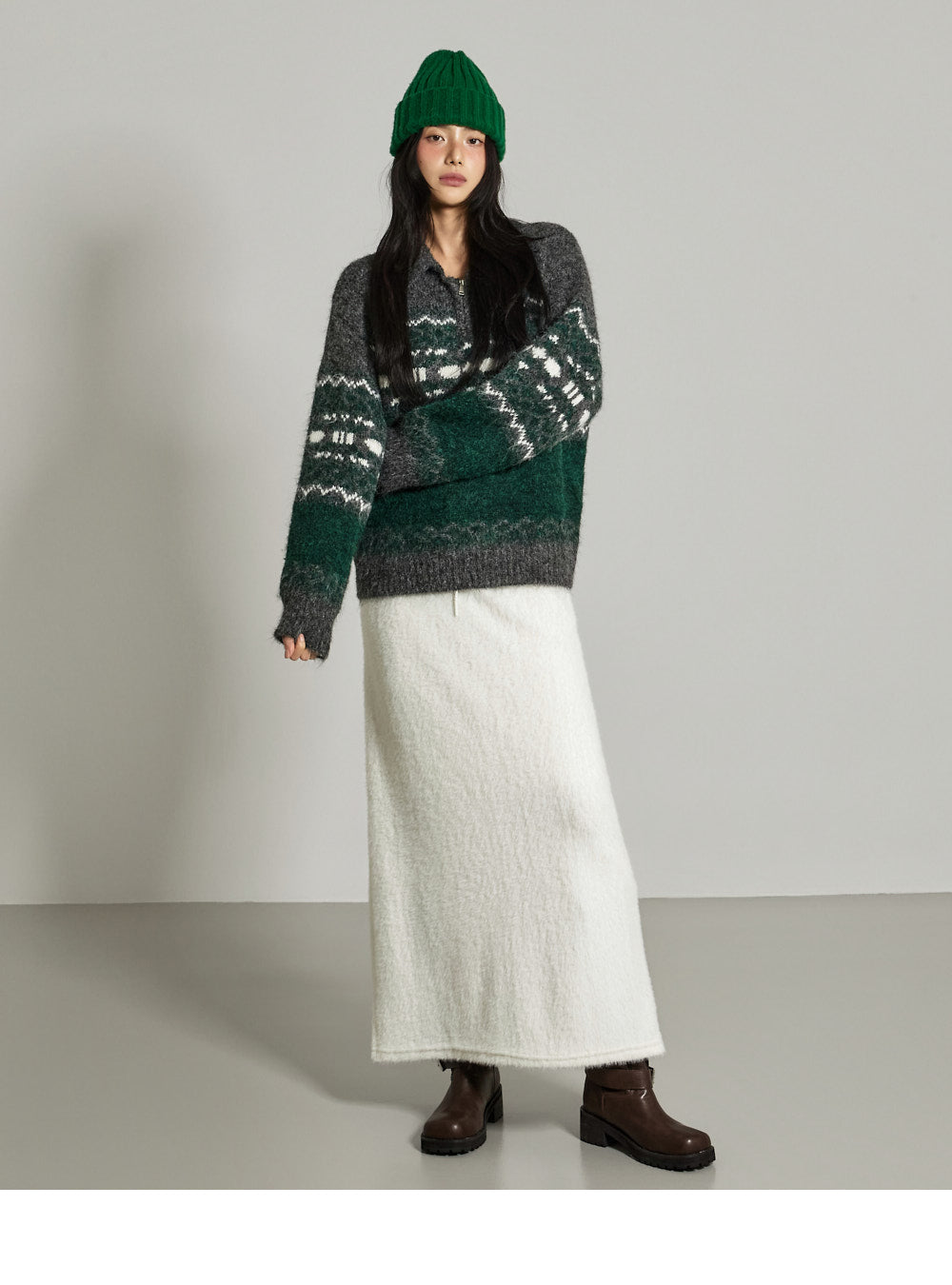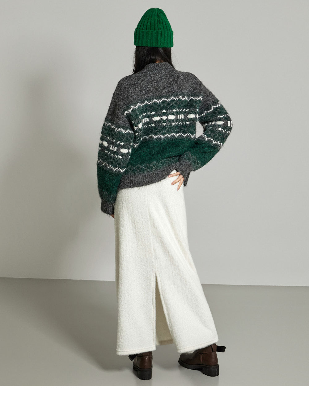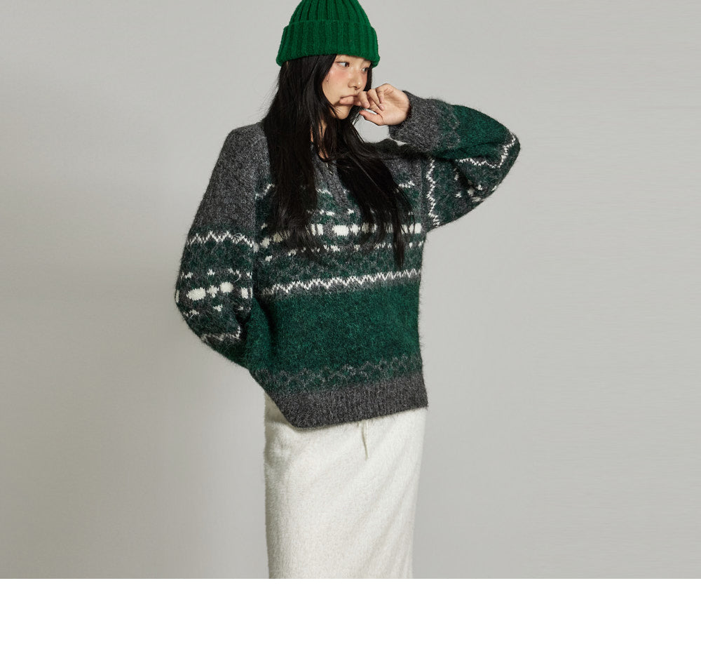 This casual Fair Isle zip-up wool knit has a chic vibe.