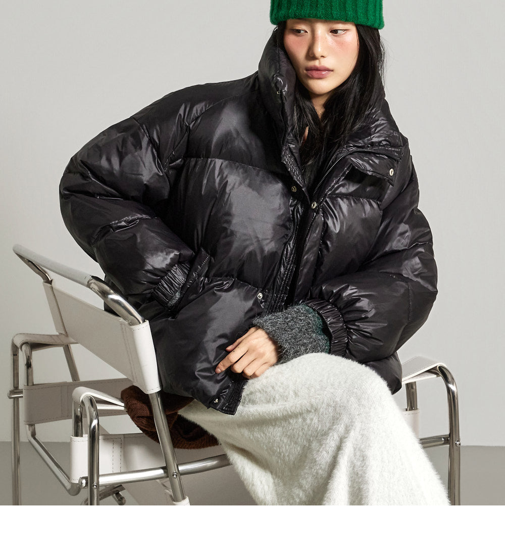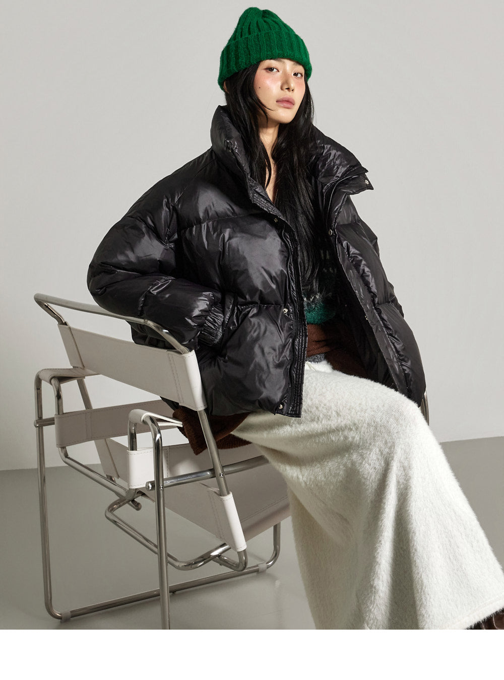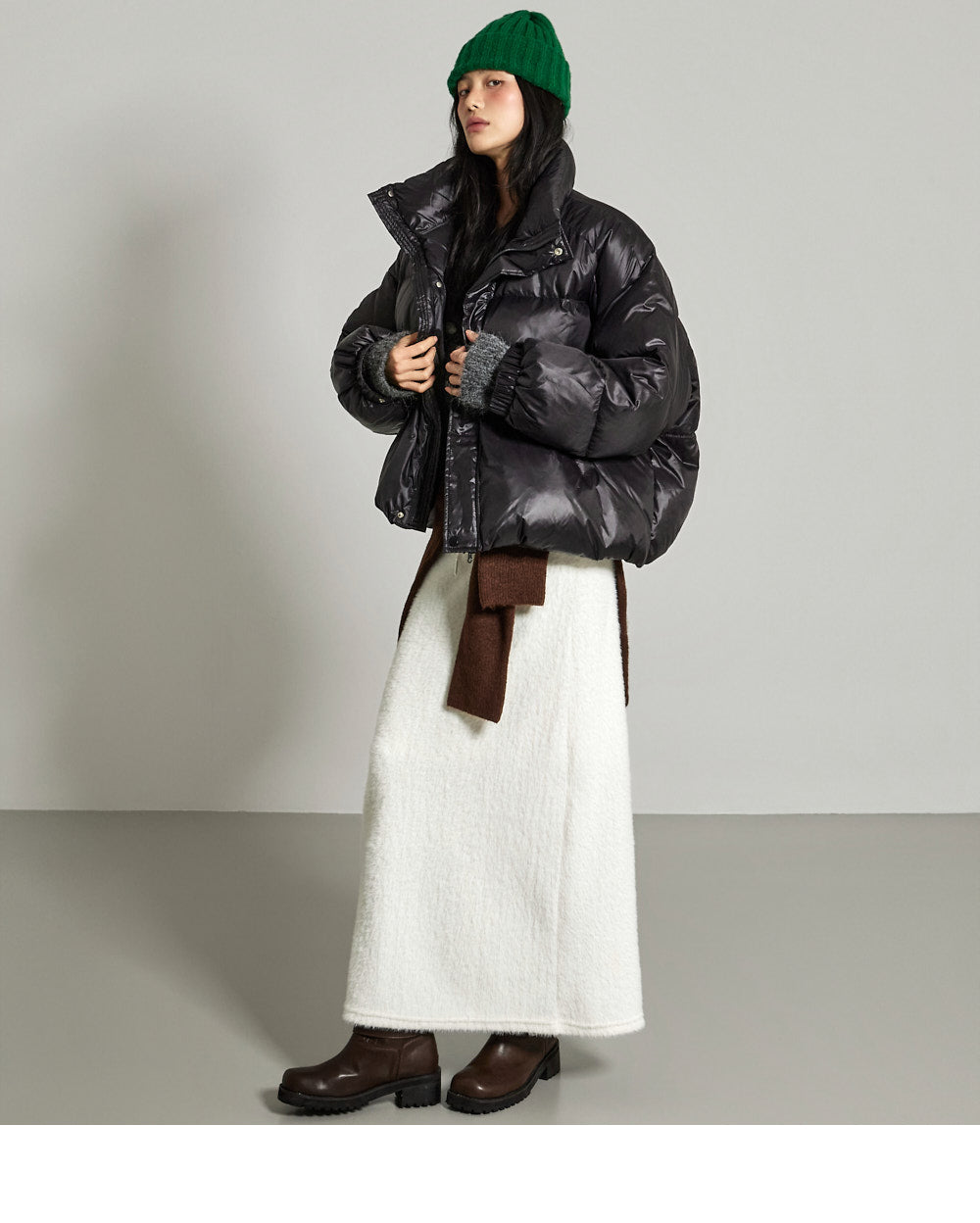 it features a cozy, hairy texture, and a loose fit for a relaxed silhouette.