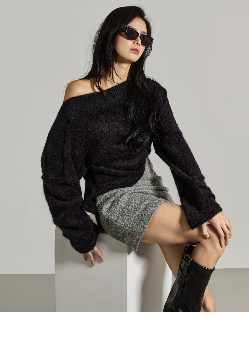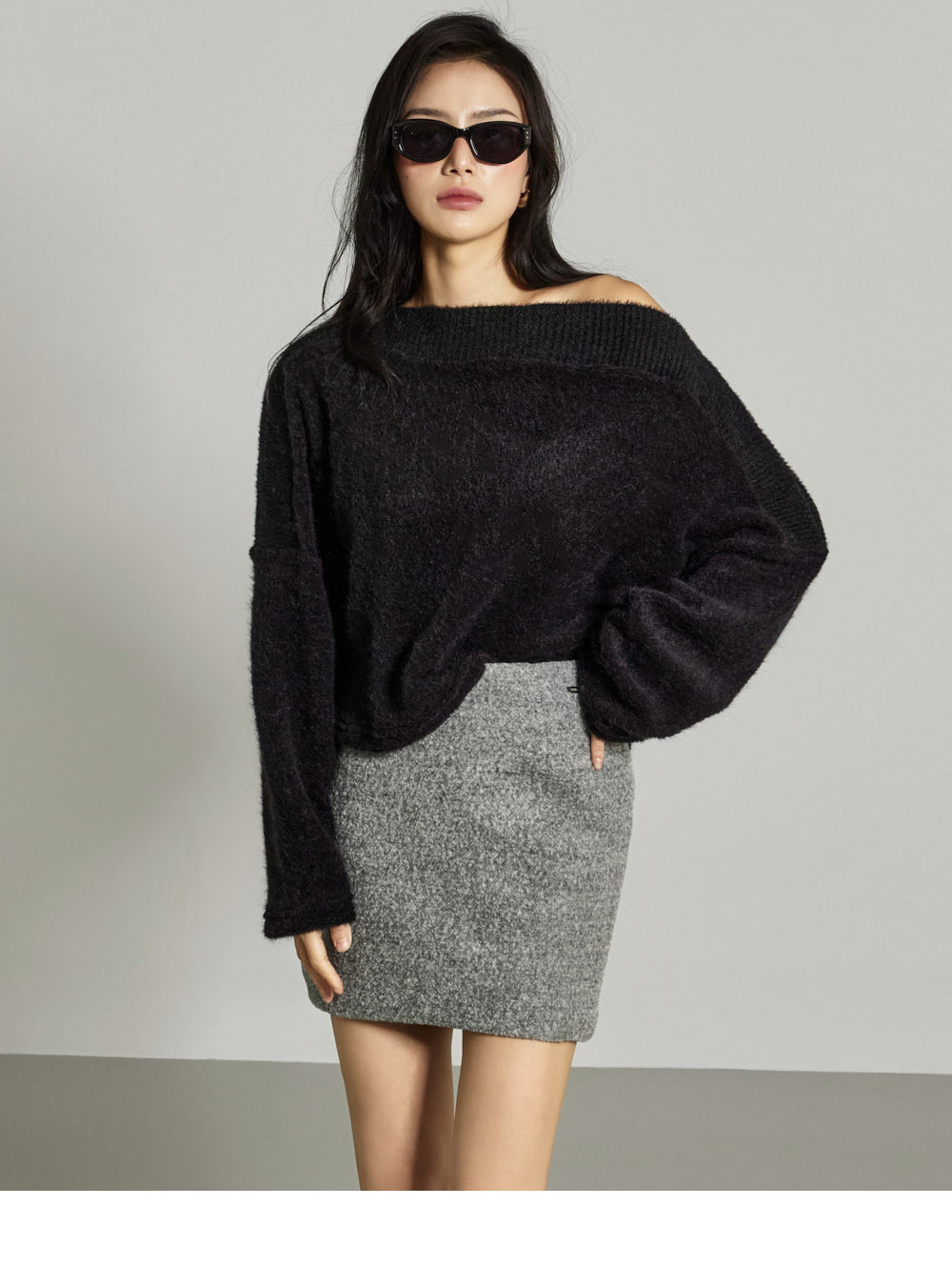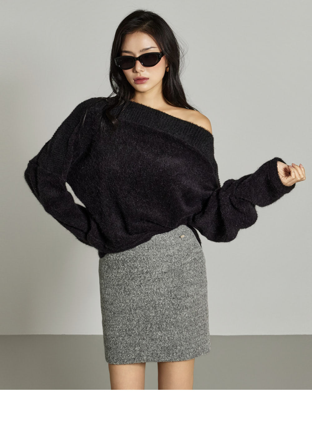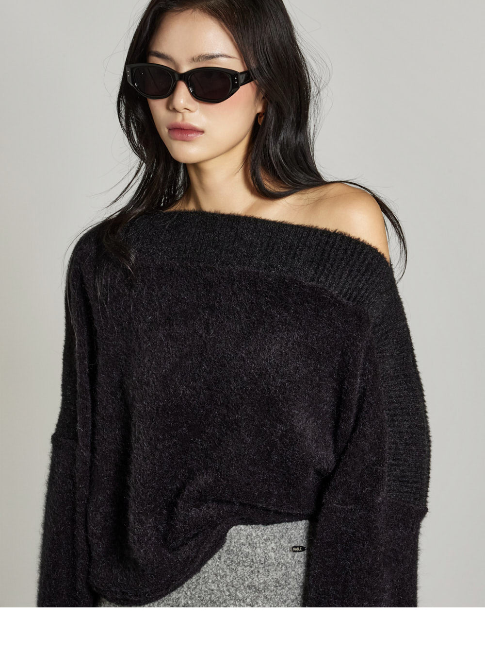 This off-shoulder knit exudes a casual, feminine vibe.