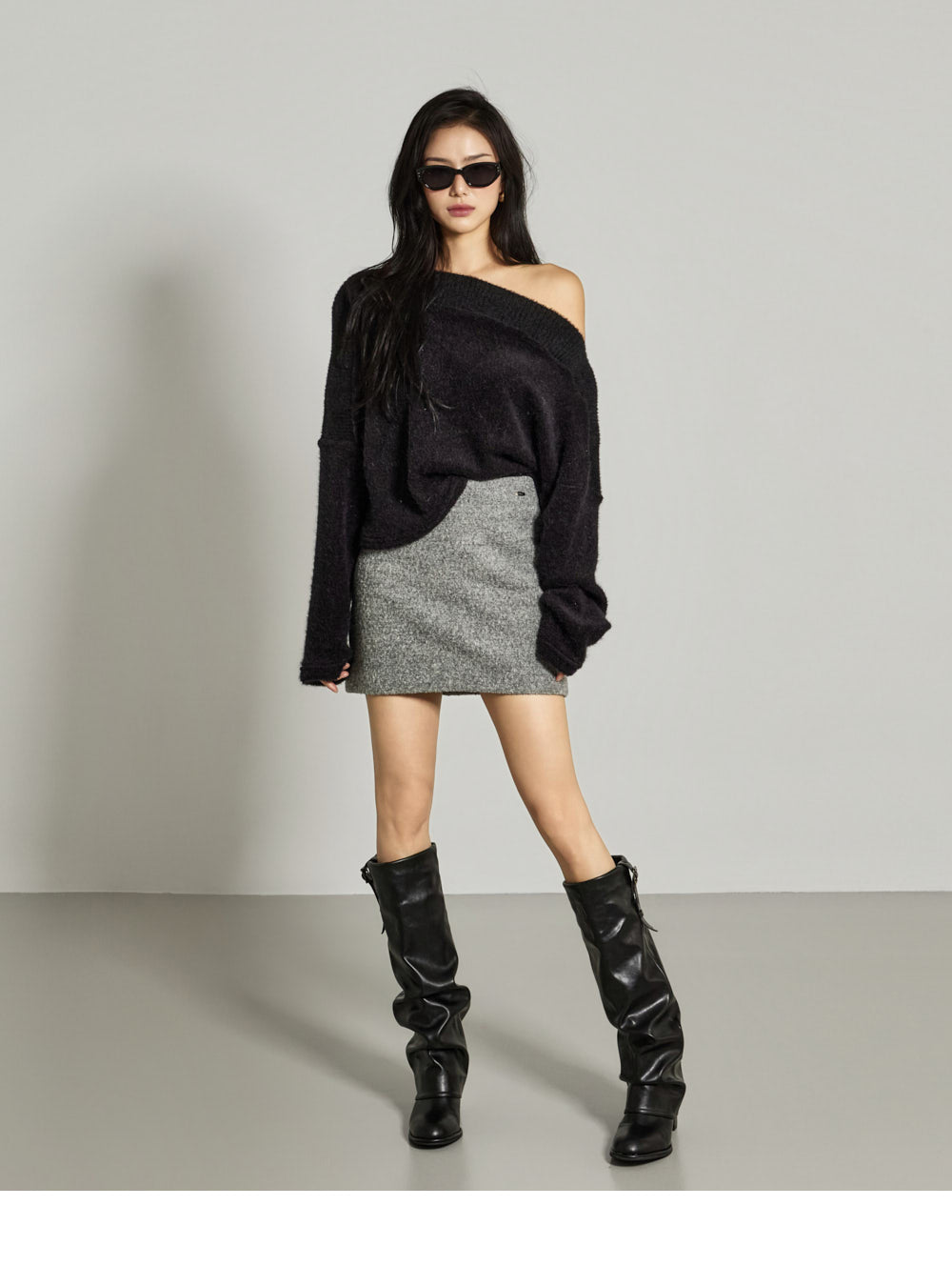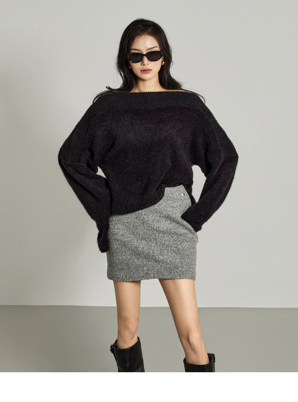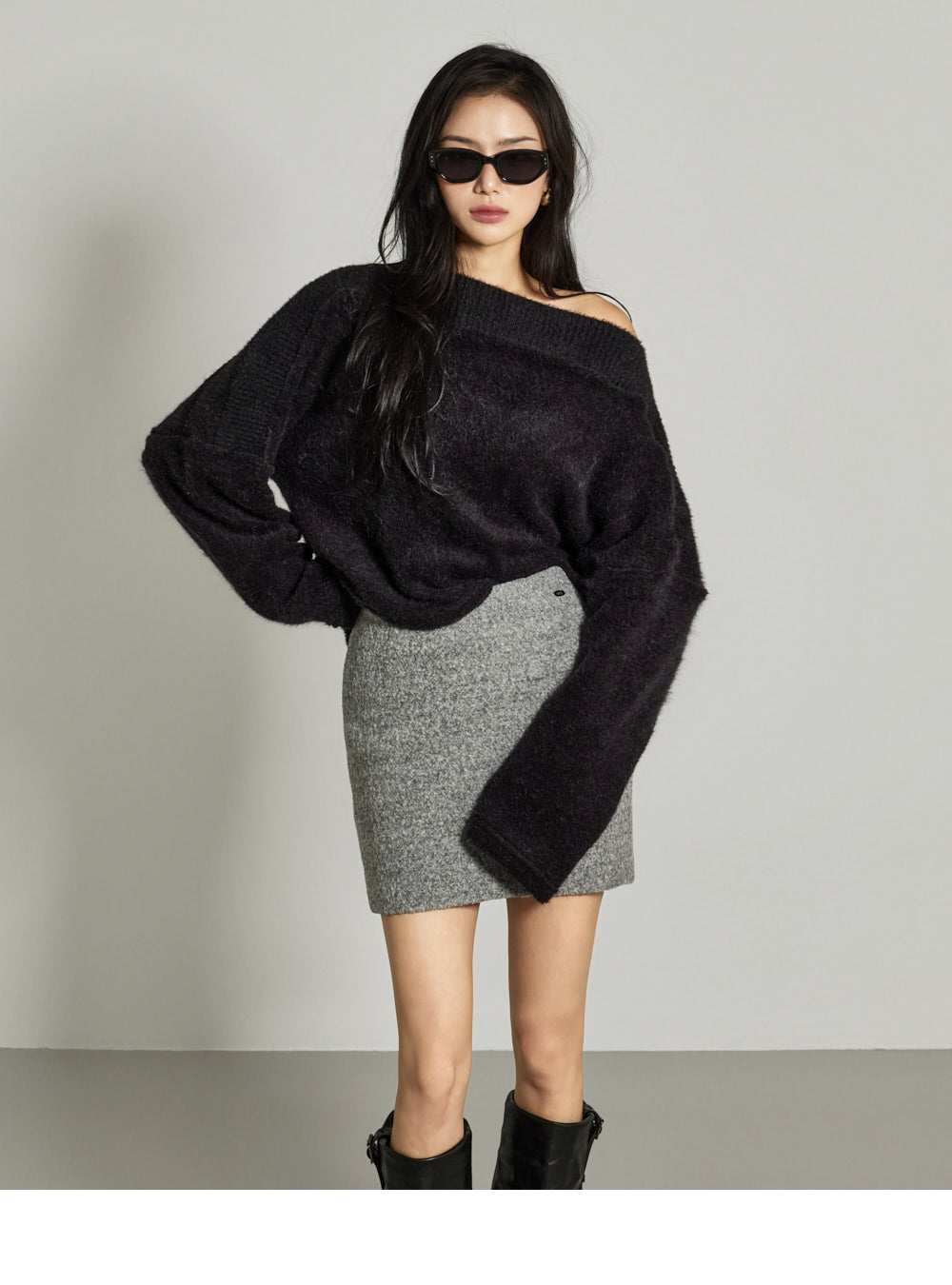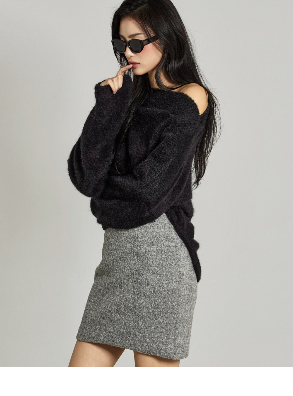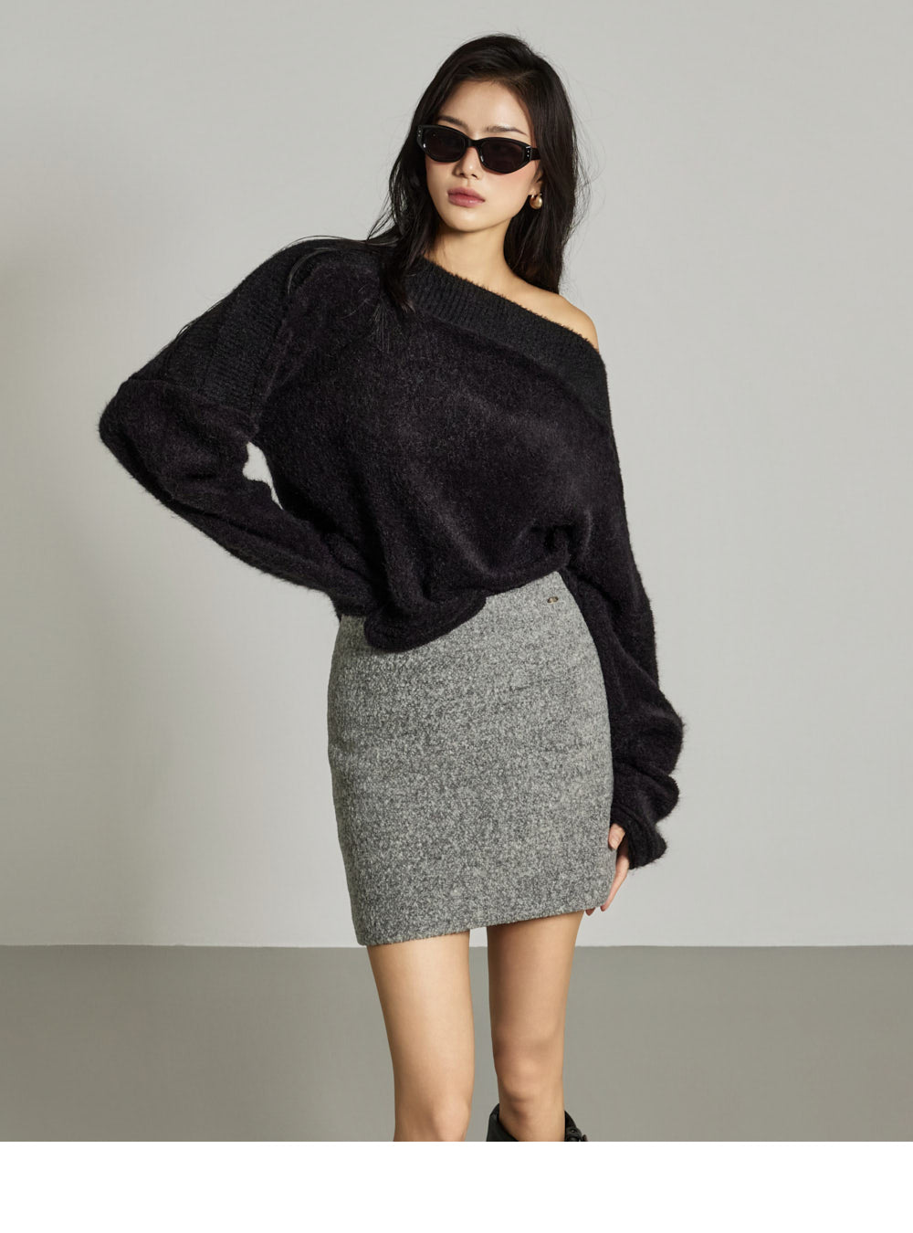This off-shoulder knit exudes a casual, feminine vibe.