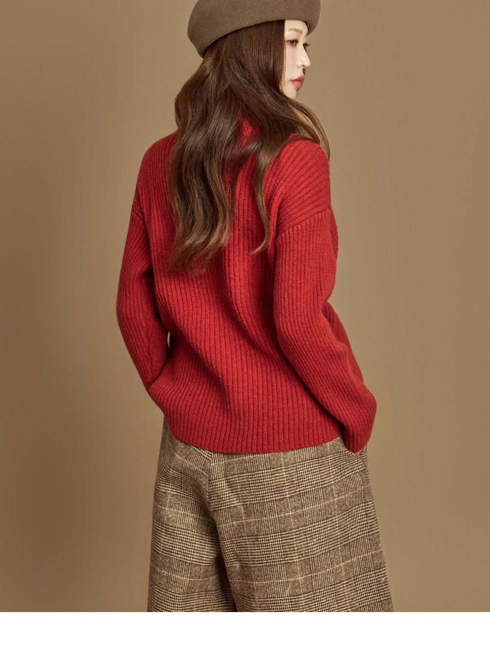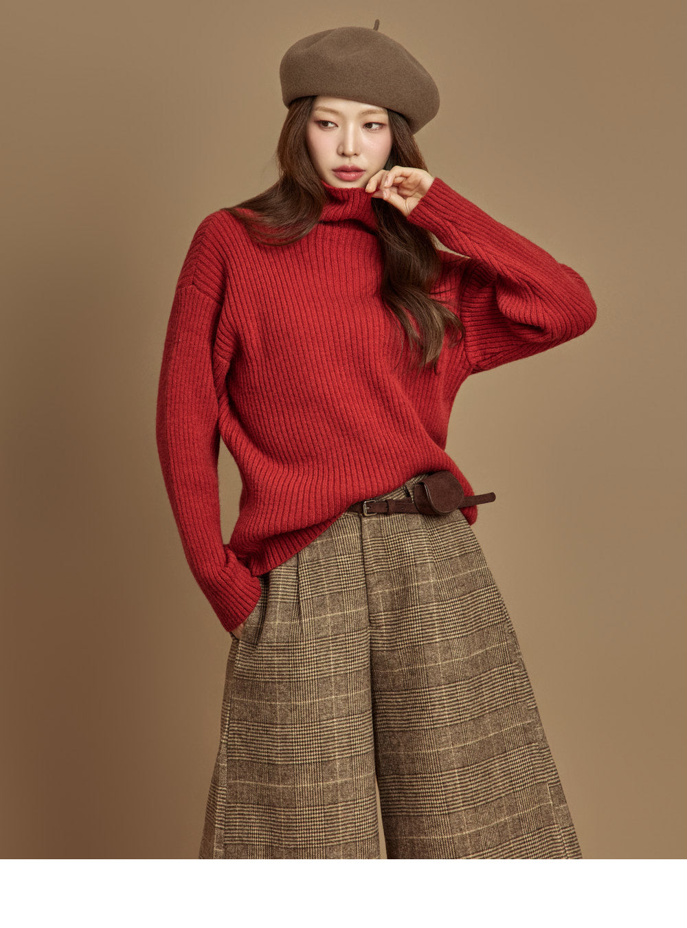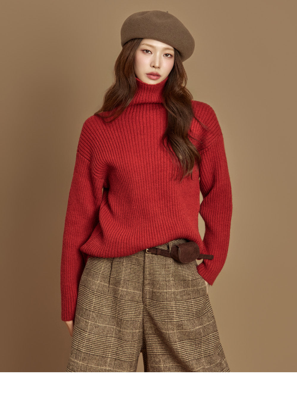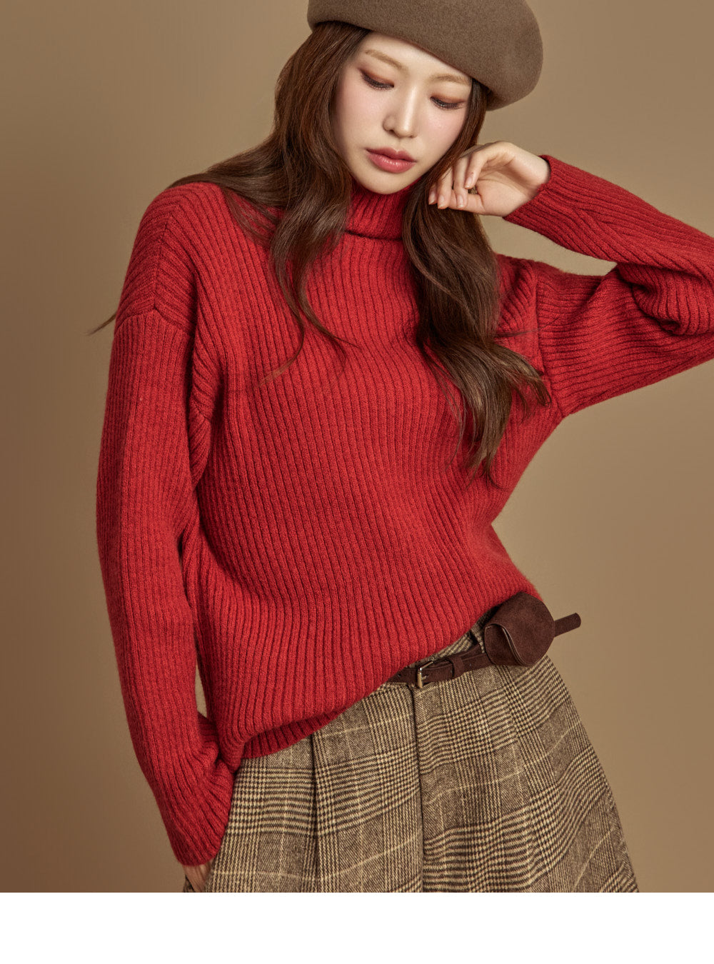 The high neck design enhances warmth,and the vertical ribbed weave and loose fit
