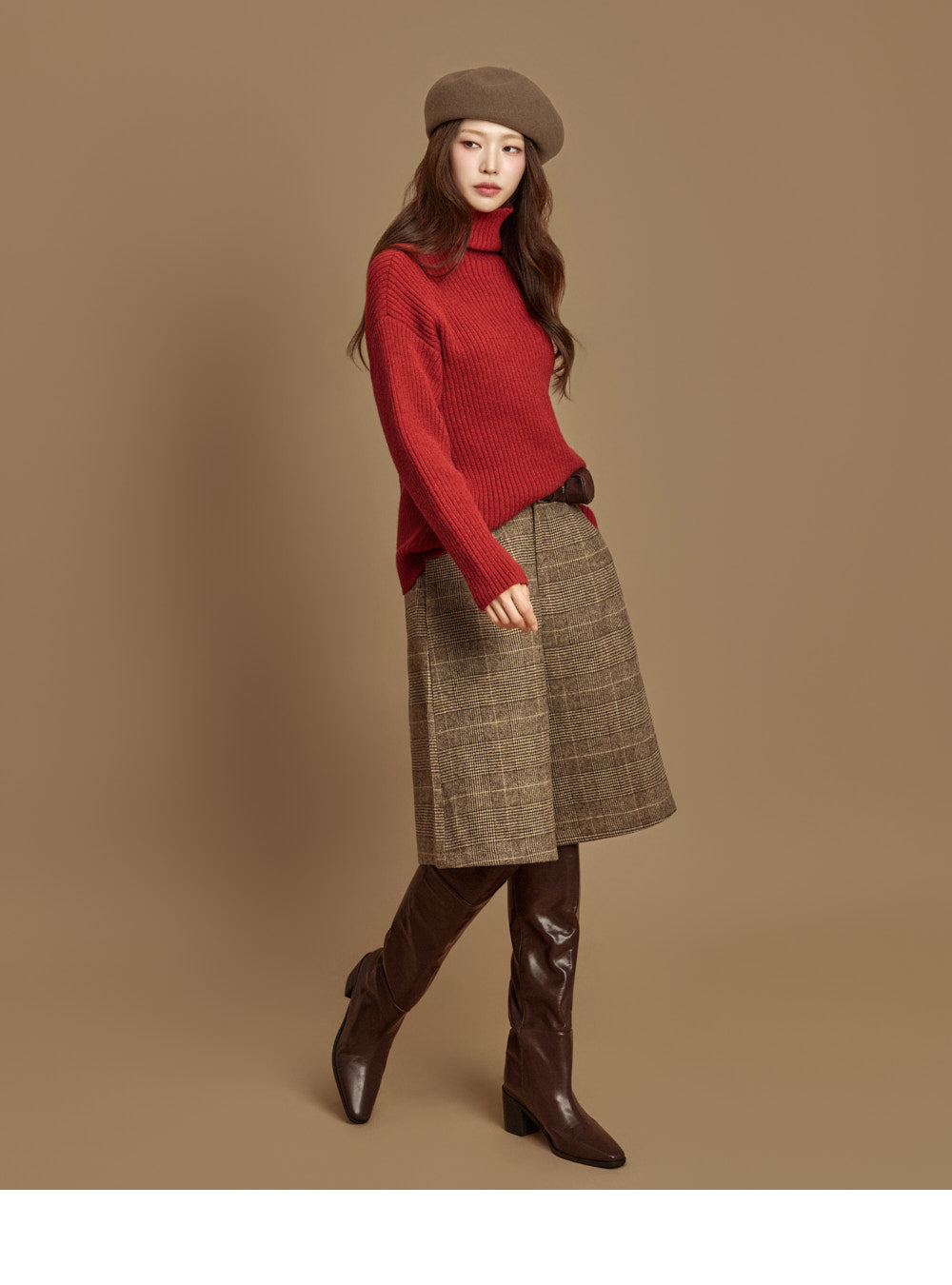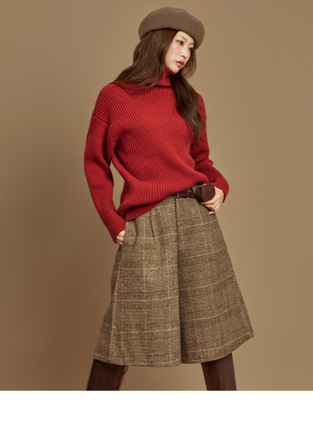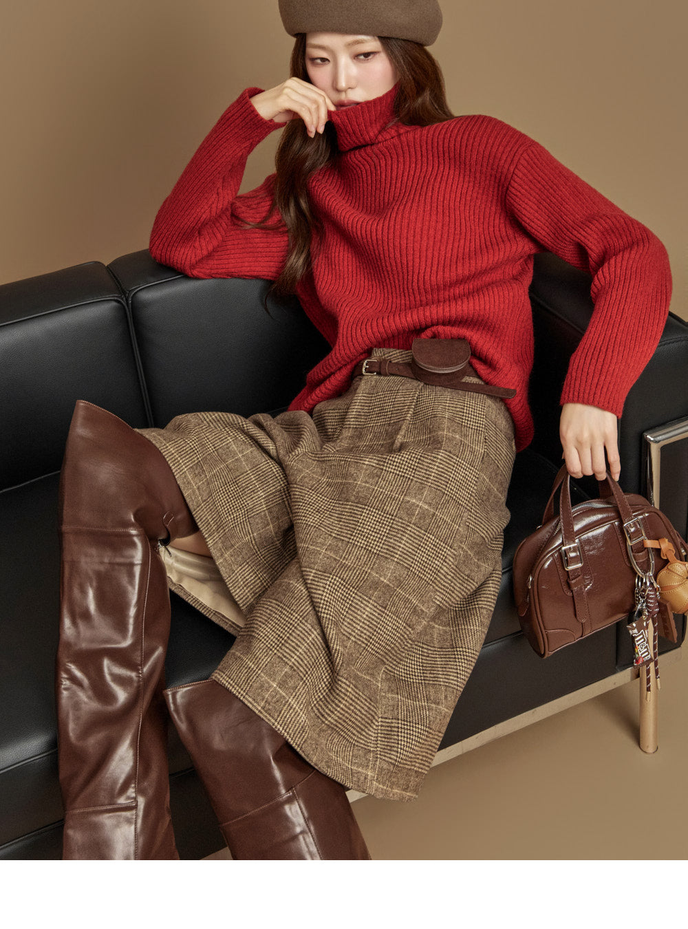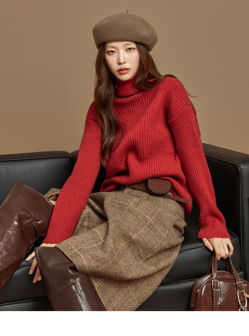 The high neck design enhances warmth,and the vertical ribbed weave and loose fit