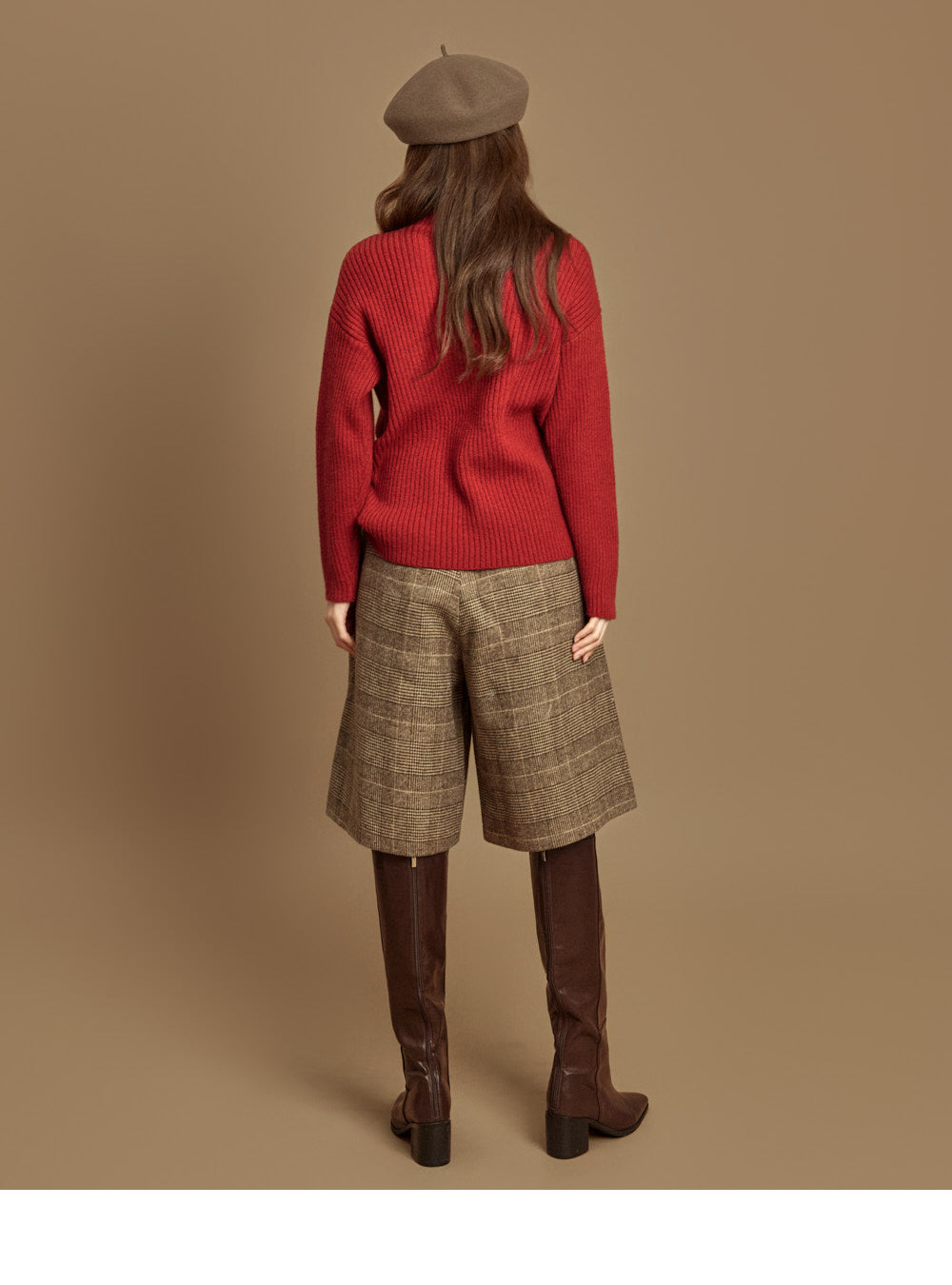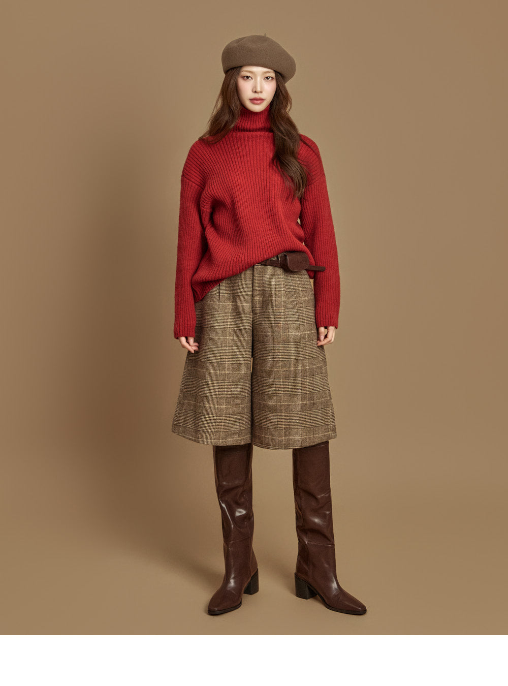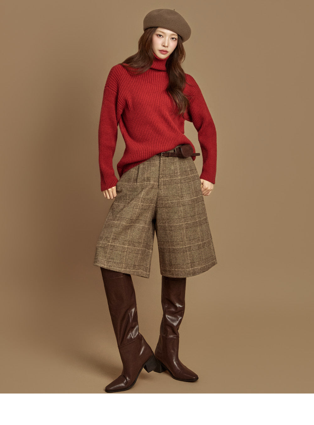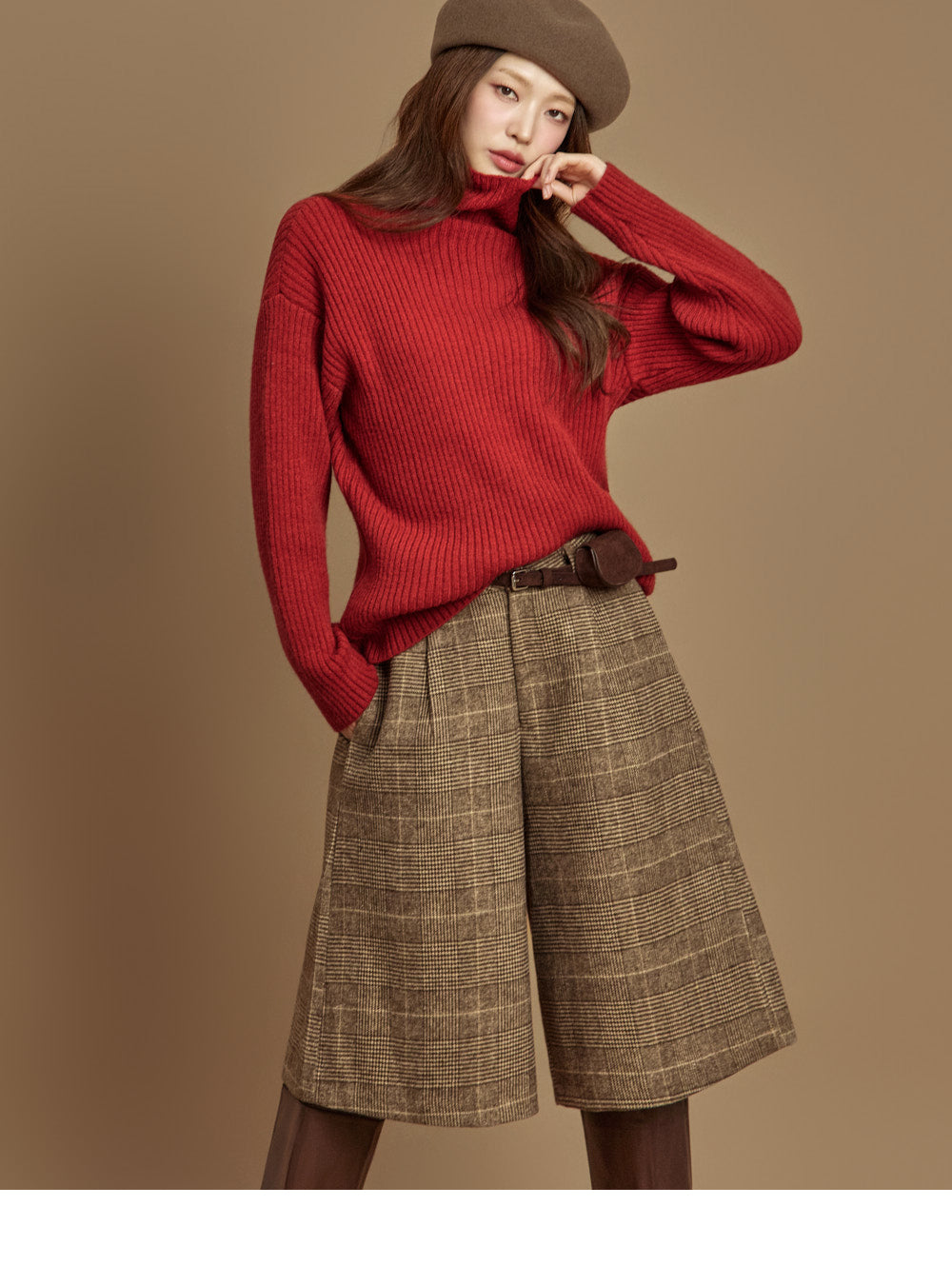 The high neck design enhances warmth,and the vertical ribbed weave and loose fit