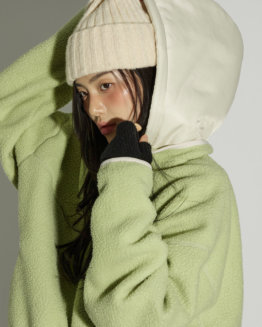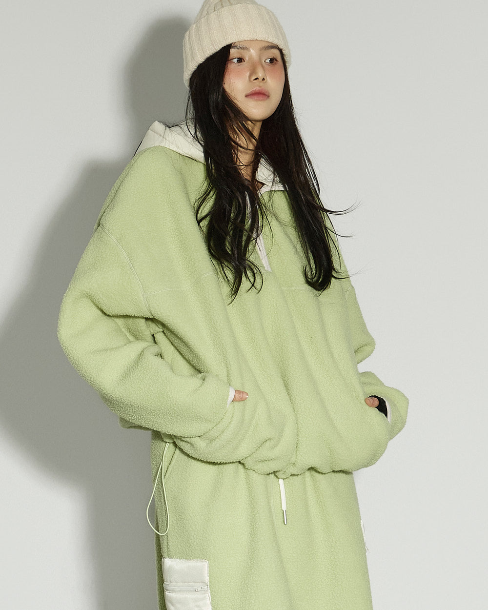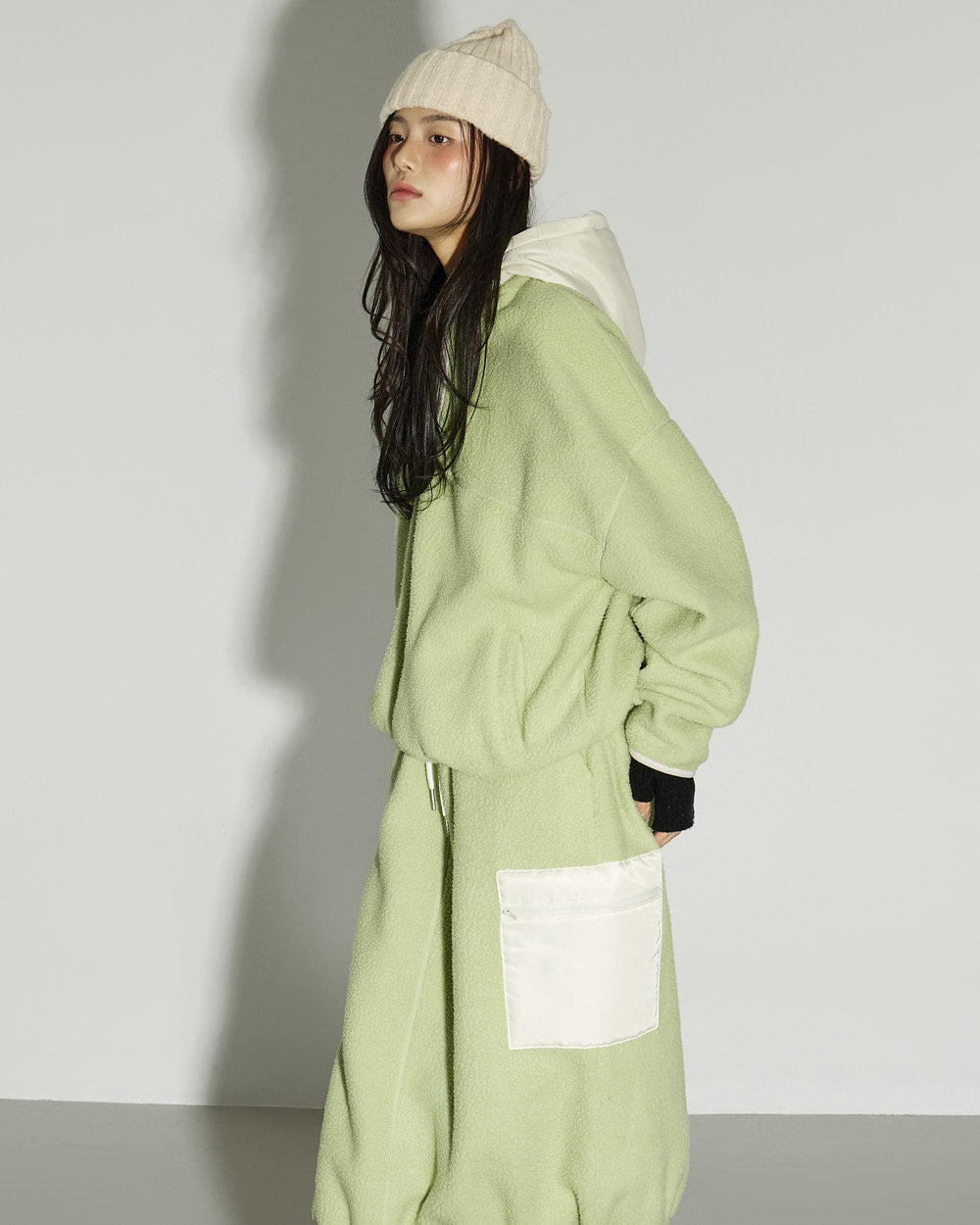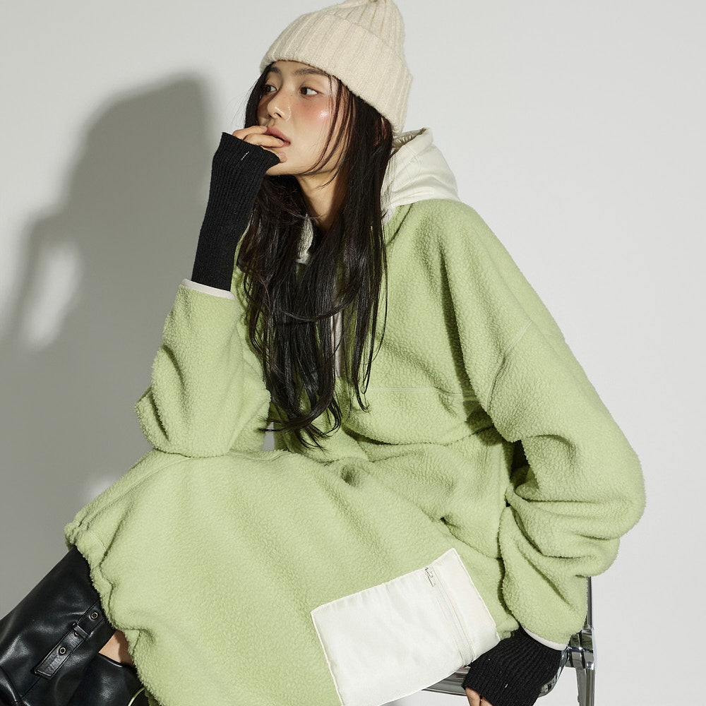 This spring fleece hooded top has a casual vibe.