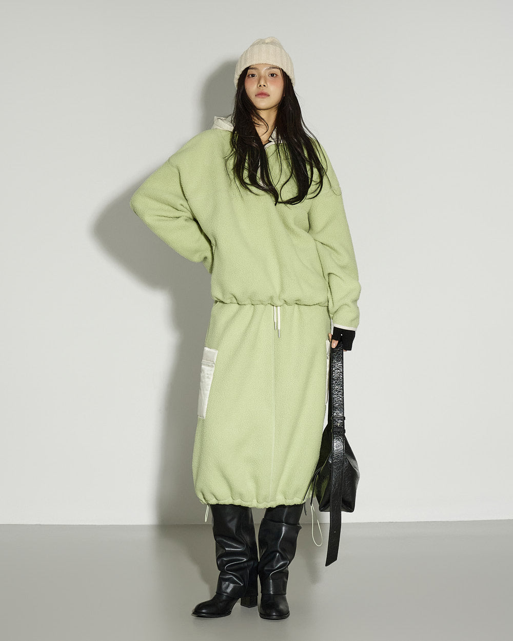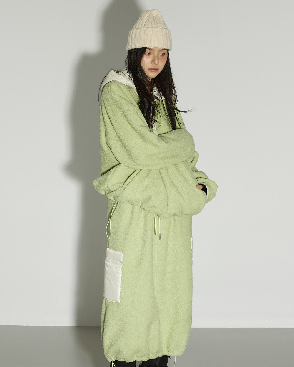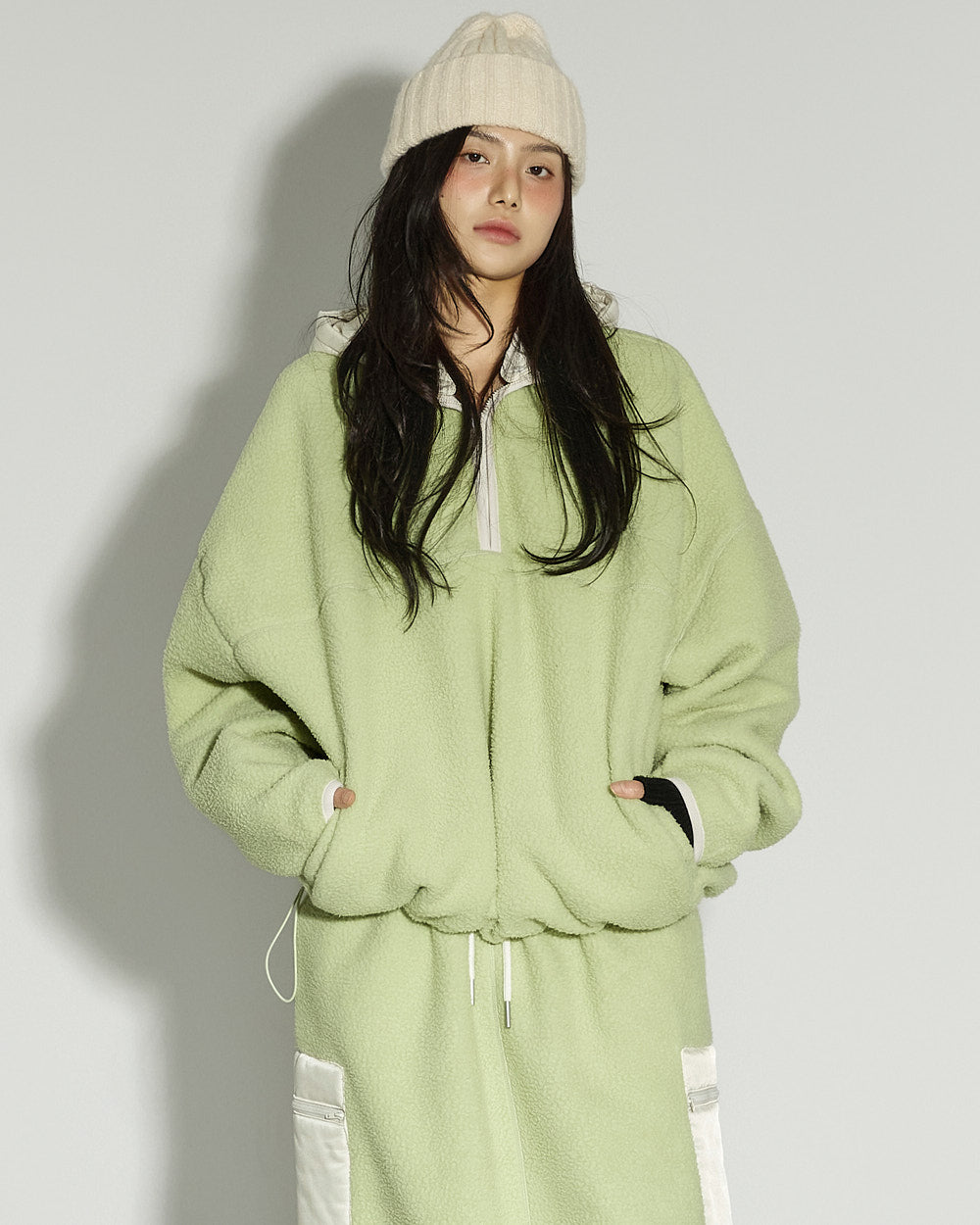 This spring fleece hooded top has a casual vibe.