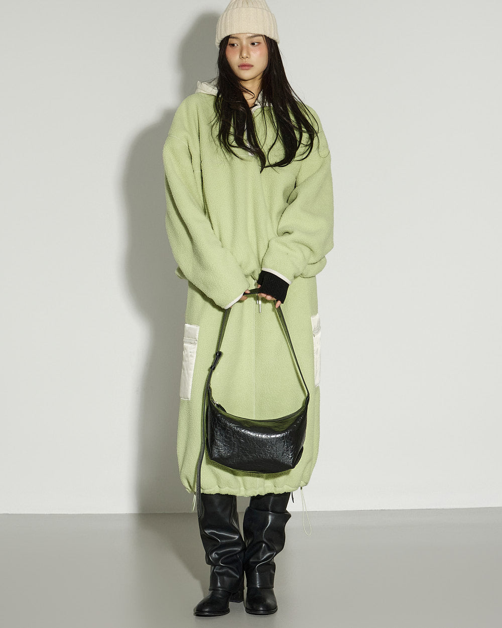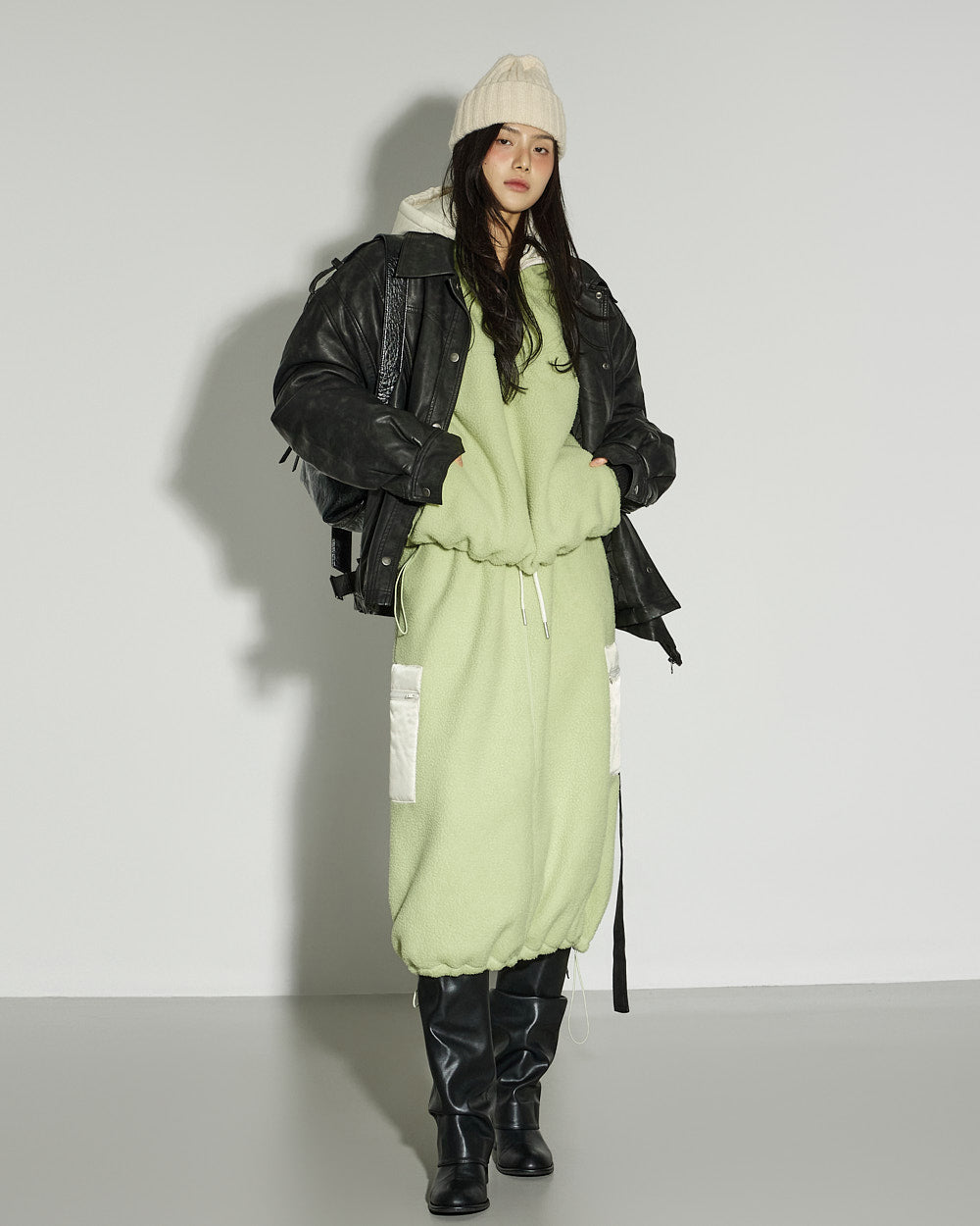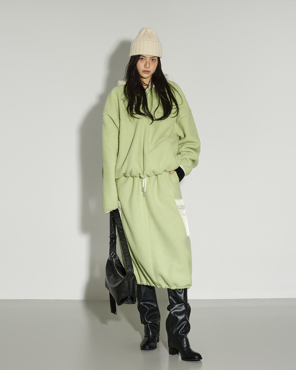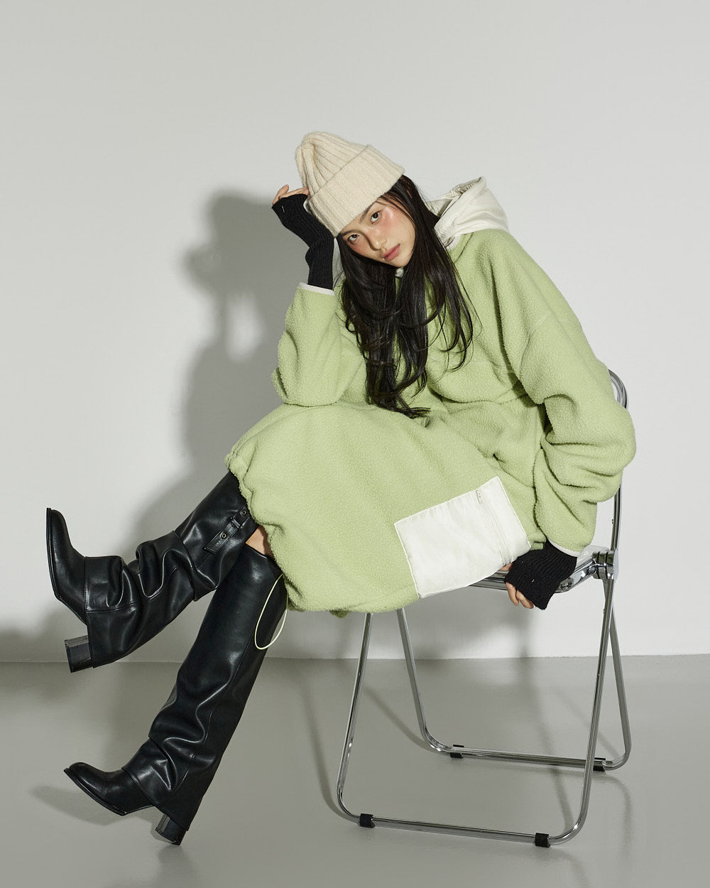 This spring fleece hooded top has a casual vibe.