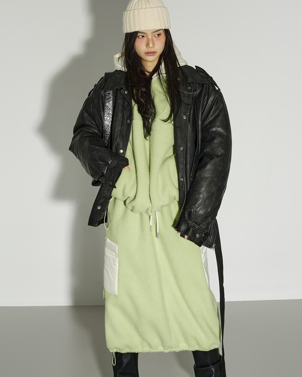 Denim (jeans, coated jeans) and other dark-dyed garments may experience color fading or transfer. Please take extra care before the first wash and while wearing them.