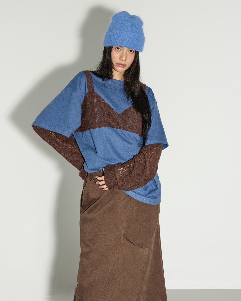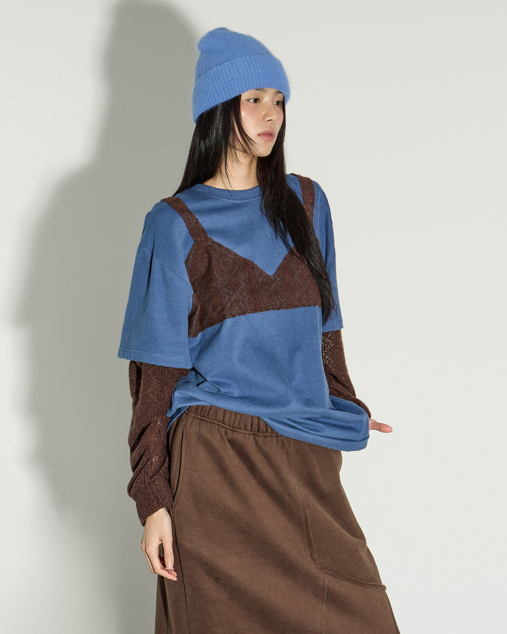 A unique bustier-layered top with a distinctive mood.