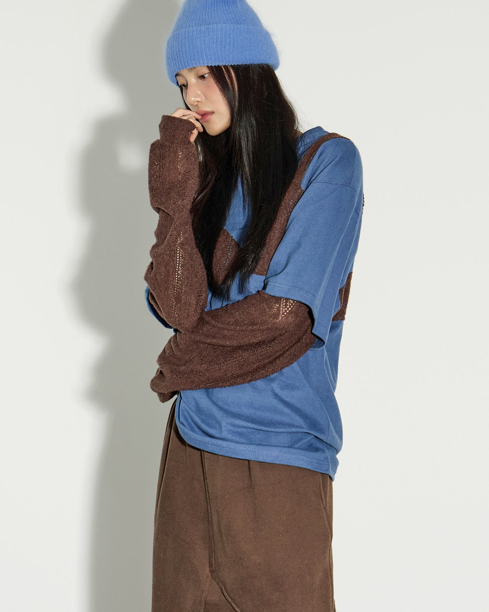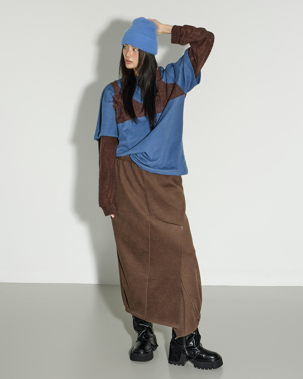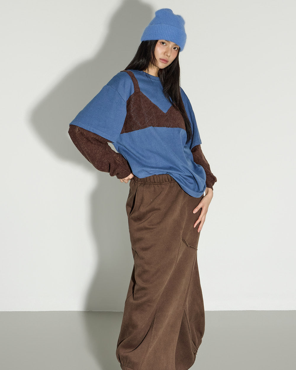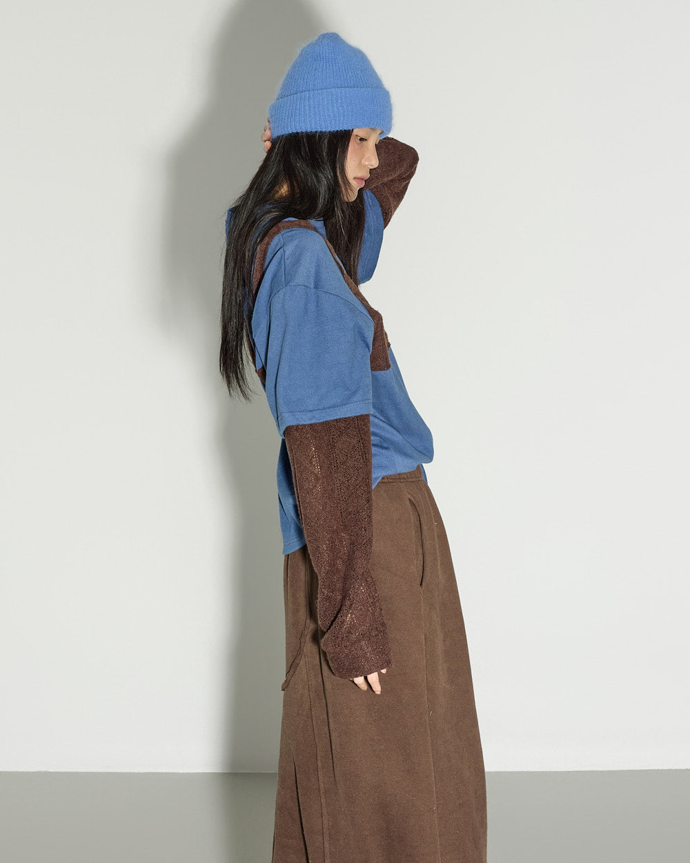 The model is 171cm tall and wears ONE size in Blue.