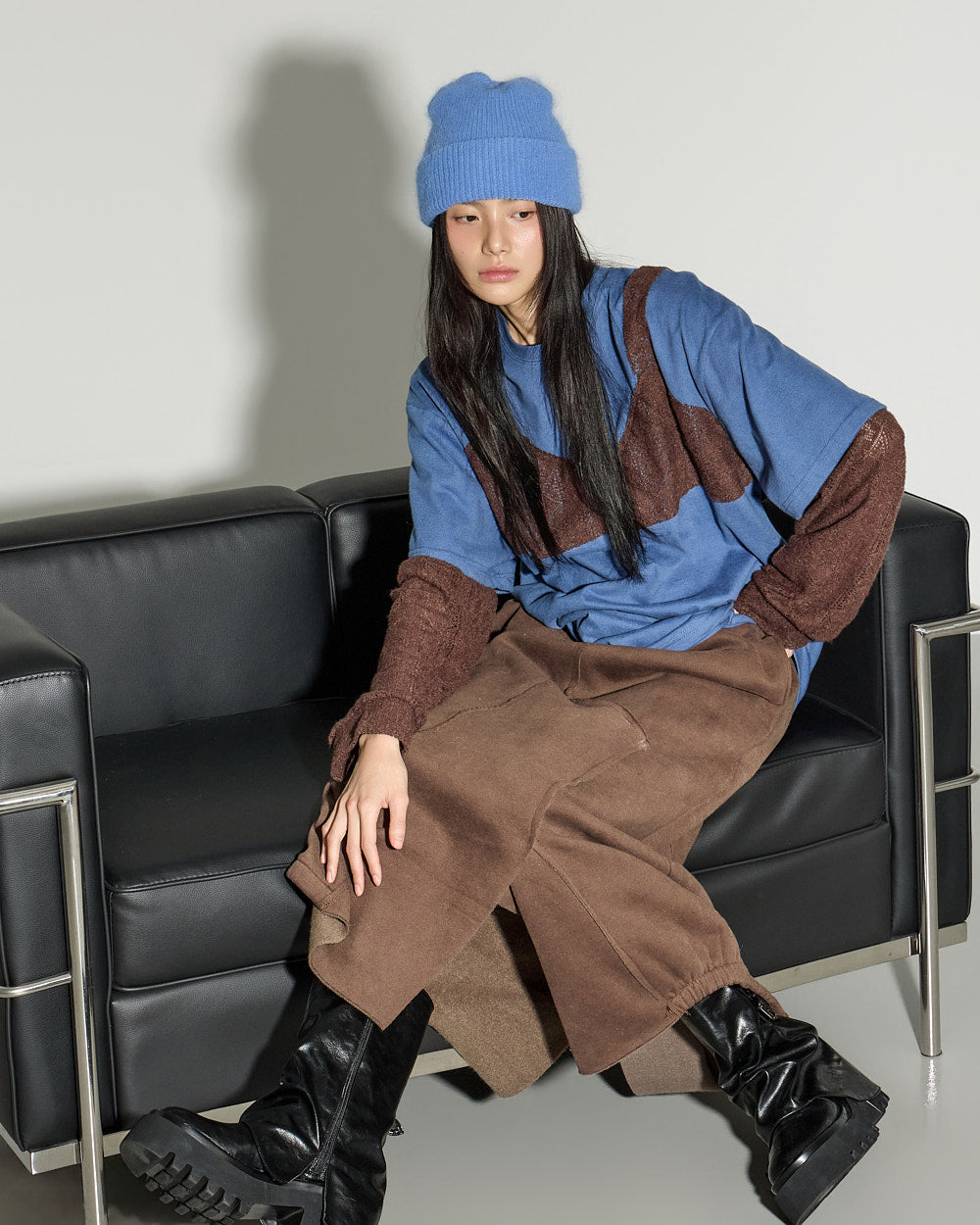 The bustier design, resembling a knit layer, adds a unique detail,