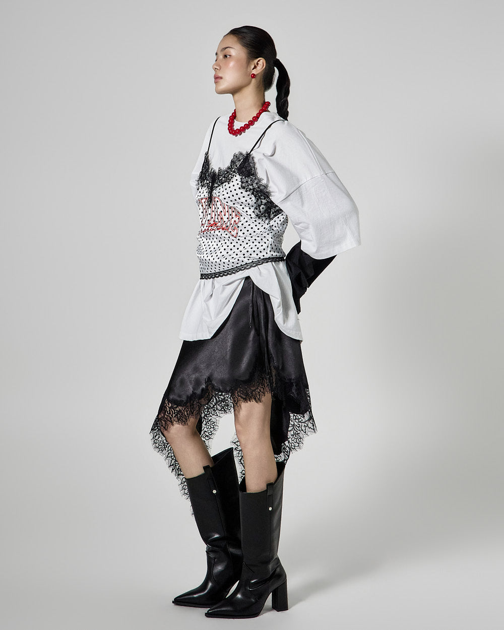 The 171cm model is wearing size ONE, color WHITE.