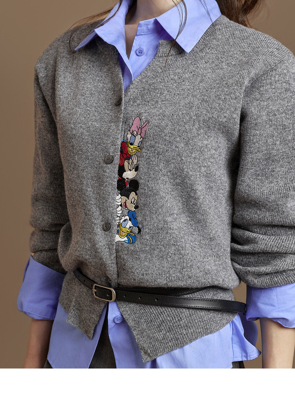 This cardigan features a unique design.