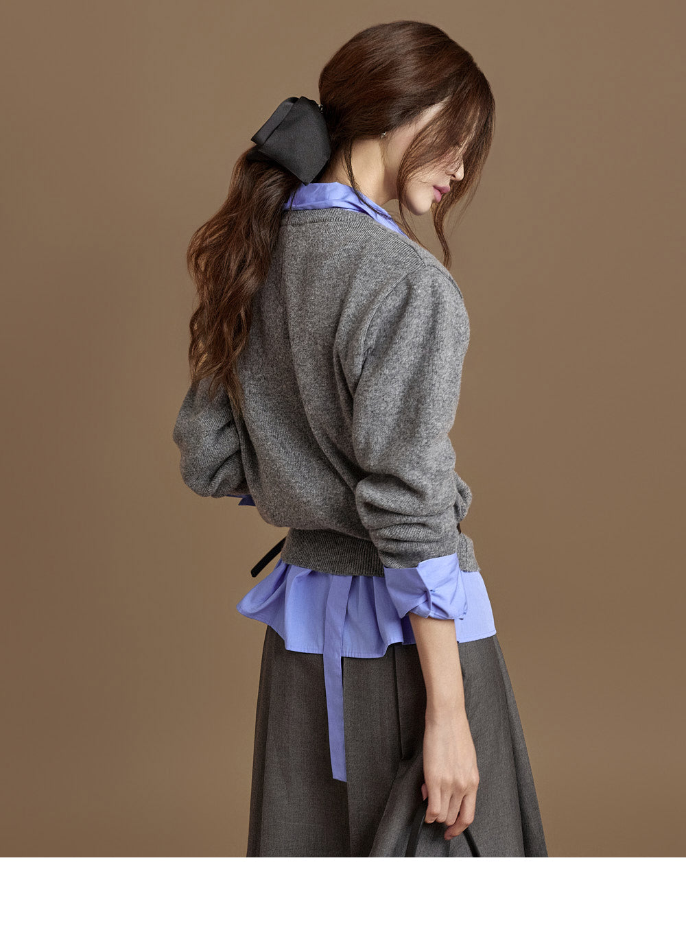 and the V-neckline naturally frames the face.