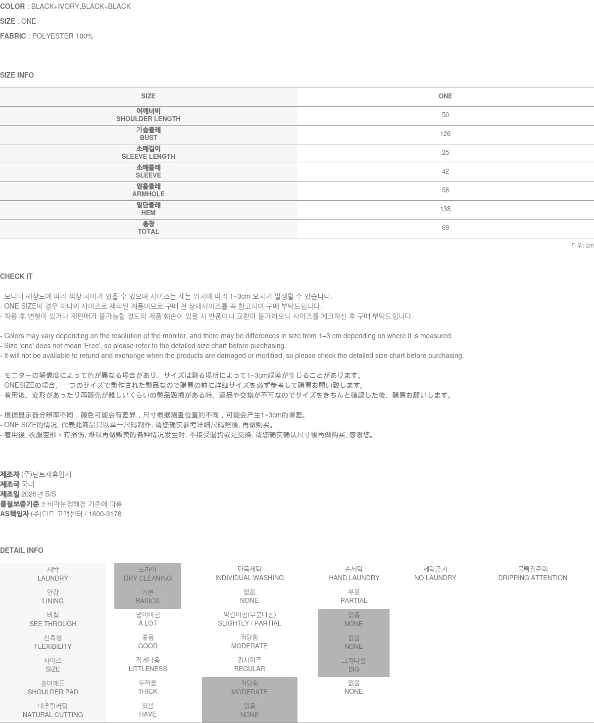 Model is 171CM, wearing ONE size in BLACK+IVORY.