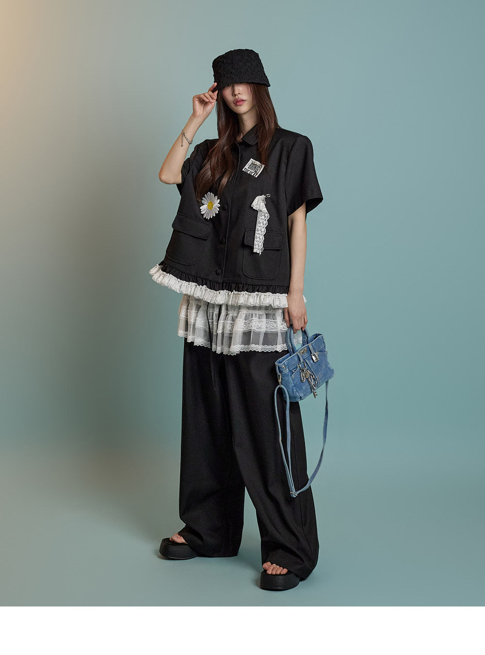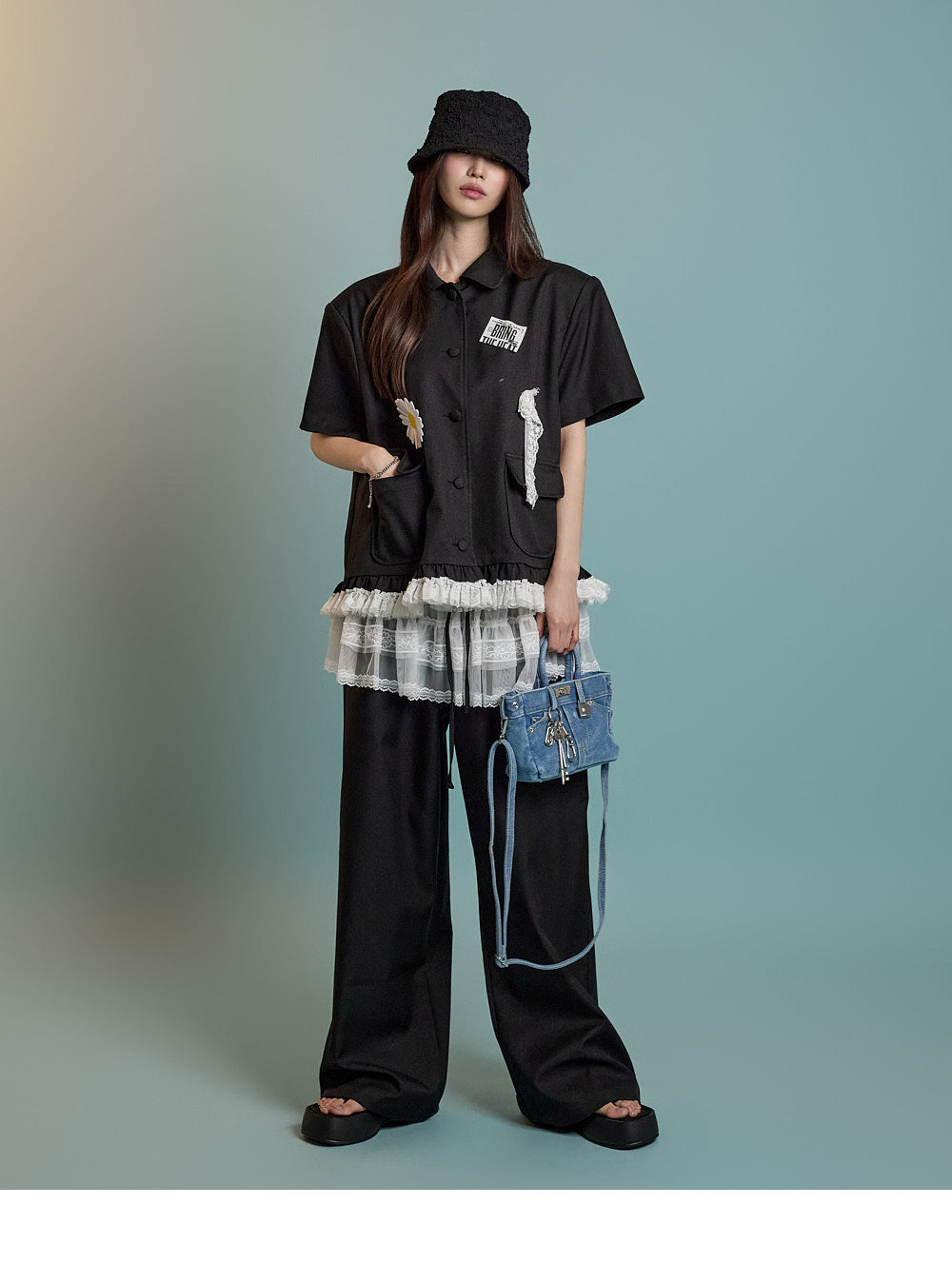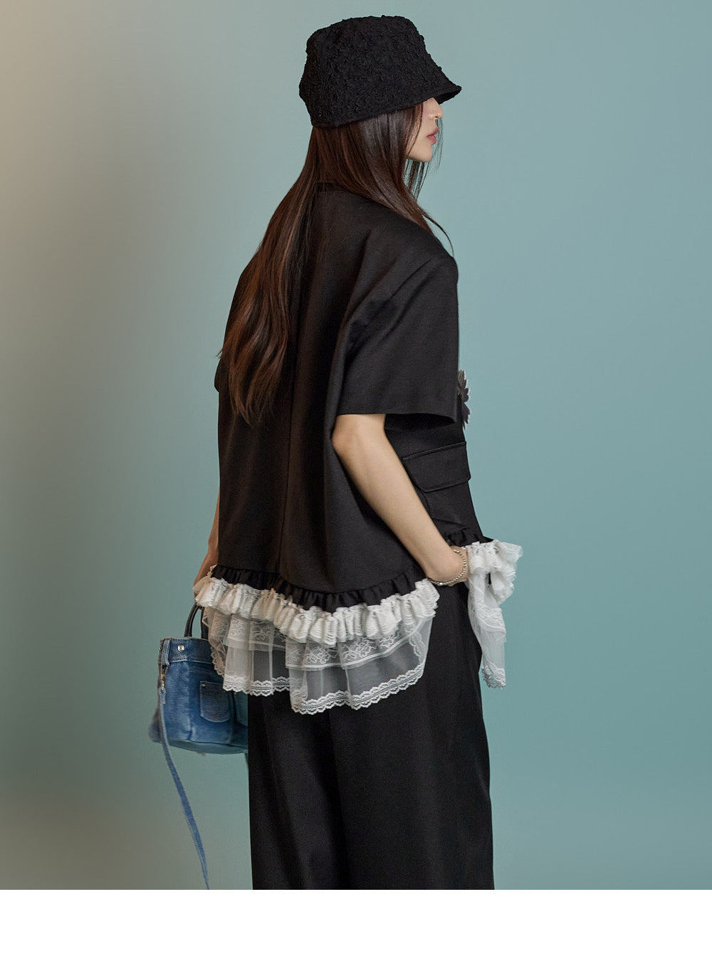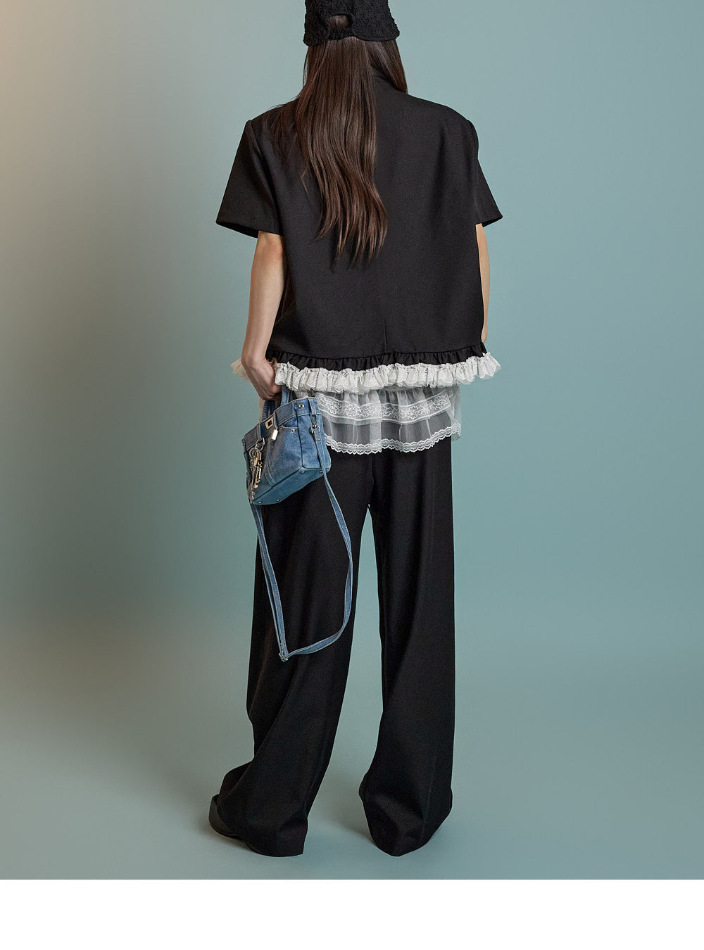 Frill lace detailing at the hem adds a unique touch to the dandy mood,