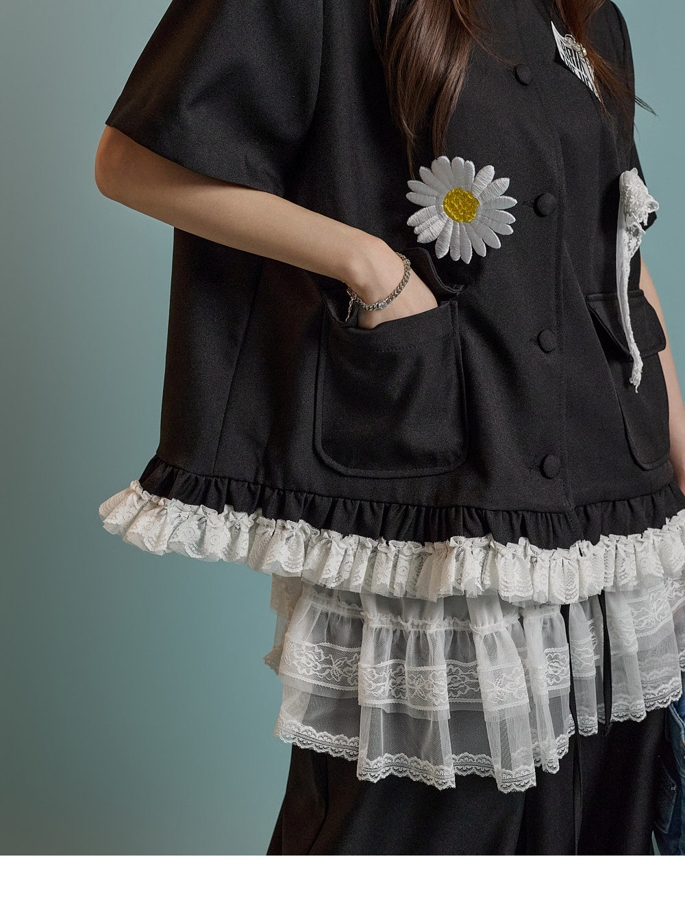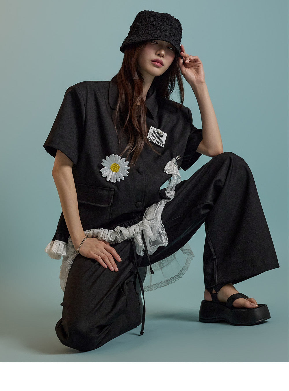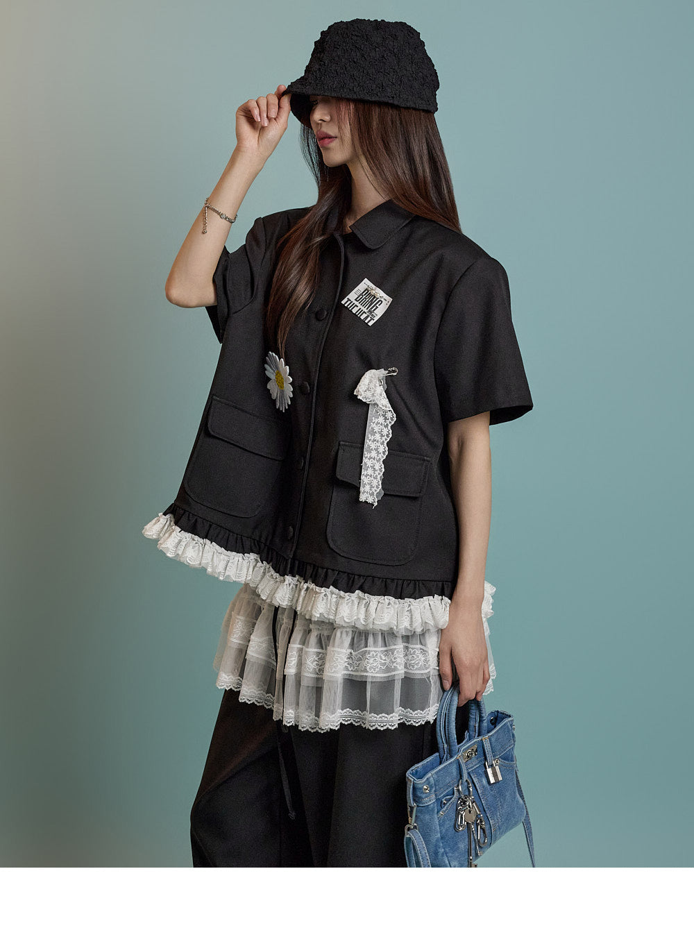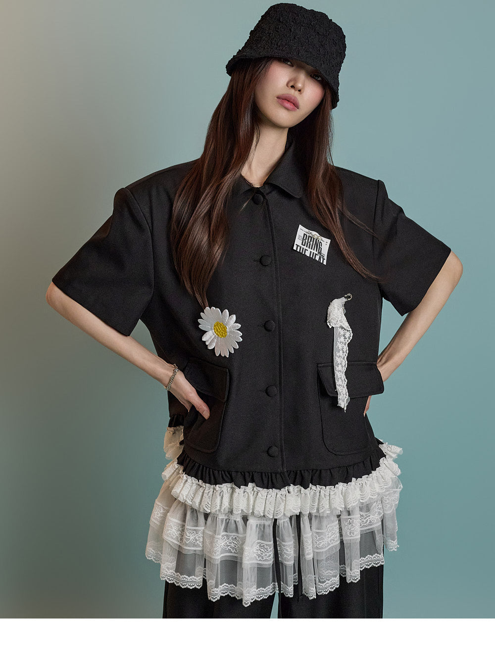Frill lace detailing at the hem adds a unique touch to the dandy mood,