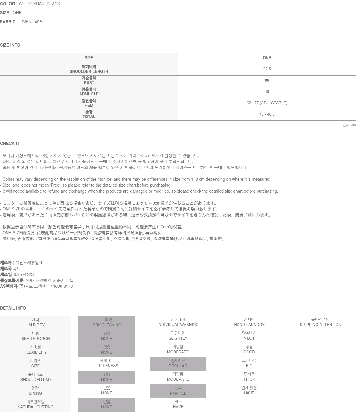Clothing from DINT Co., Ltd. may become damaged or deformed if machine washed or tumble dried. We strongly recommend following the care instructions provided below.