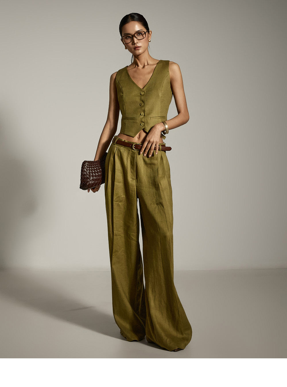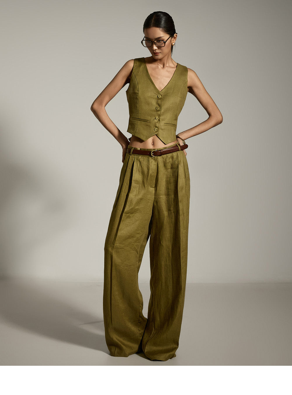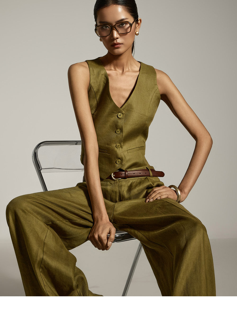 The model is 173cm tall and is wearing ONE size in KHAKI.