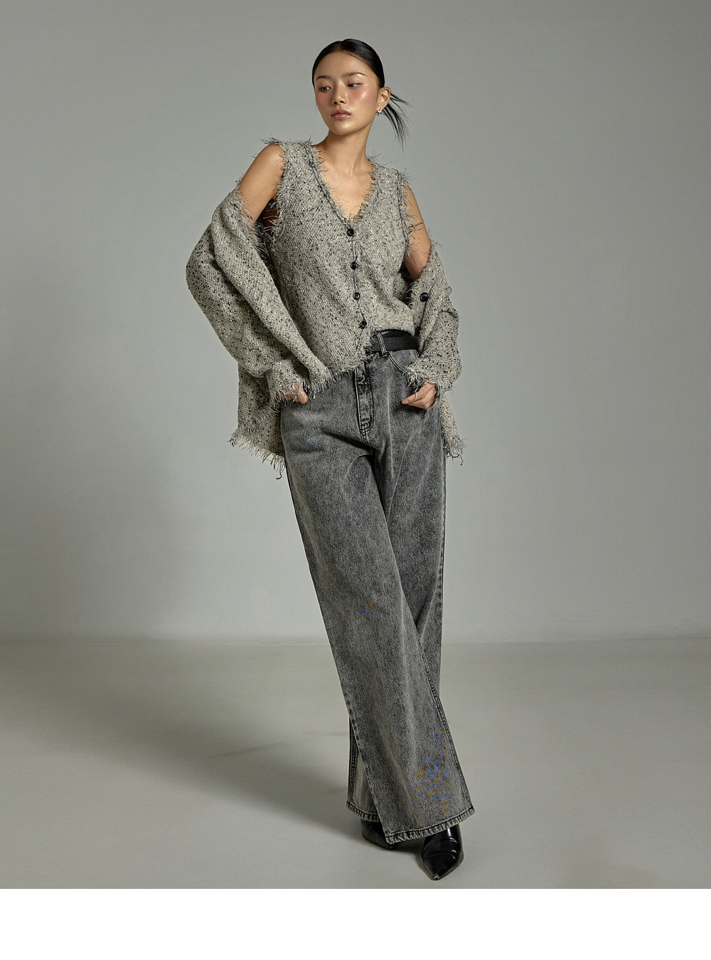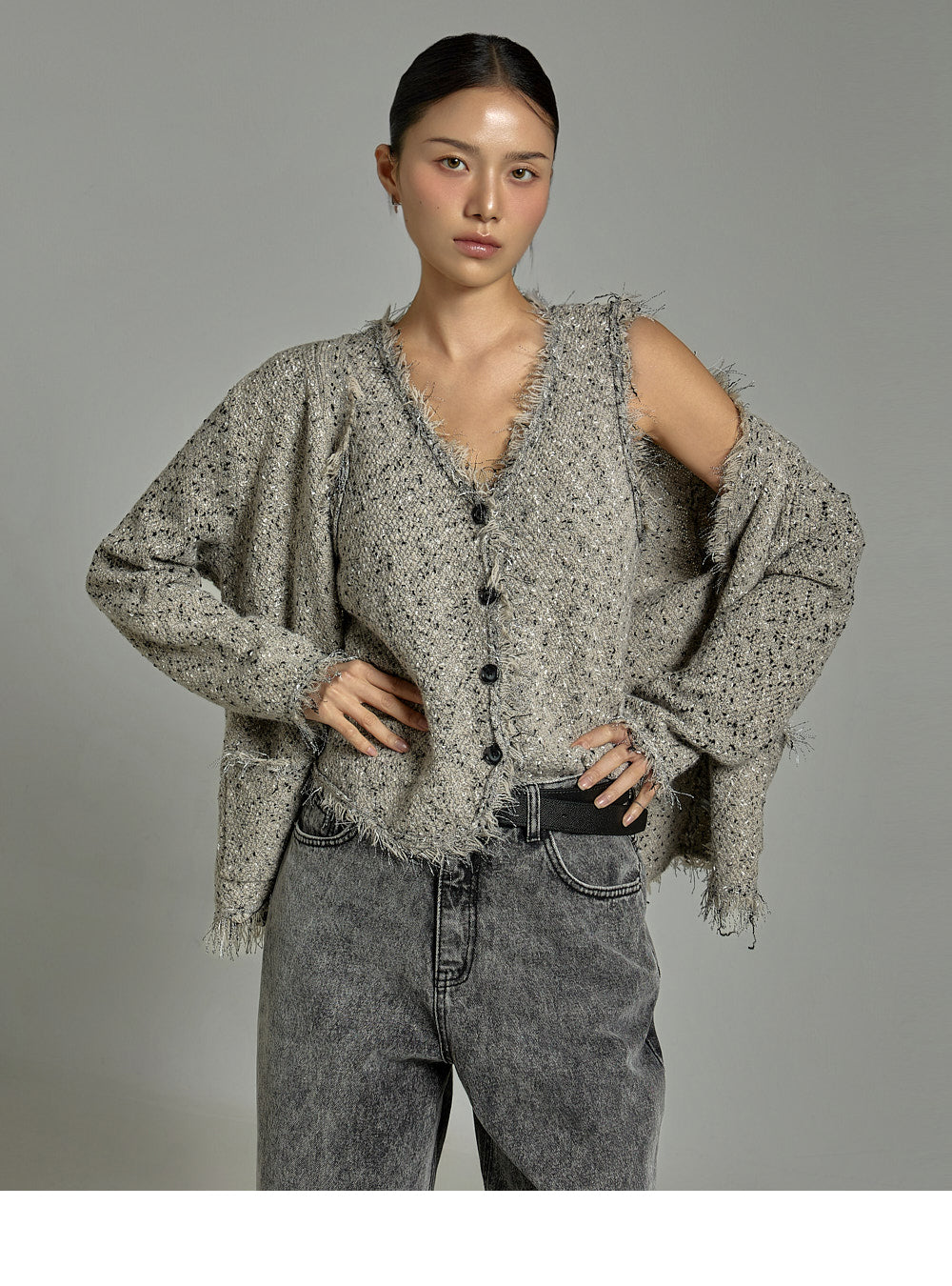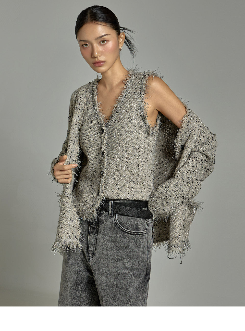 This casual vest cardigan set is a stylish addition to any outfit.