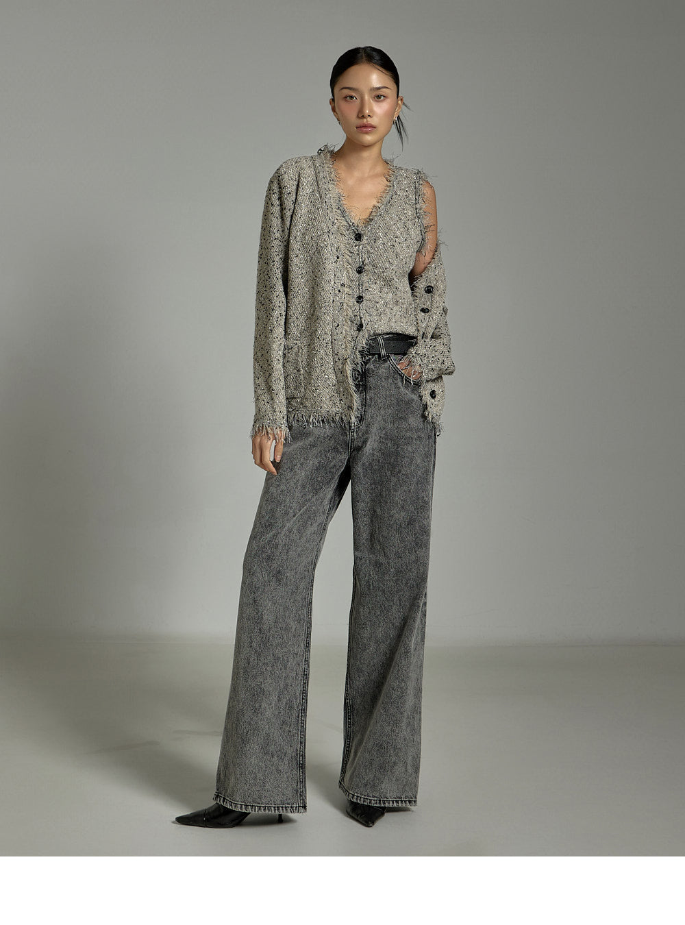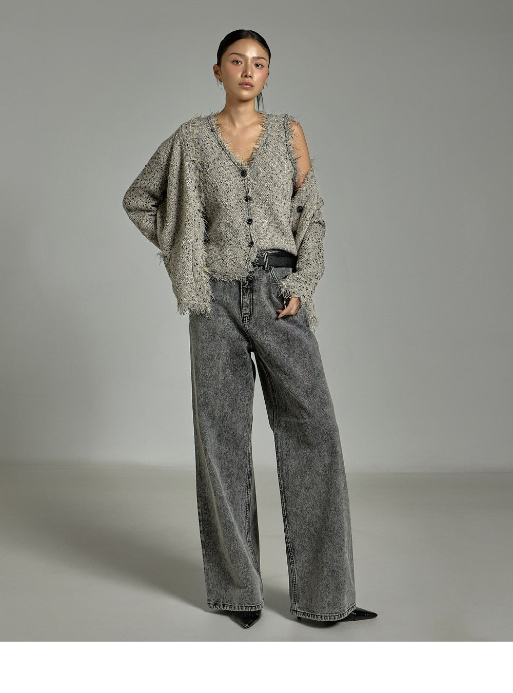 The model is 171cm tall and is wearing size ONE in GRAY.