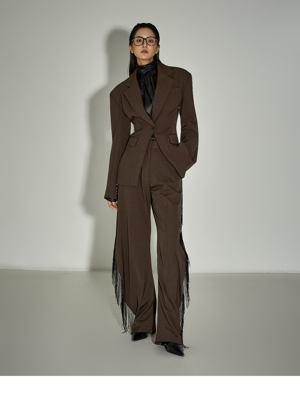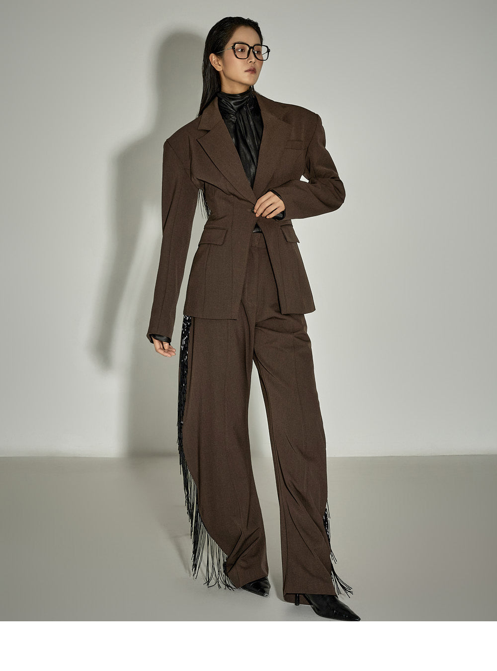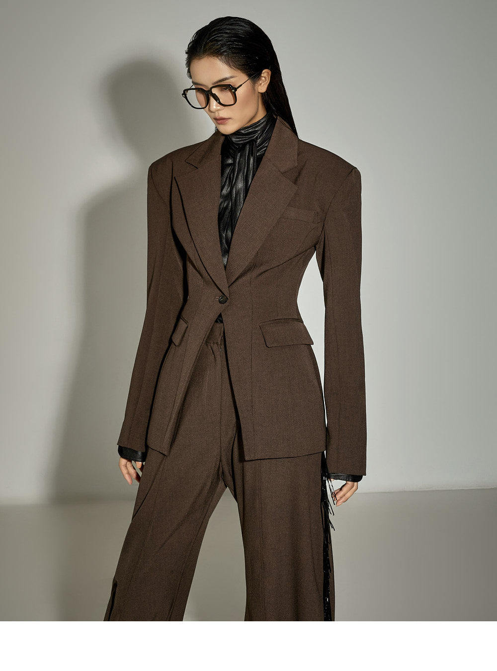 With moderate shoulder pads and a slim fit that hugs the waist,