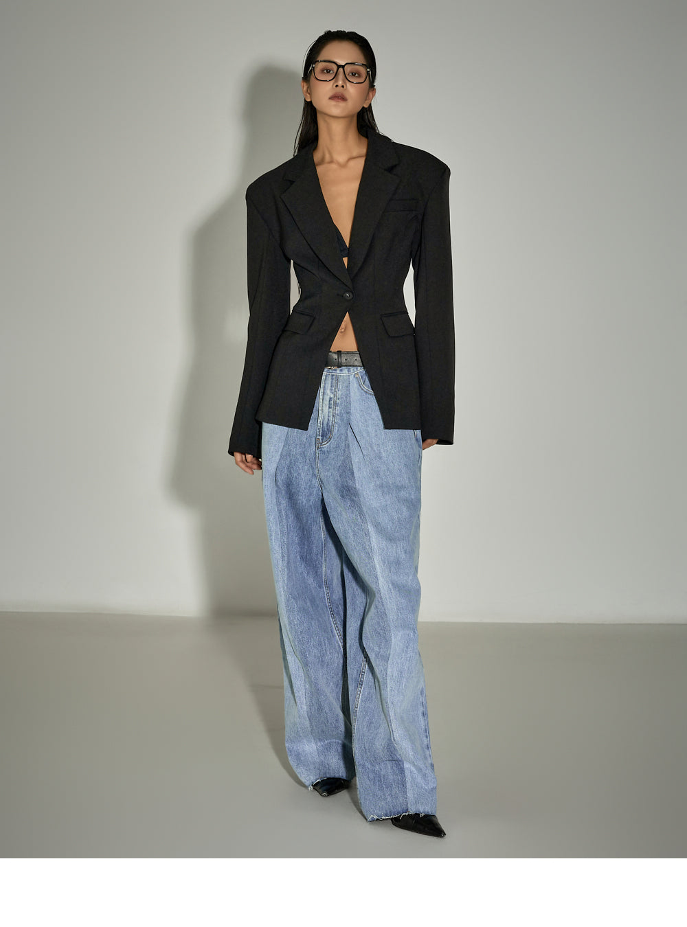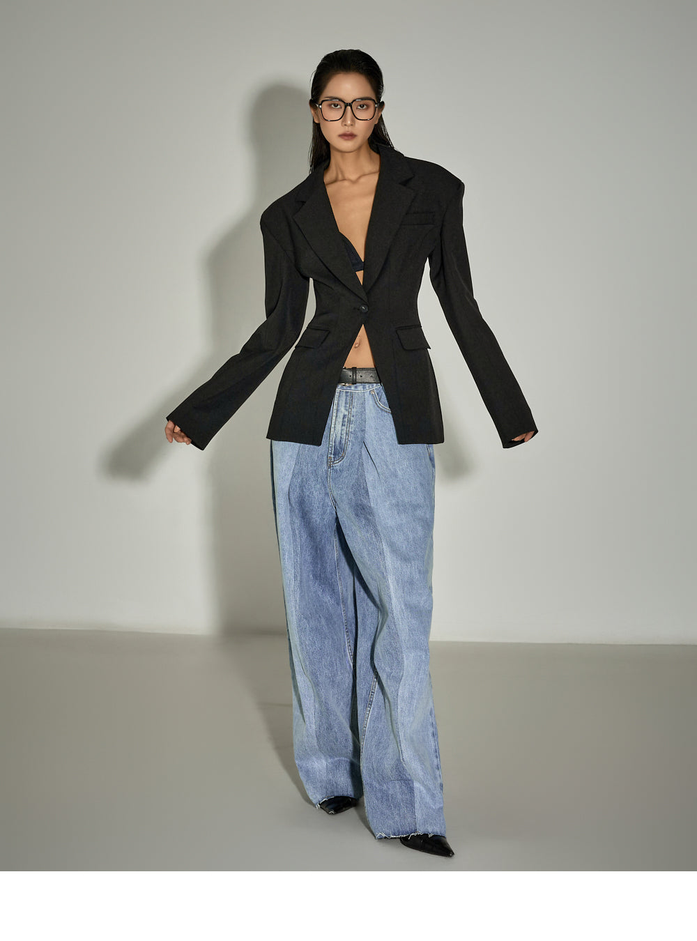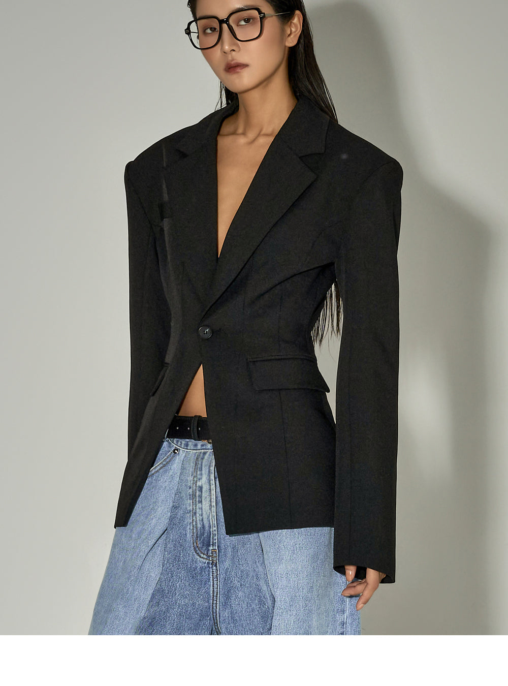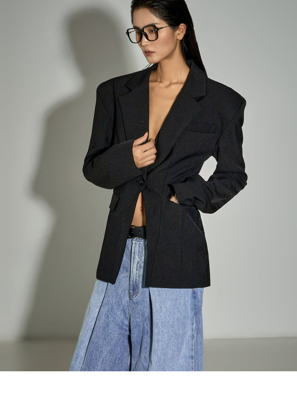 With moderate shoulder pads and a slim fit that hugs the waist,