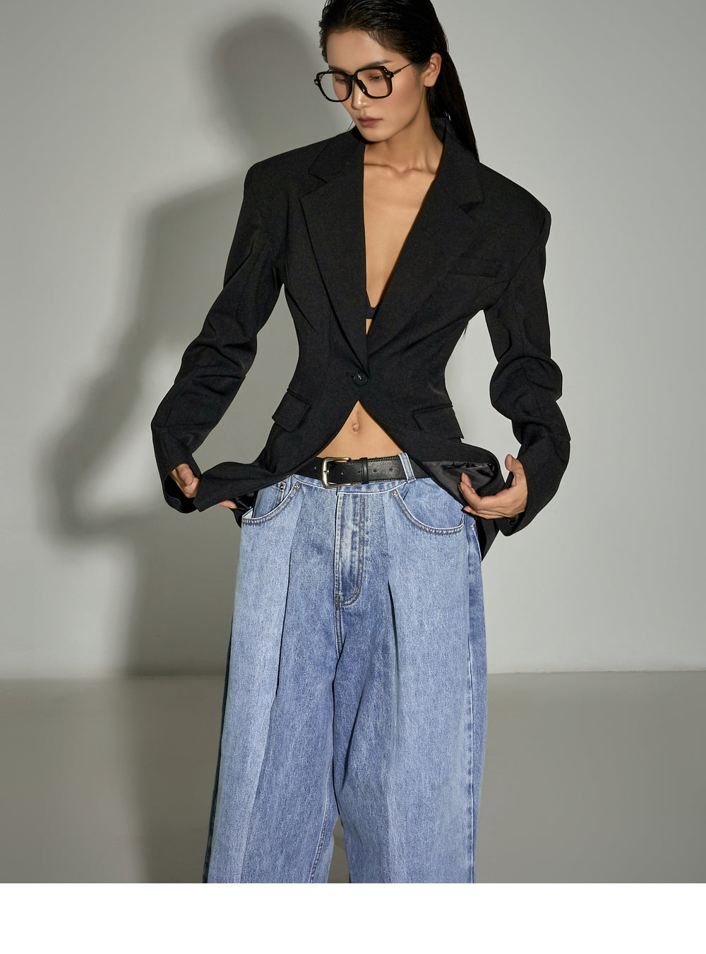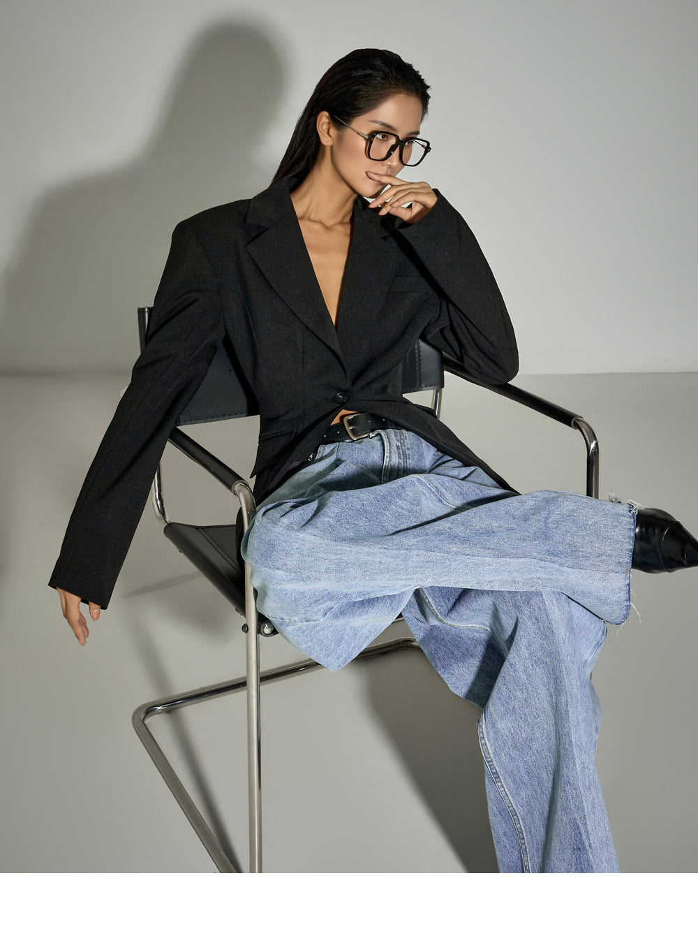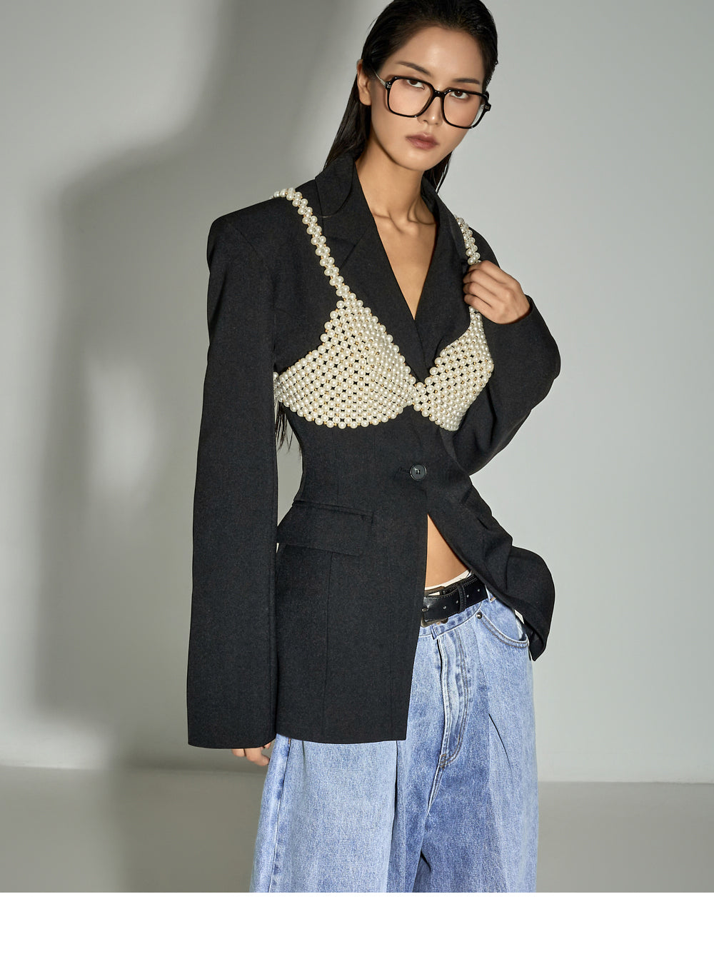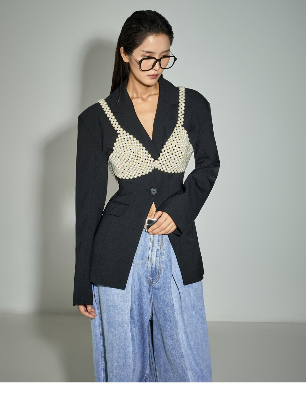 With moderate shoulder pads and a slim fit that hugs the waist,