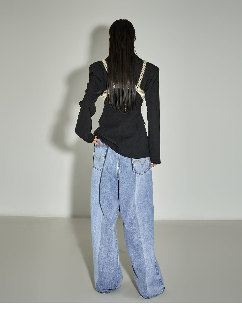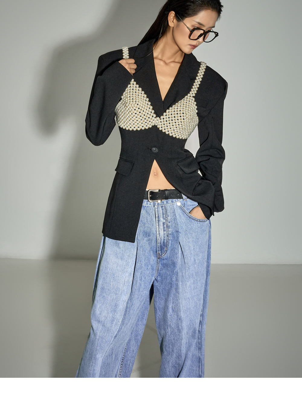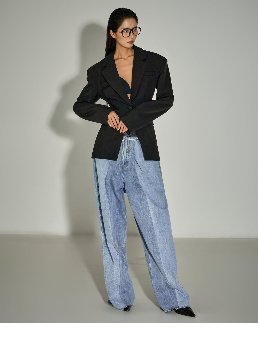 Denim (jeans, coated jeans) and other dark-dyed garments may experience color fading or transfer. Please take extra care before the first wash and while wearing them.