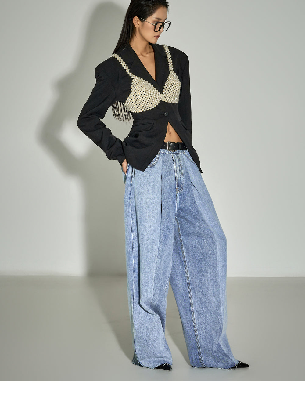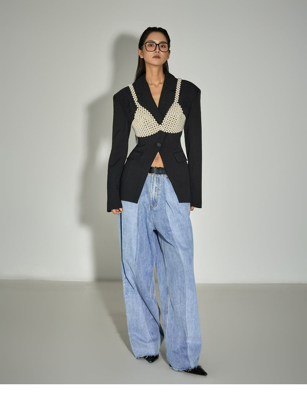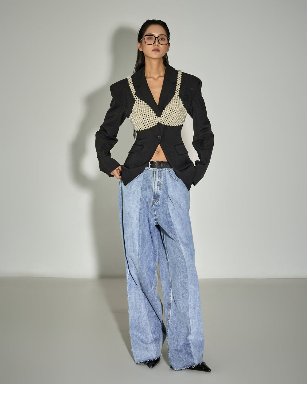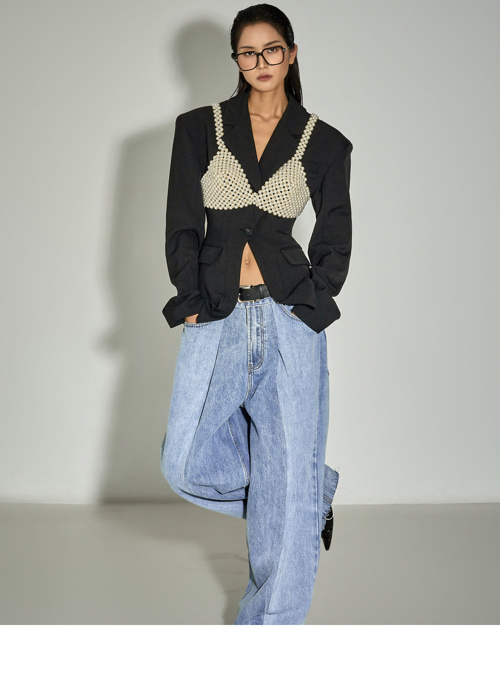 Denim (jeans, coated jeans) and other dark-dyed garments may experience color fading or transfer. Please take extra care before the first wash and while wearing them.