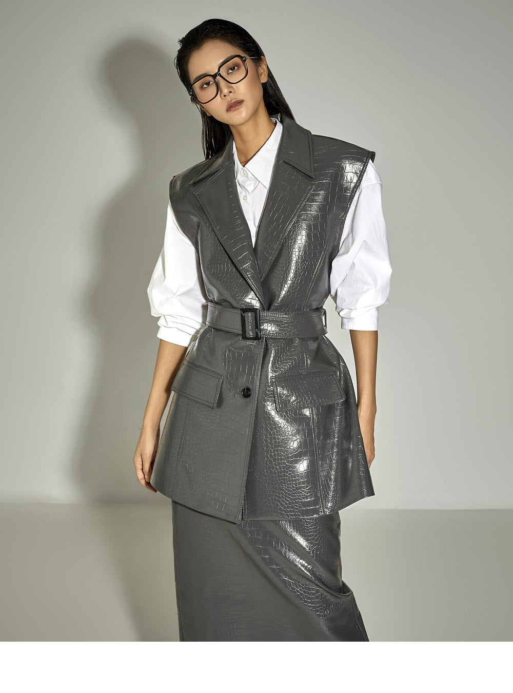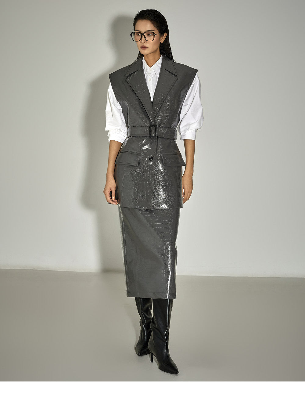 it features a structured silhouette with a subtle, sophisticated sheen for an elevated look.
