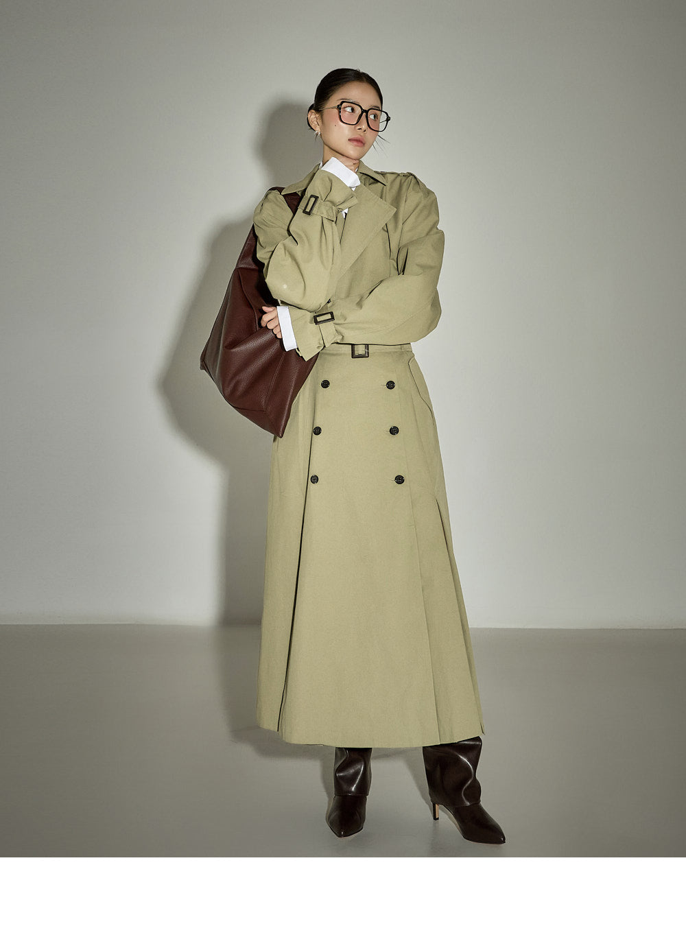 The 171cm model is wearing size ONE in the KHAKI color.