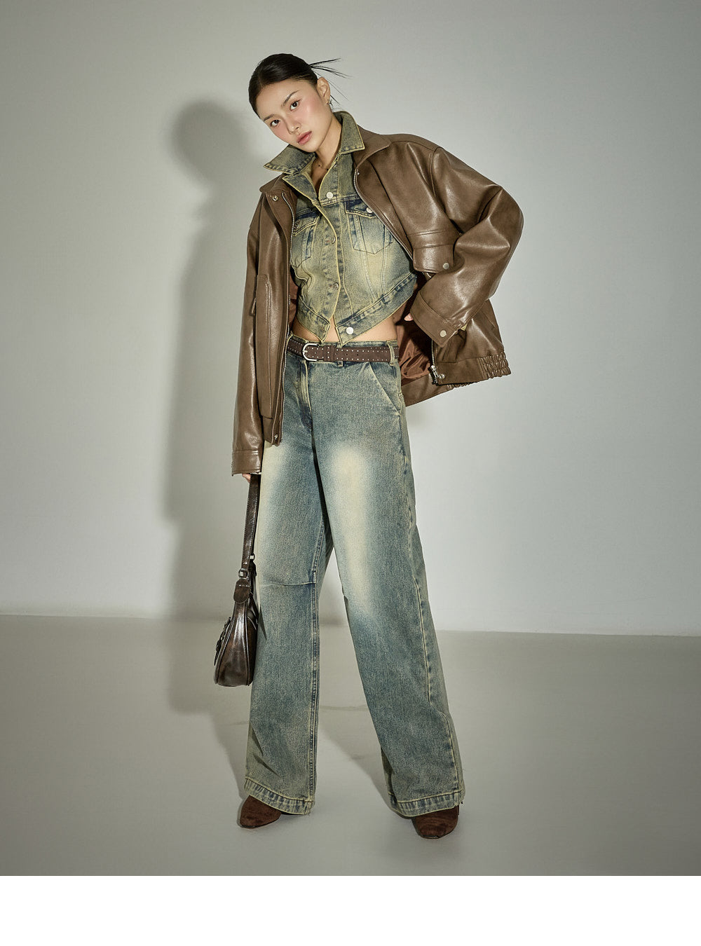 Denim (jeans, coated jeans) and other dark-dyed garments may experience color fading or transfer. Please take extra care before the first wash and while wearing them.