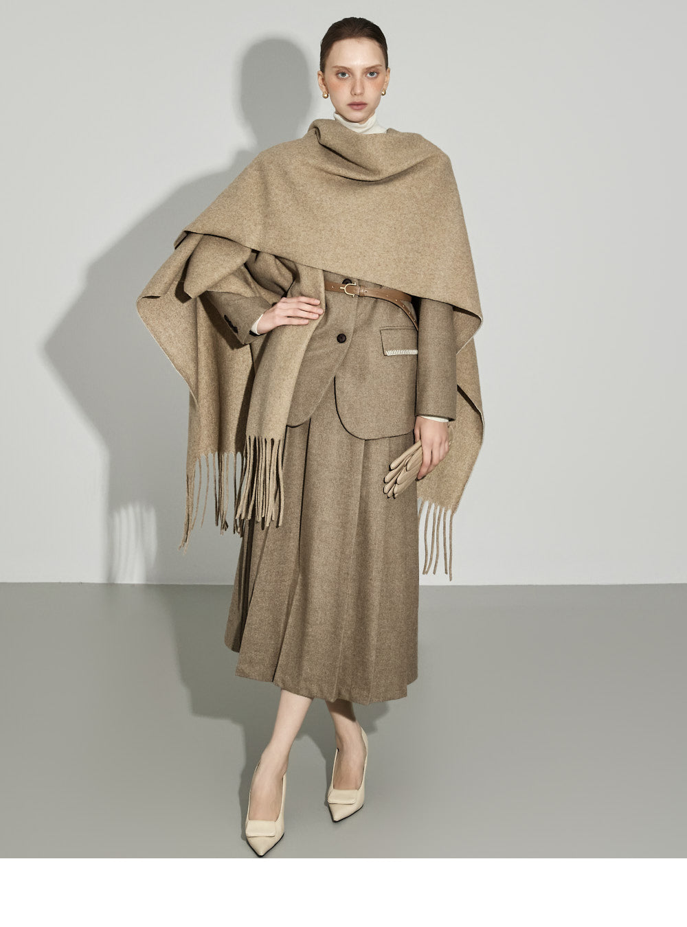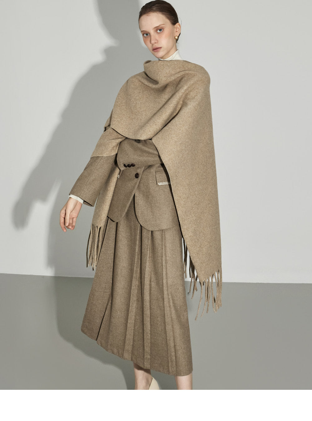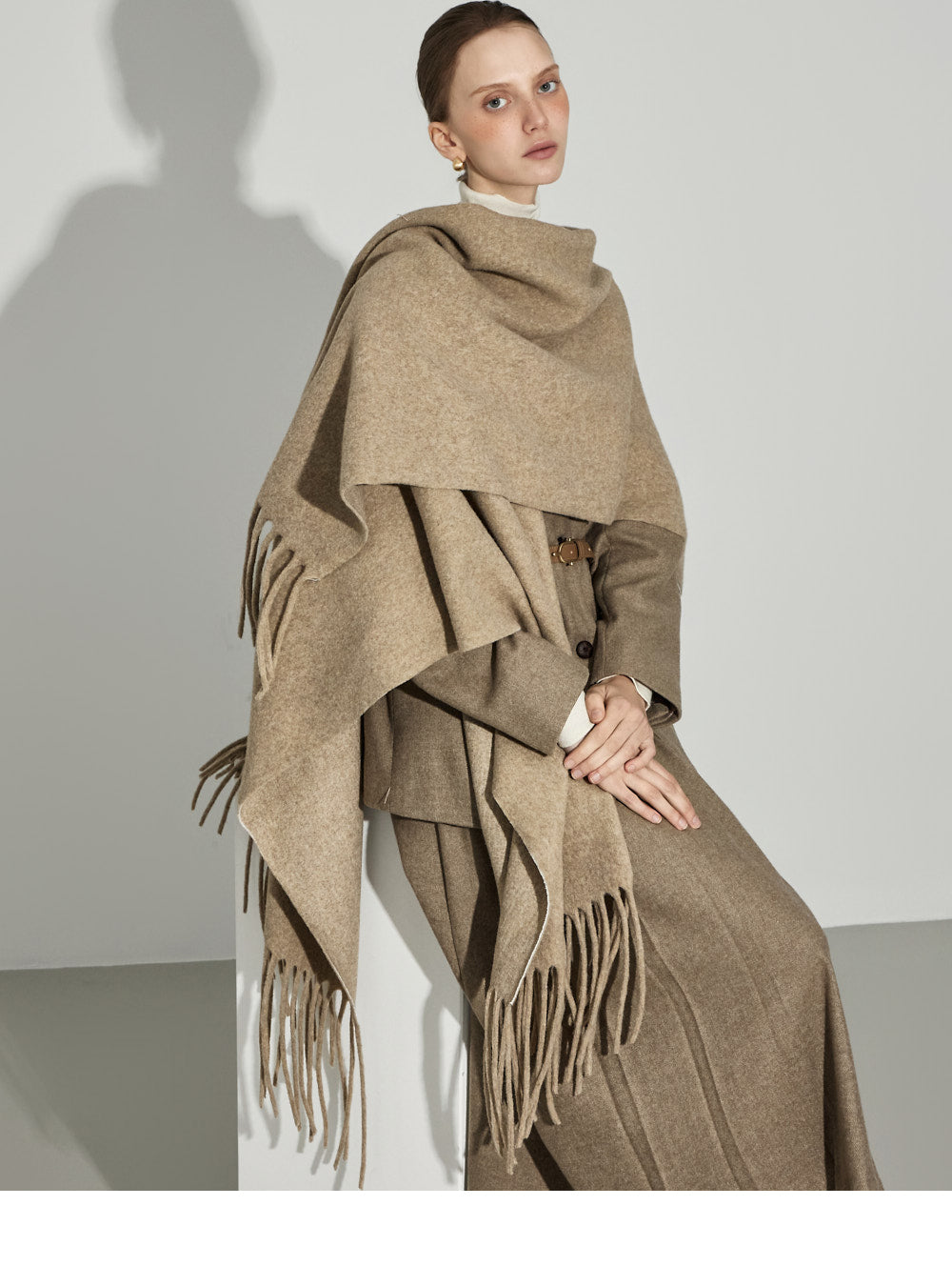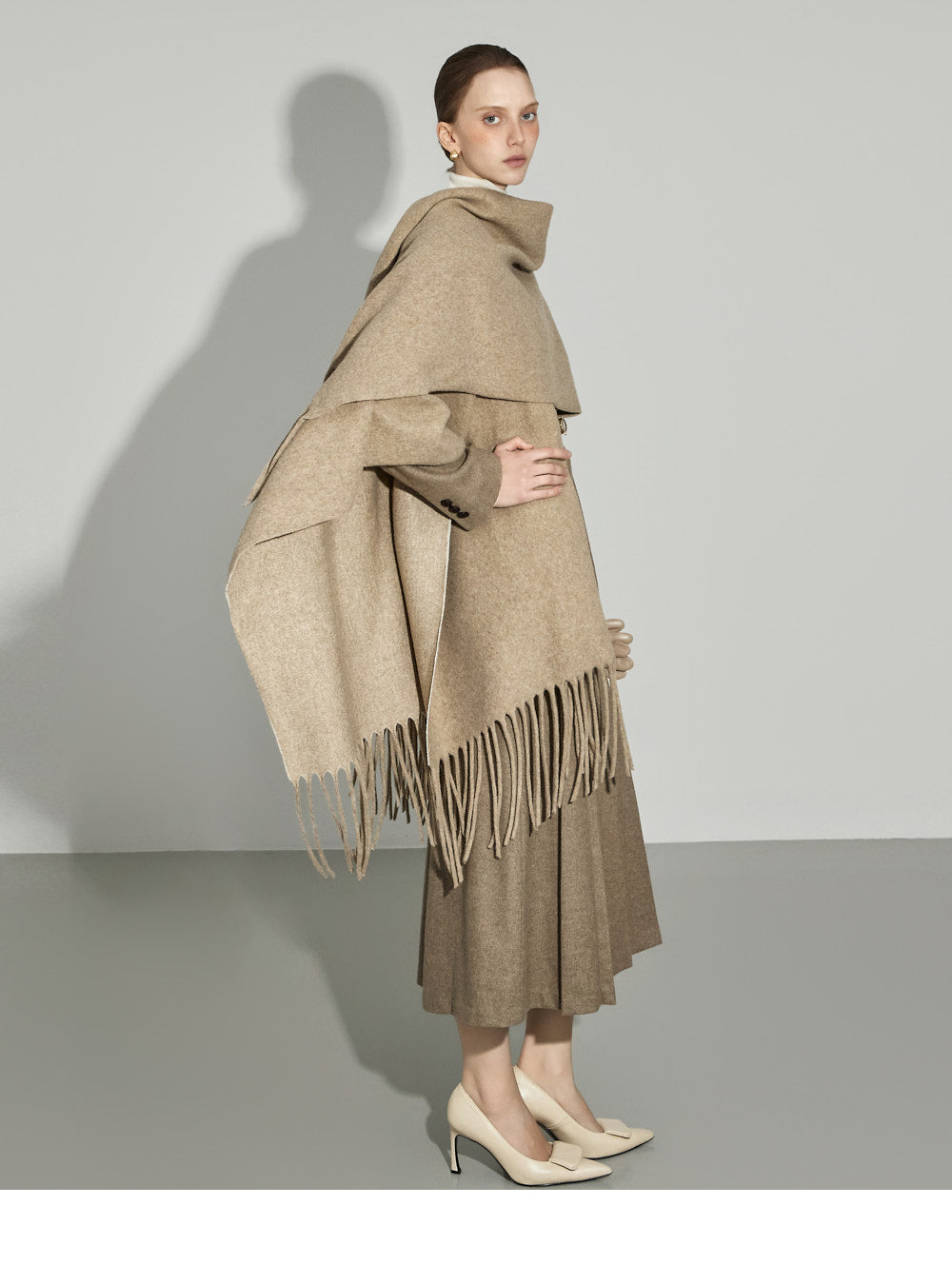 The 174cm model is wearing size ONE in BEIGE.