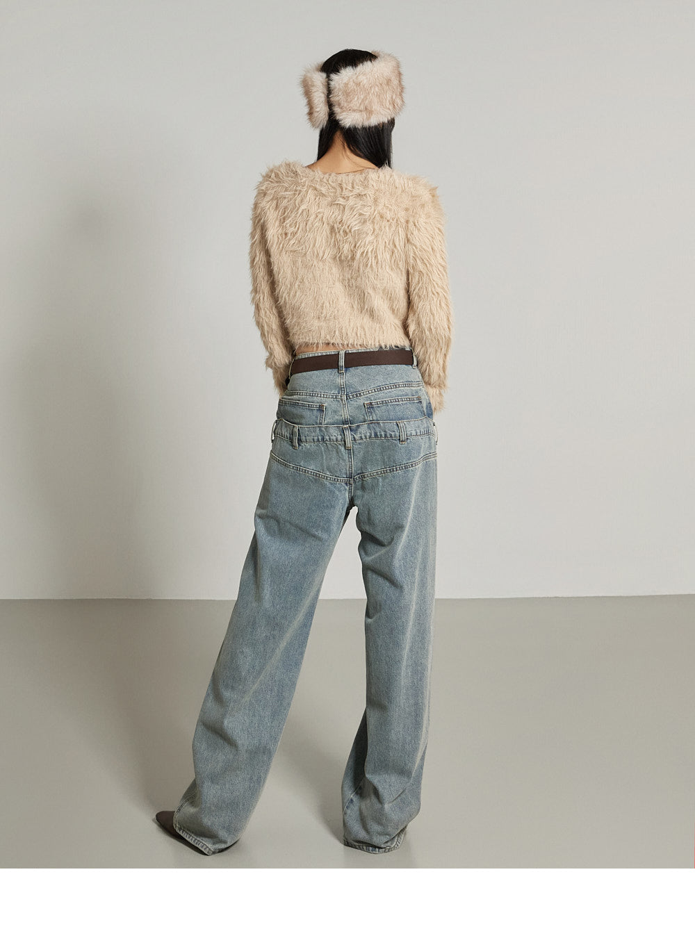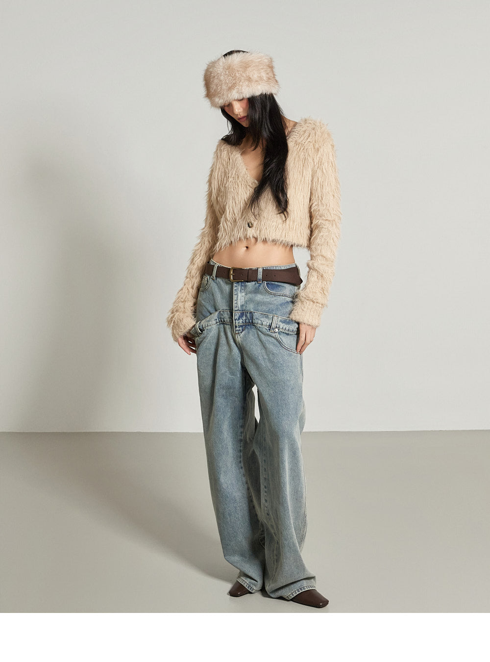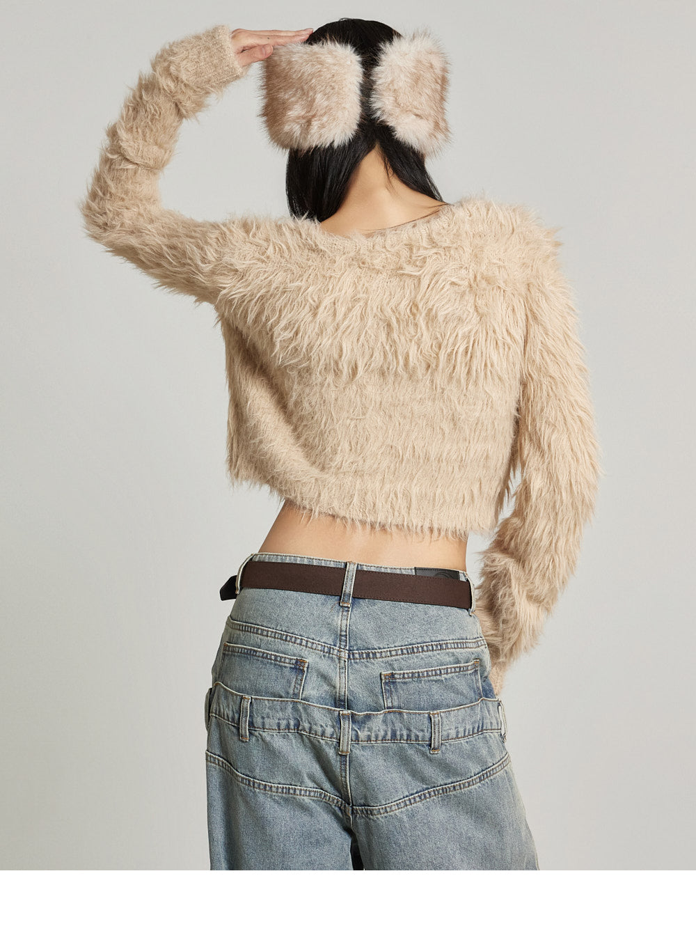 This fur crop cardigan exudes a casual vibe.