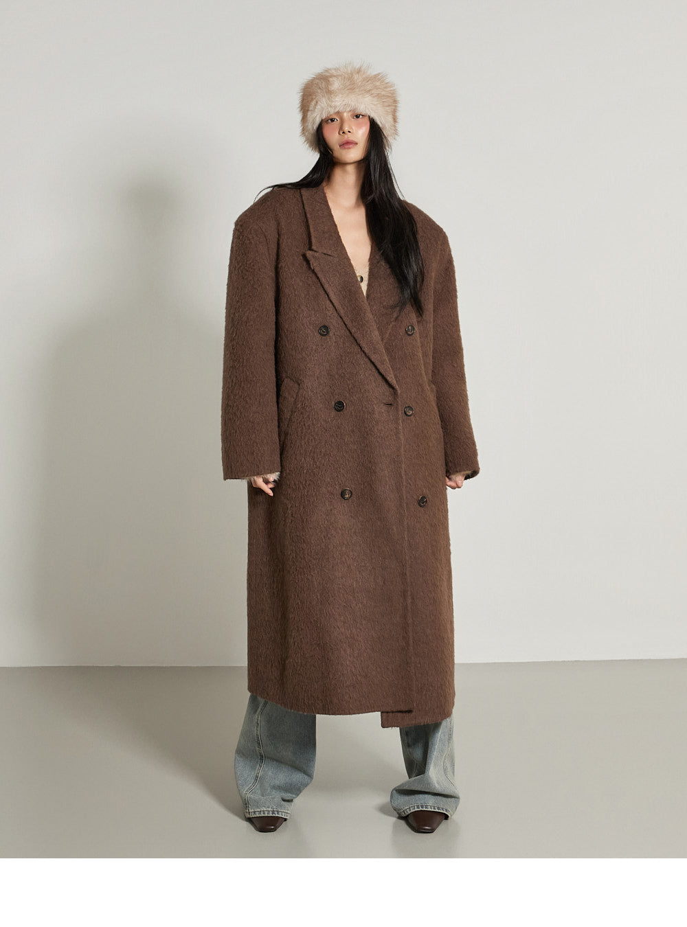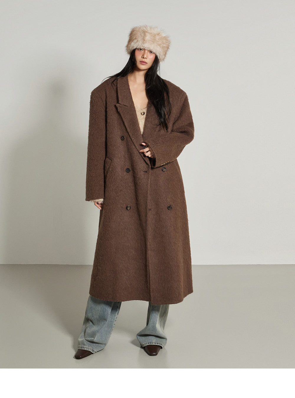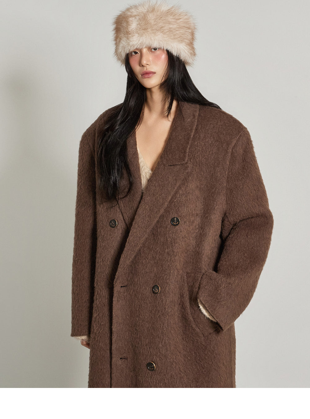 The nylon material is blended with angora texture, creating a soft and cozy feel.