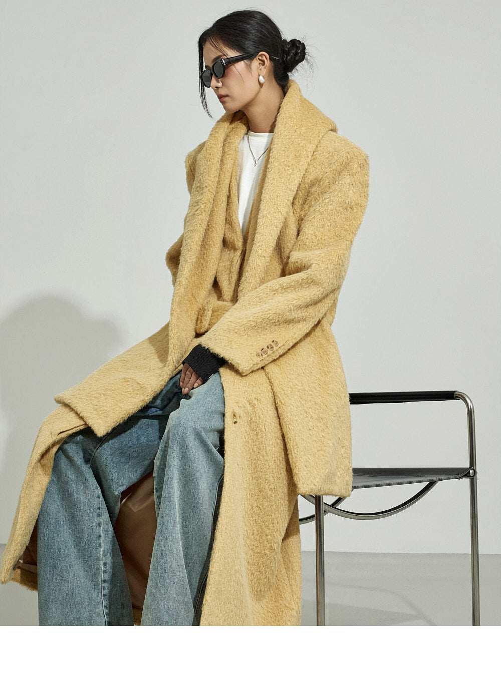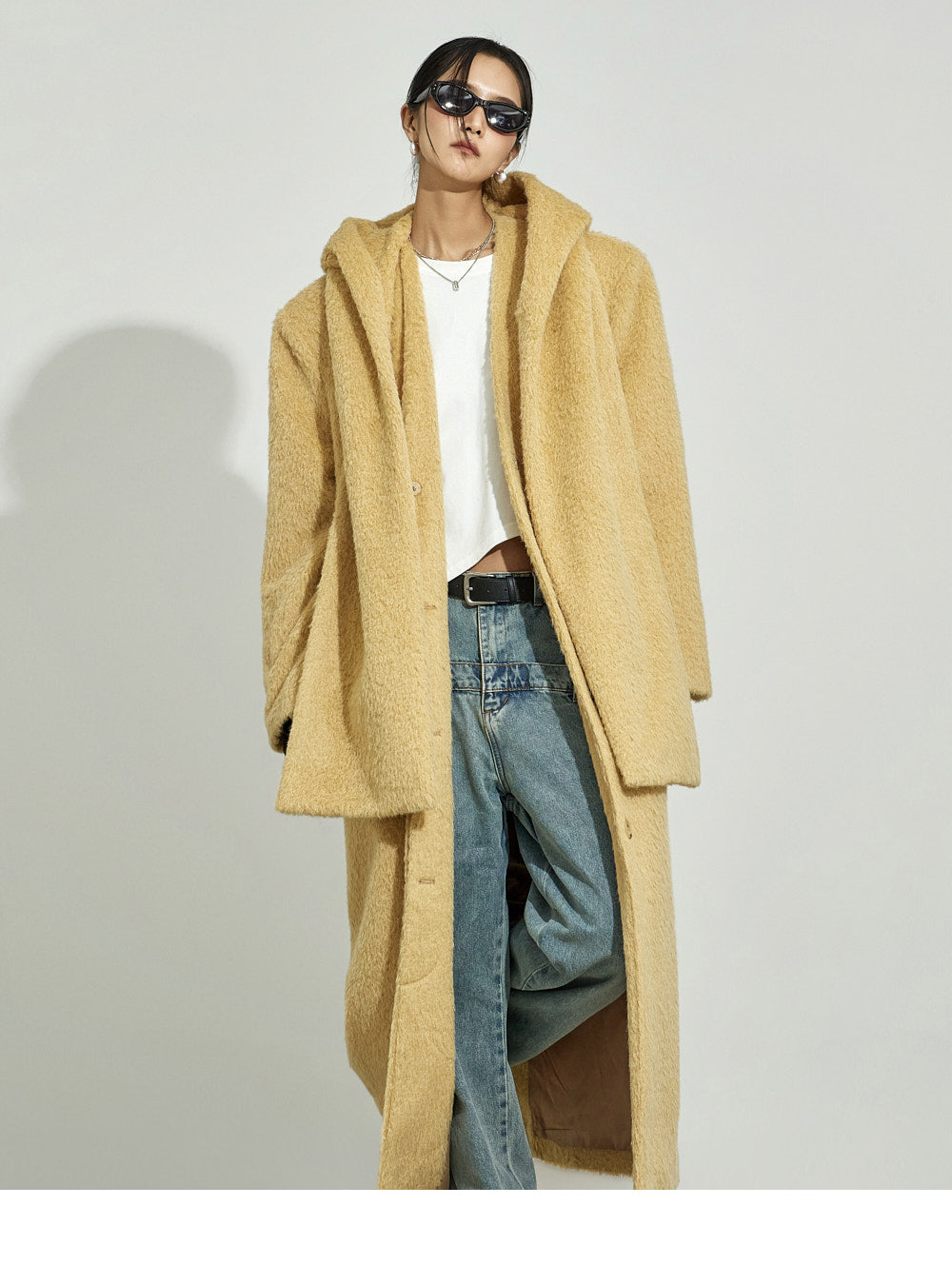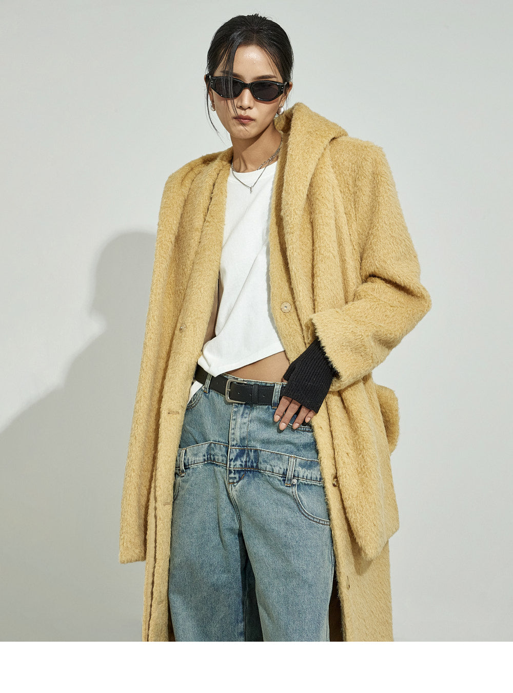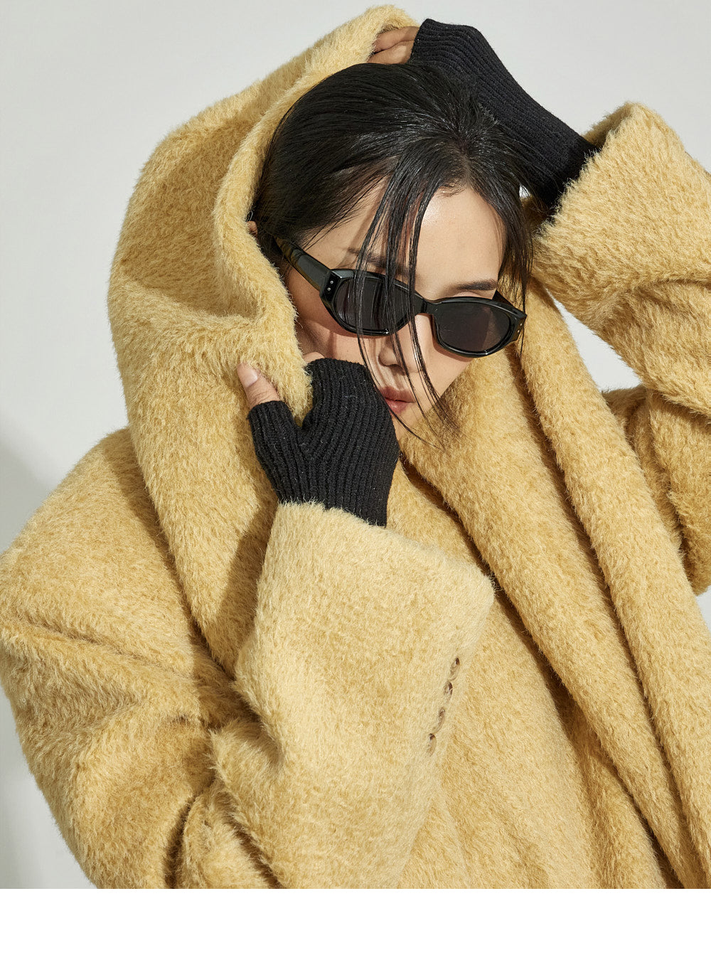 it offers a durable and warm feel, and its loose fit creates a relaxed silhouette.