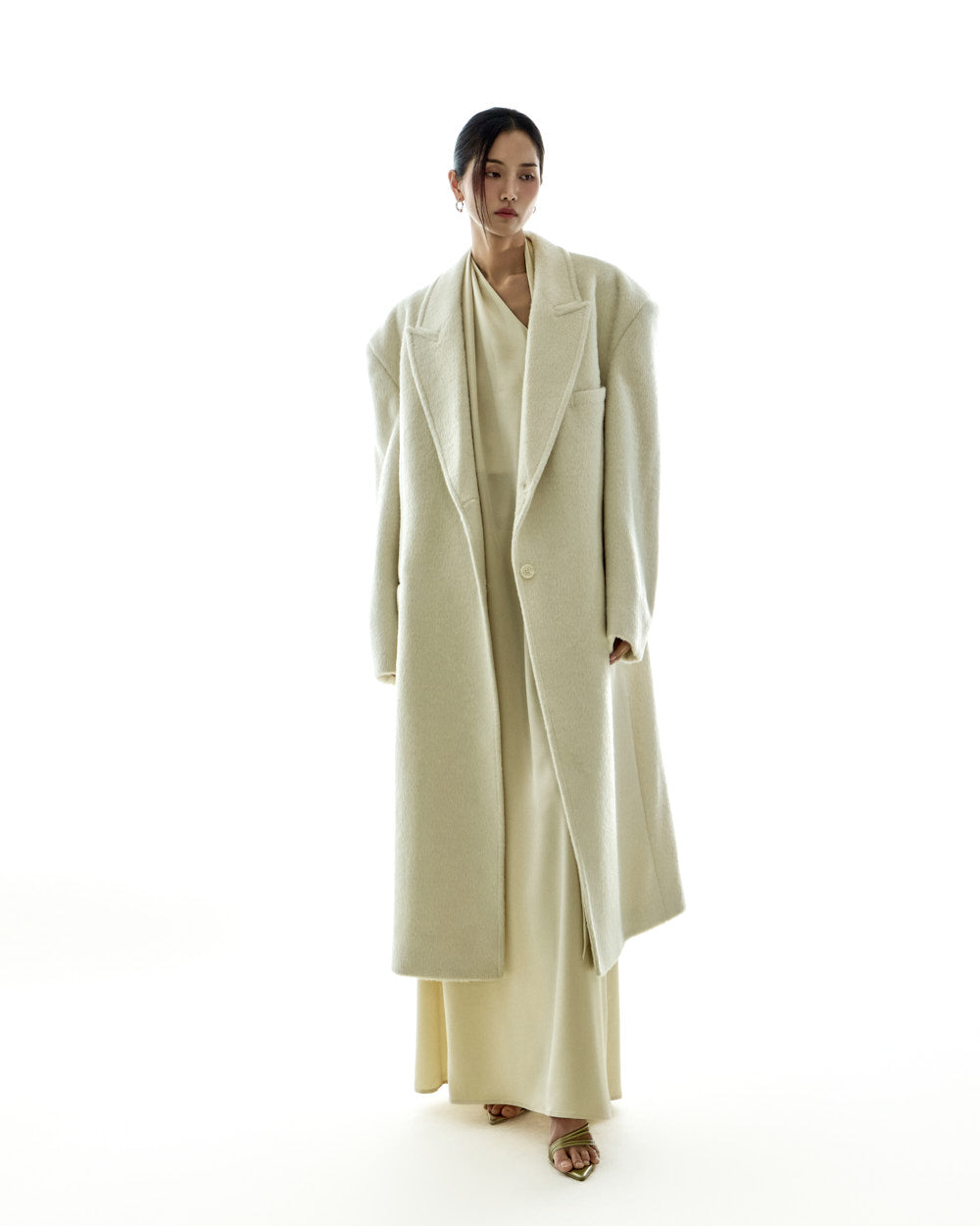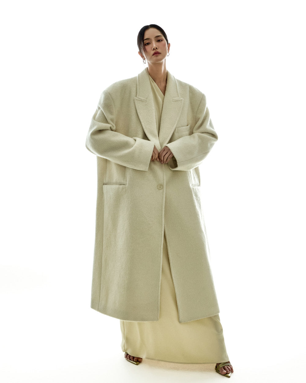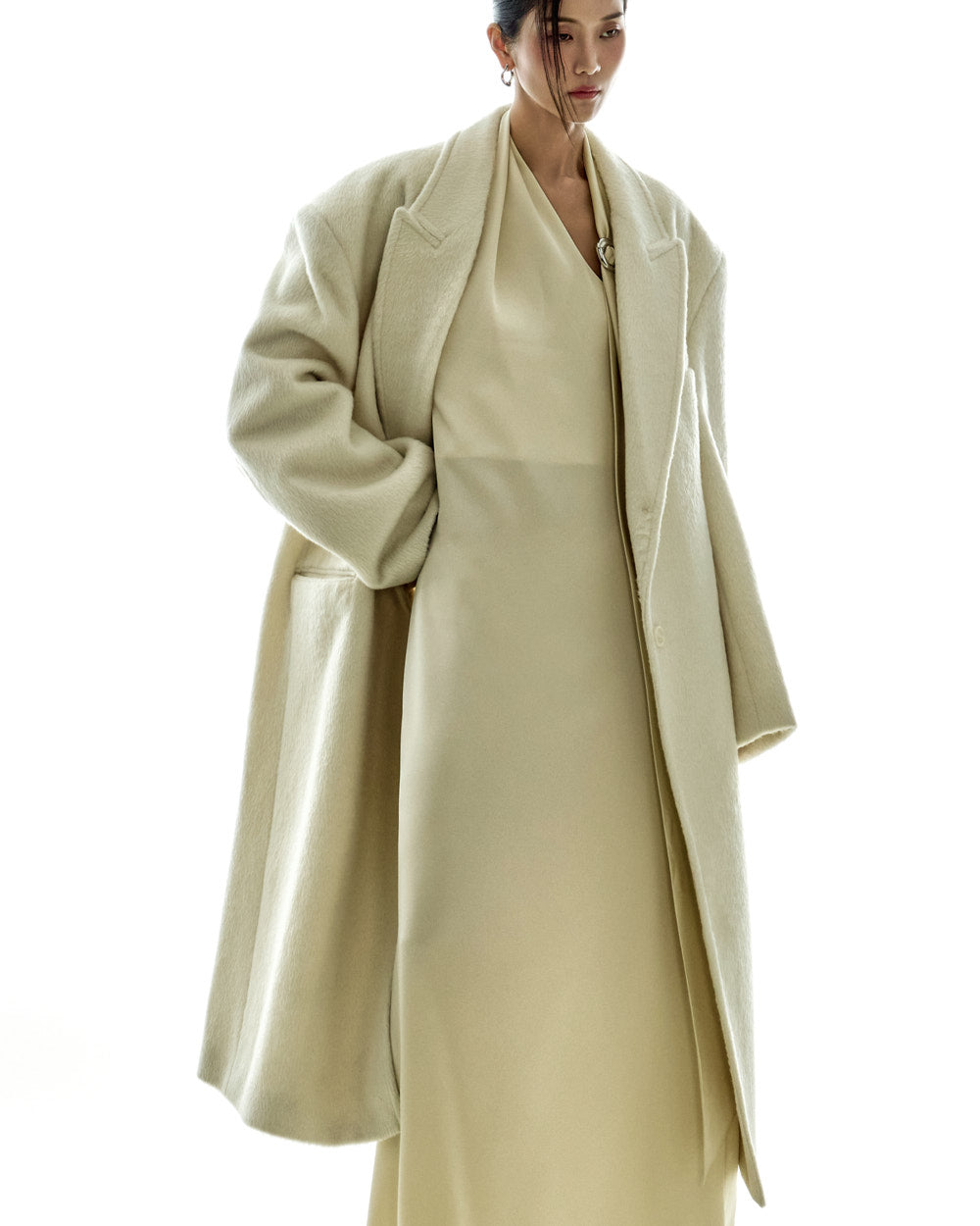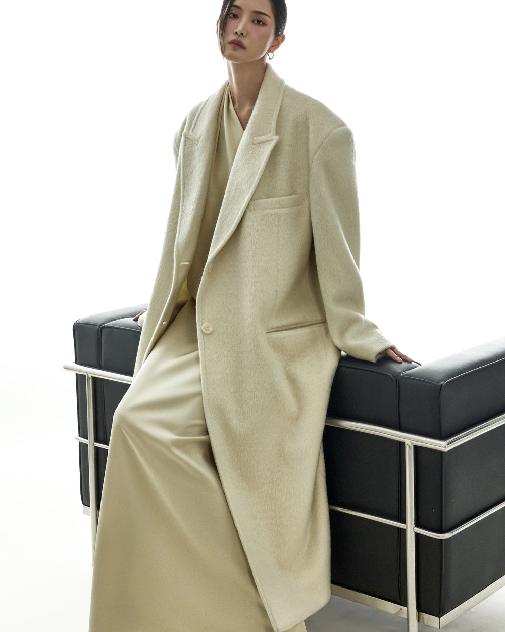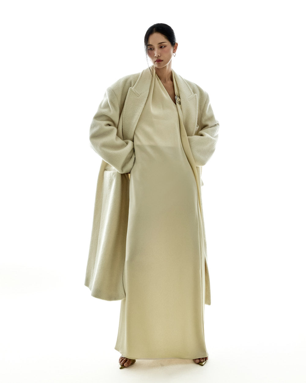 The 173cm model is wearing size ONE in IVORY.