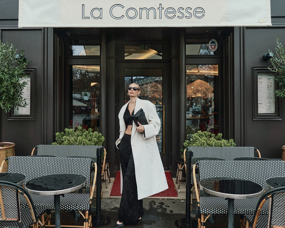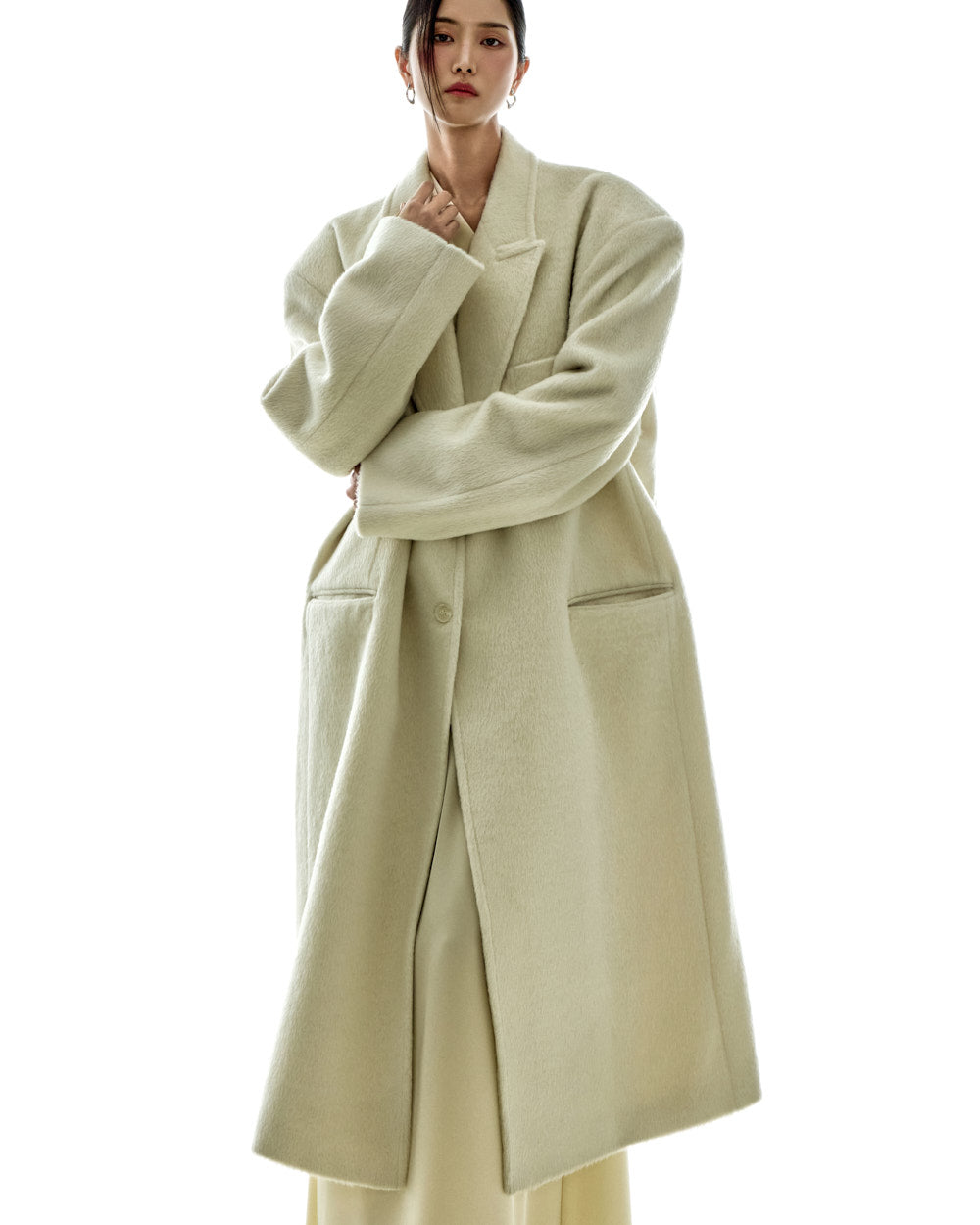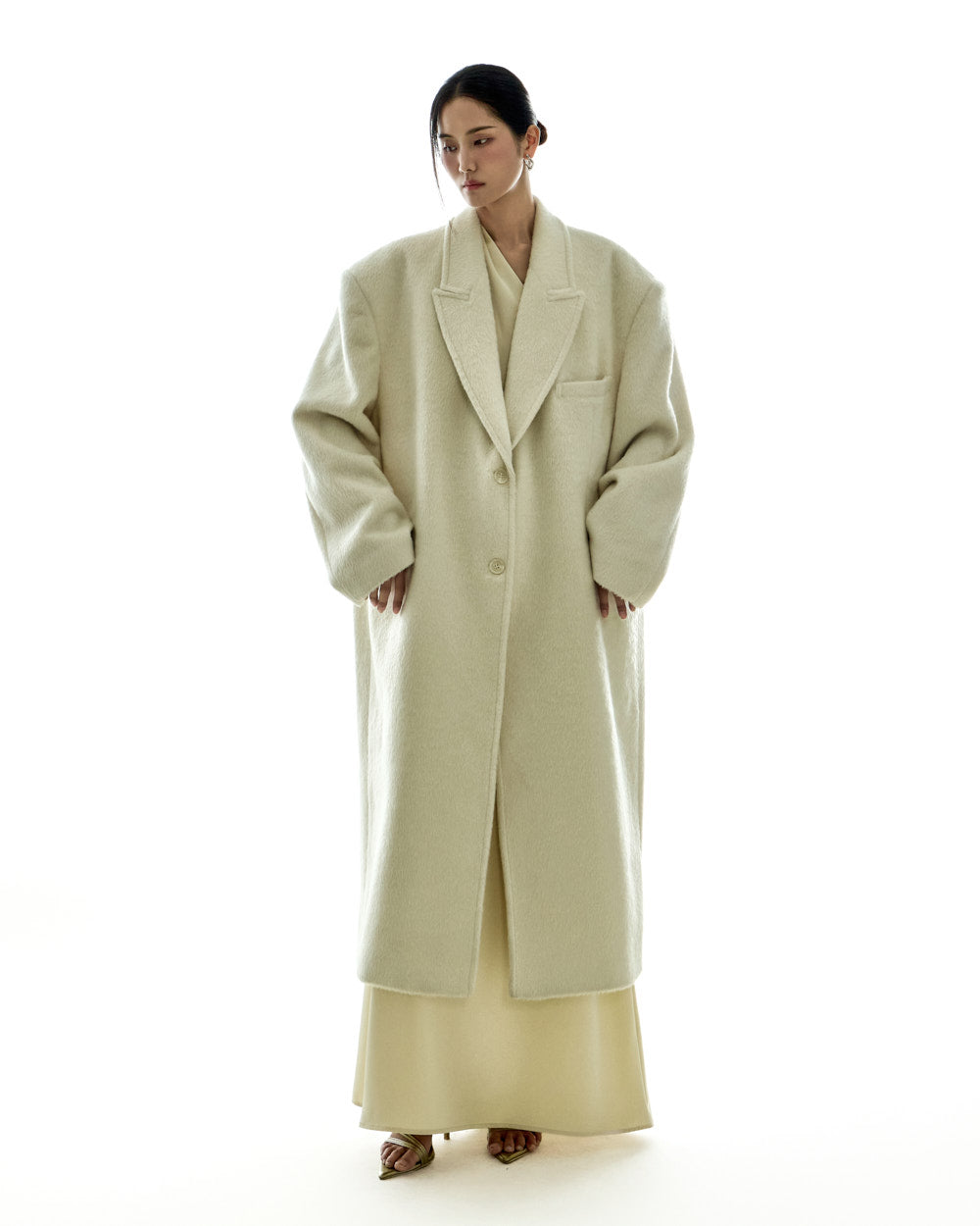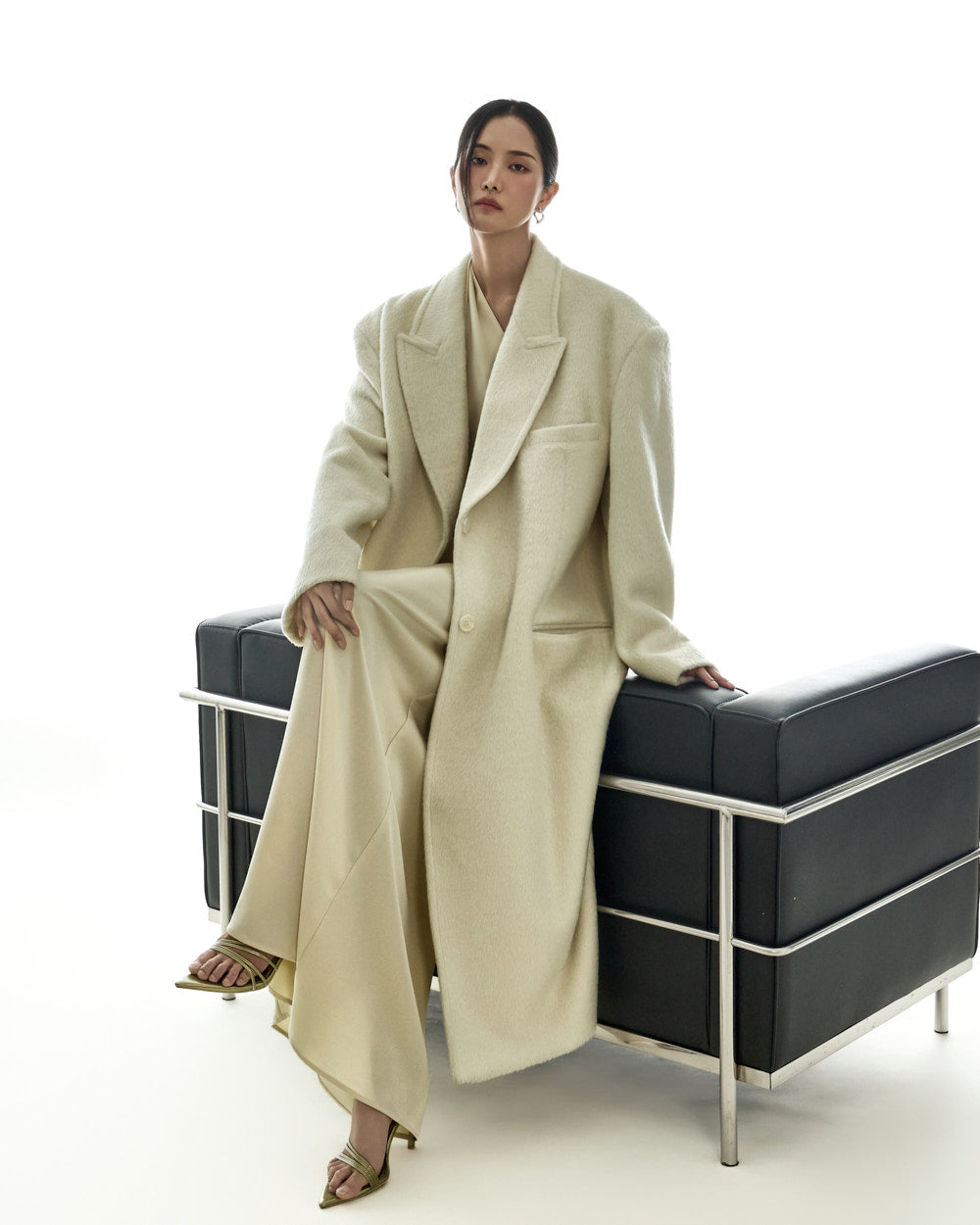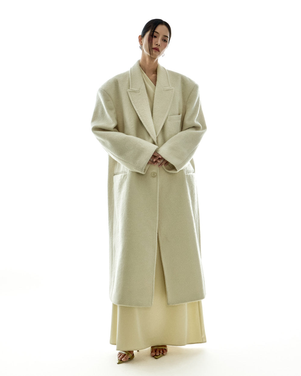 The 173cm model is wearing size ONE in IVORY.