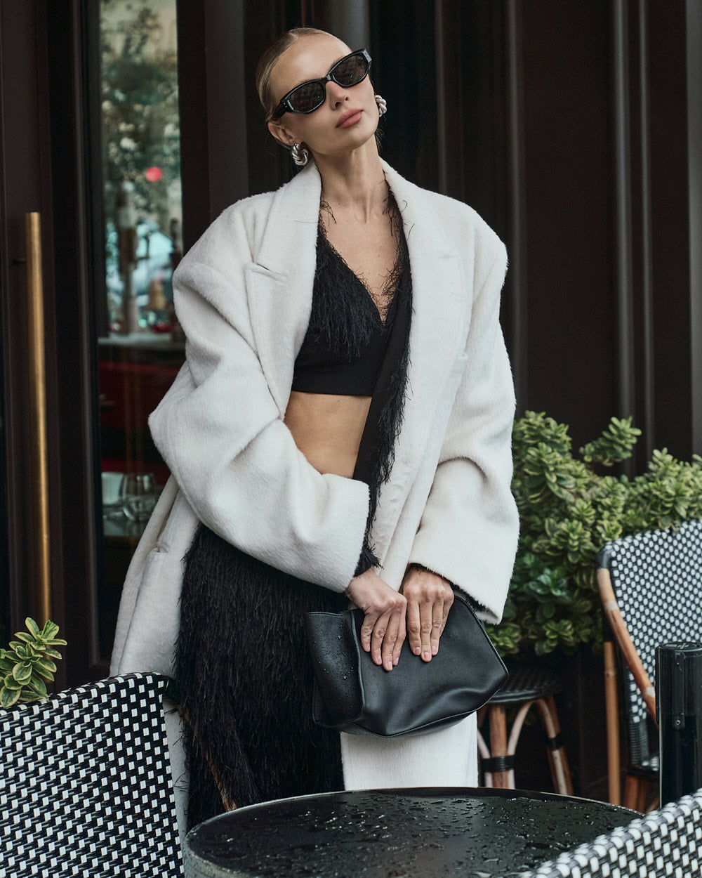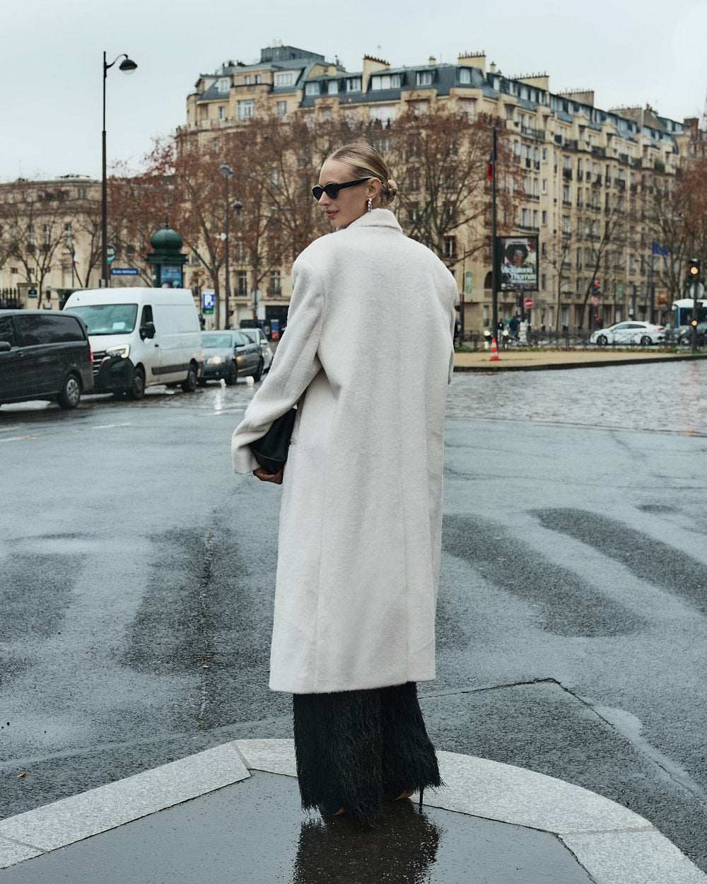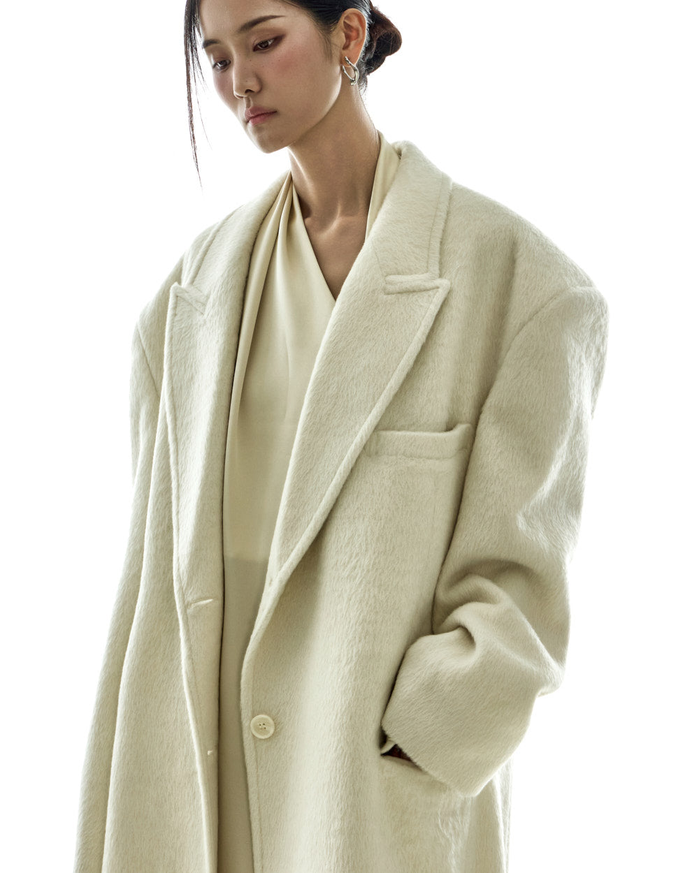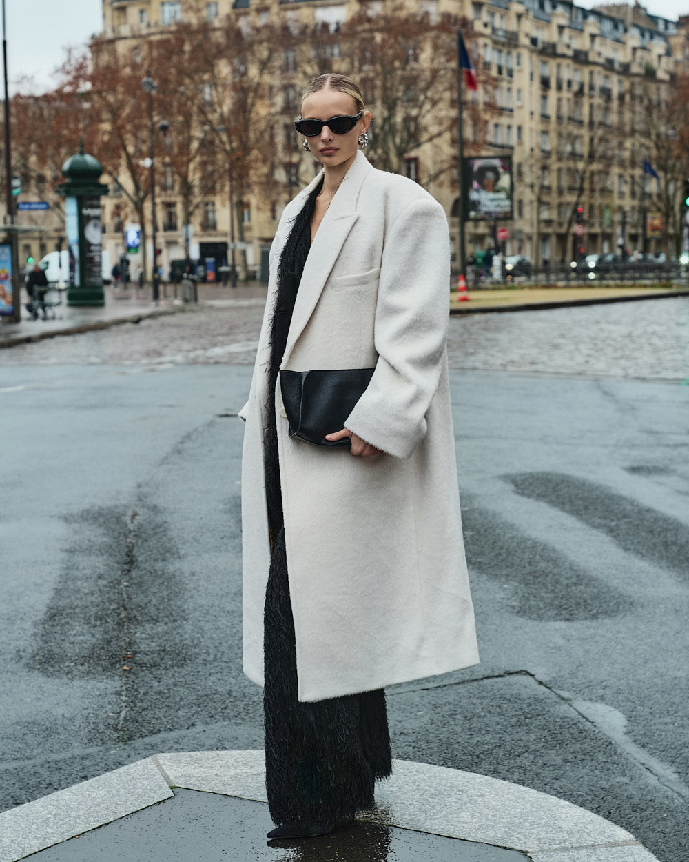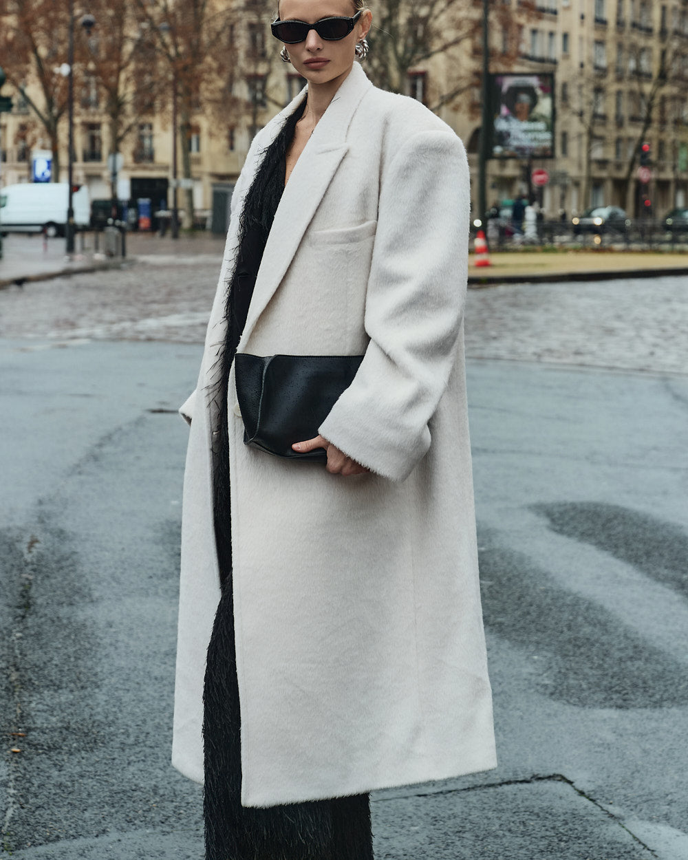 The oversized silhouette, with its tailored collar and shoulder pads,