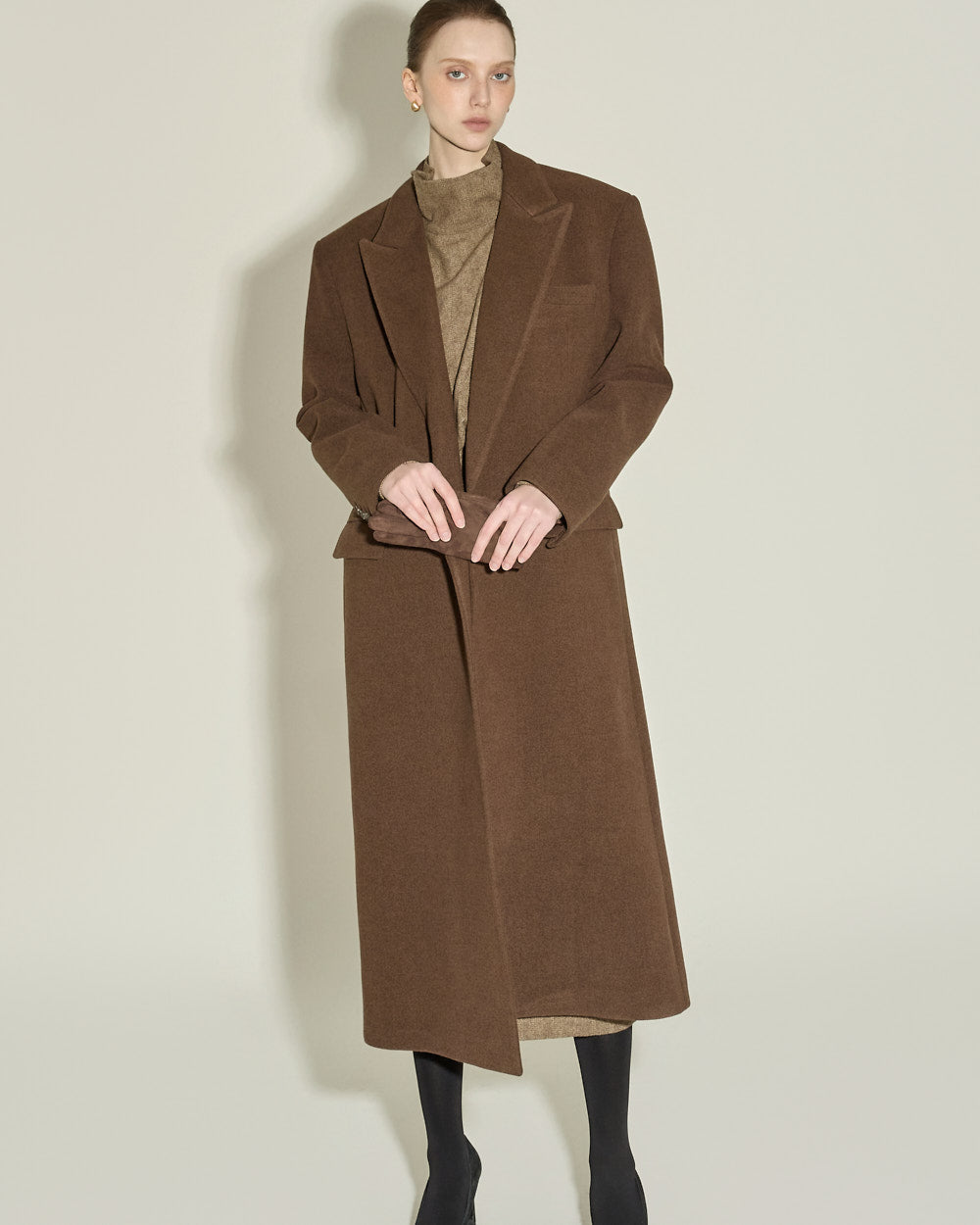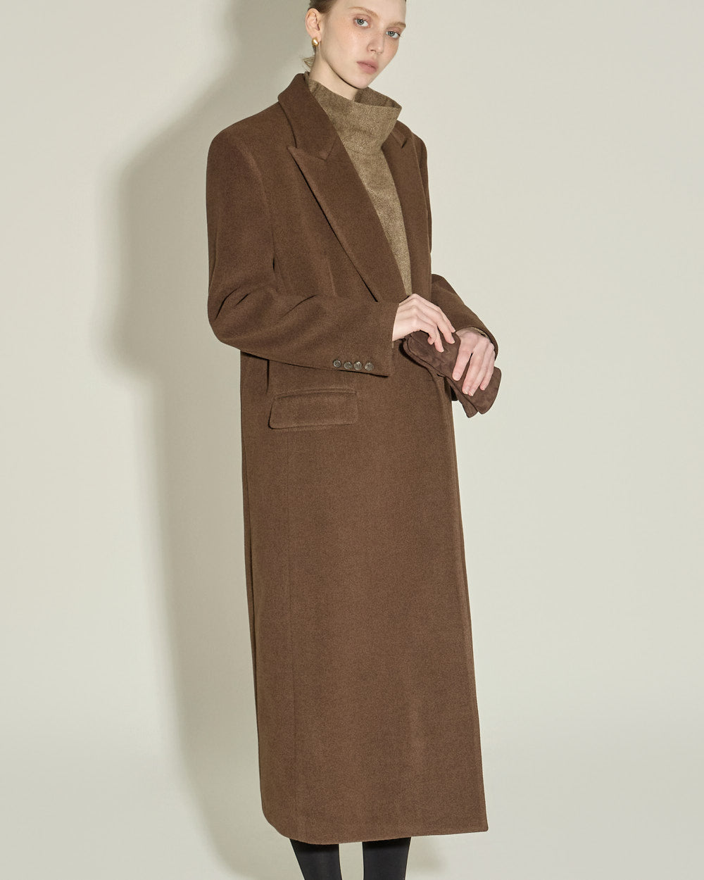 This single coat exudes a classic and simple vibe.