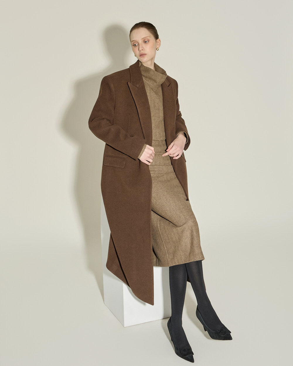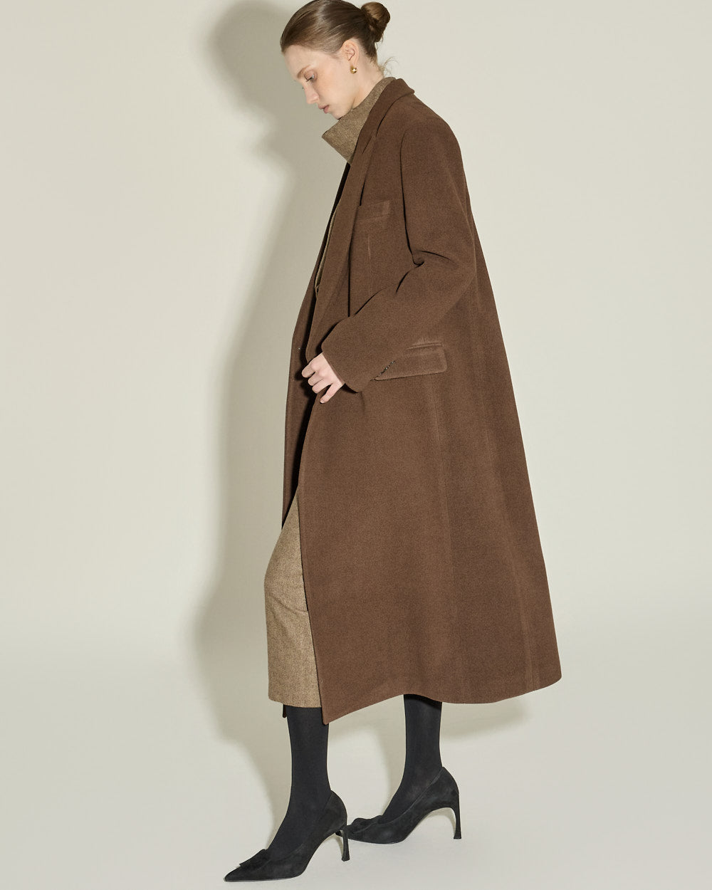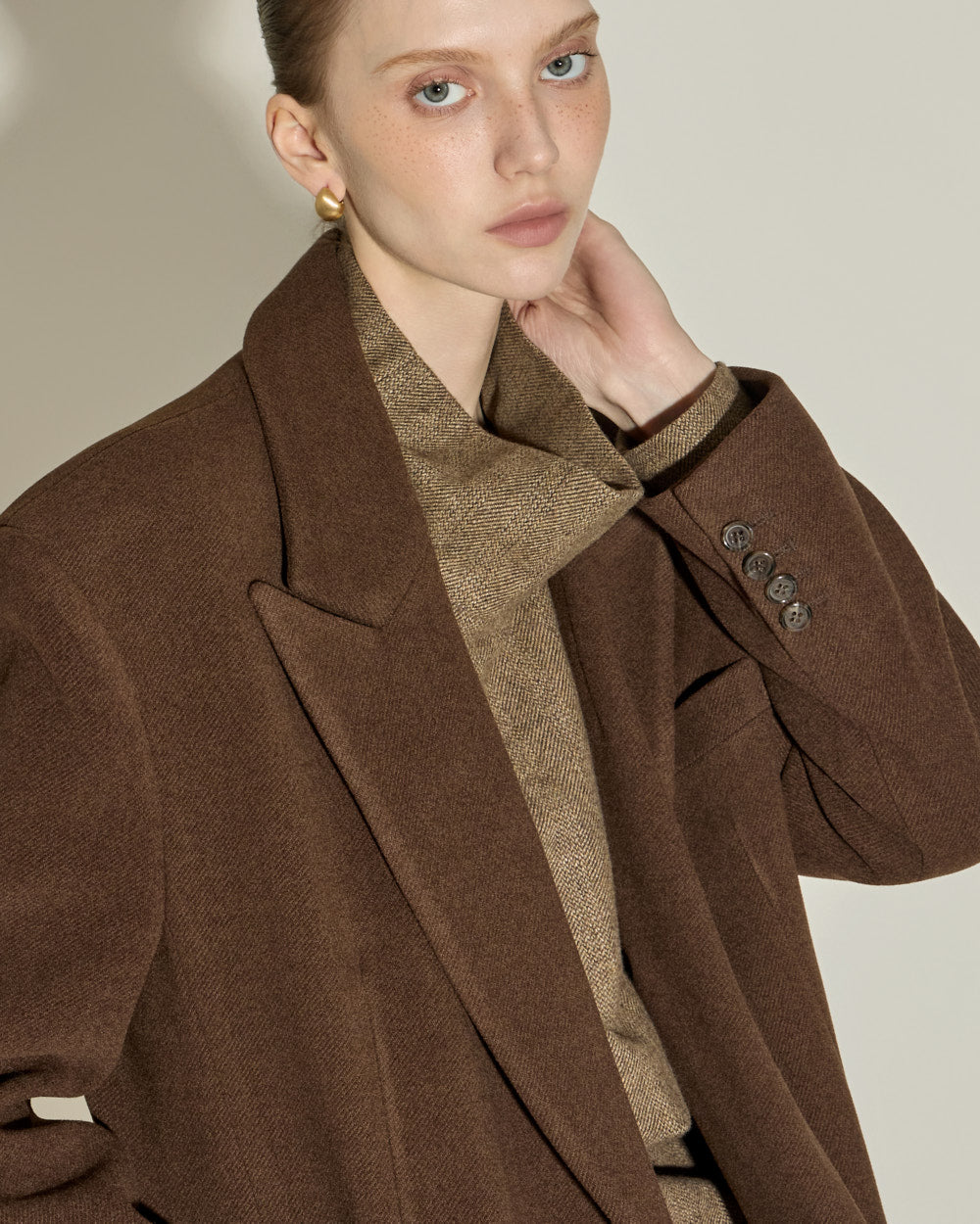 The 174cm model is wearing size ONE in BROWN.