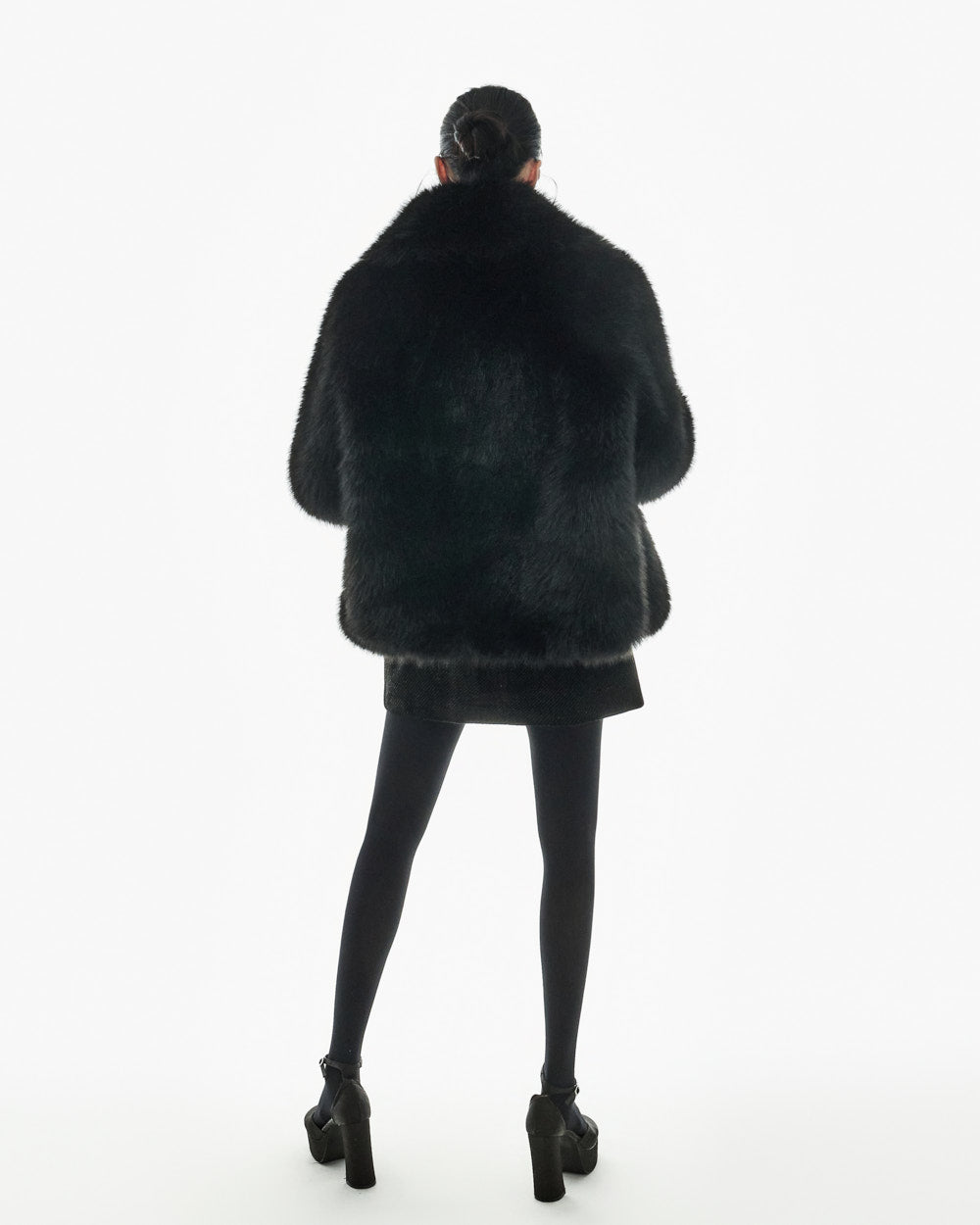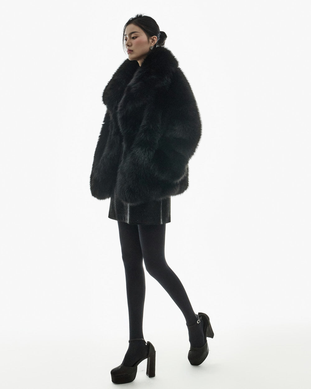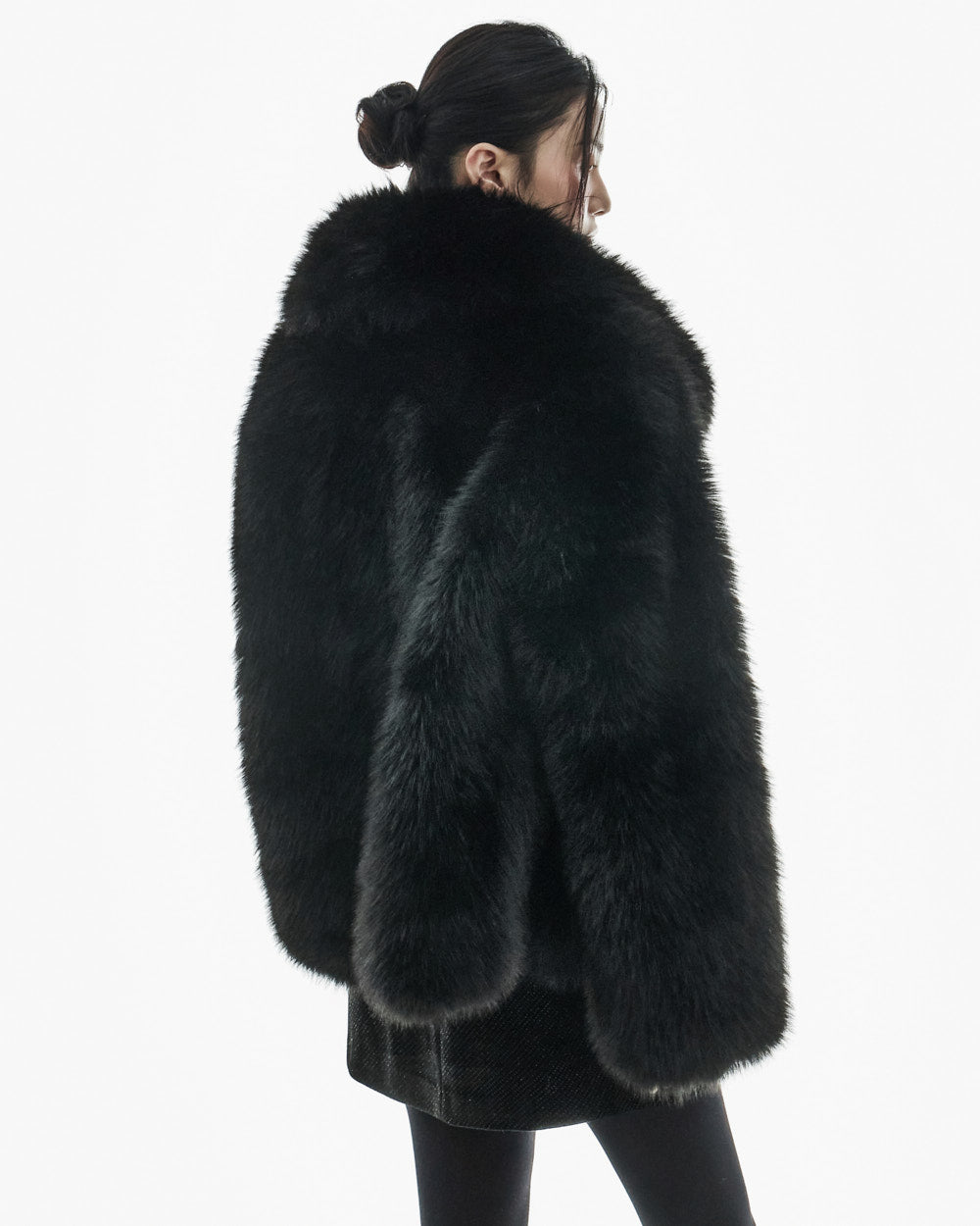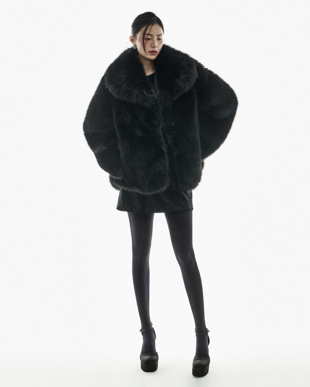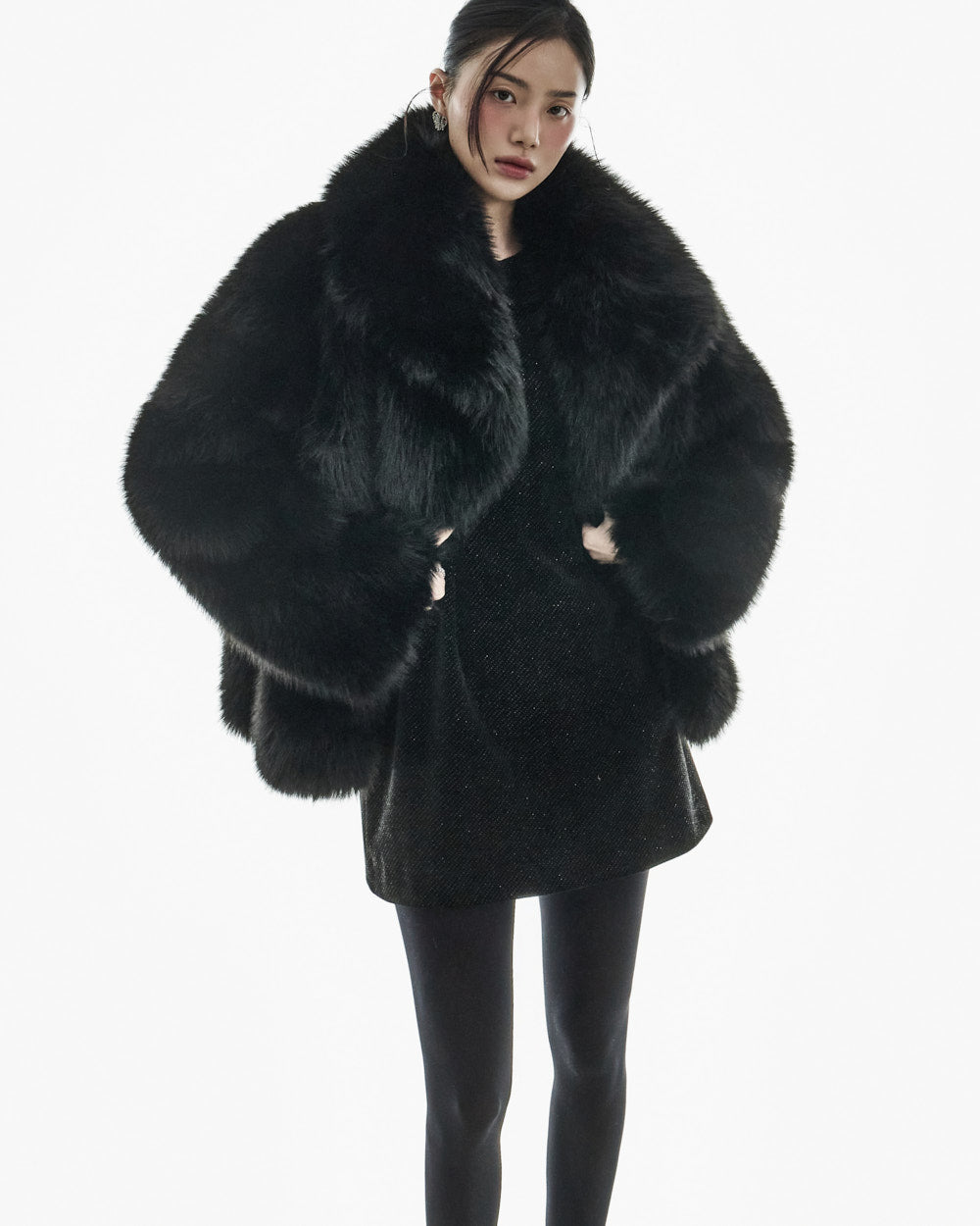 This big collar fur jacket has a minimalist vibe,